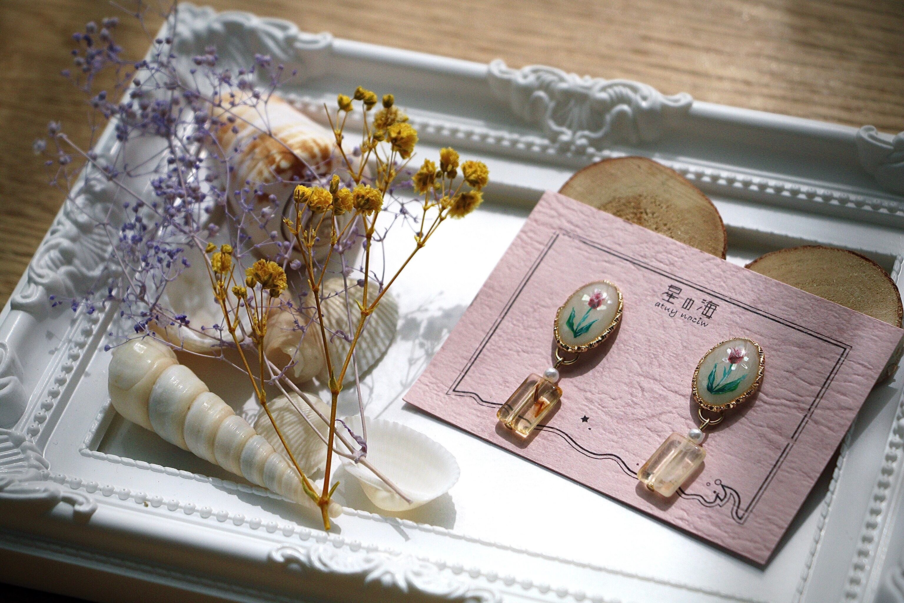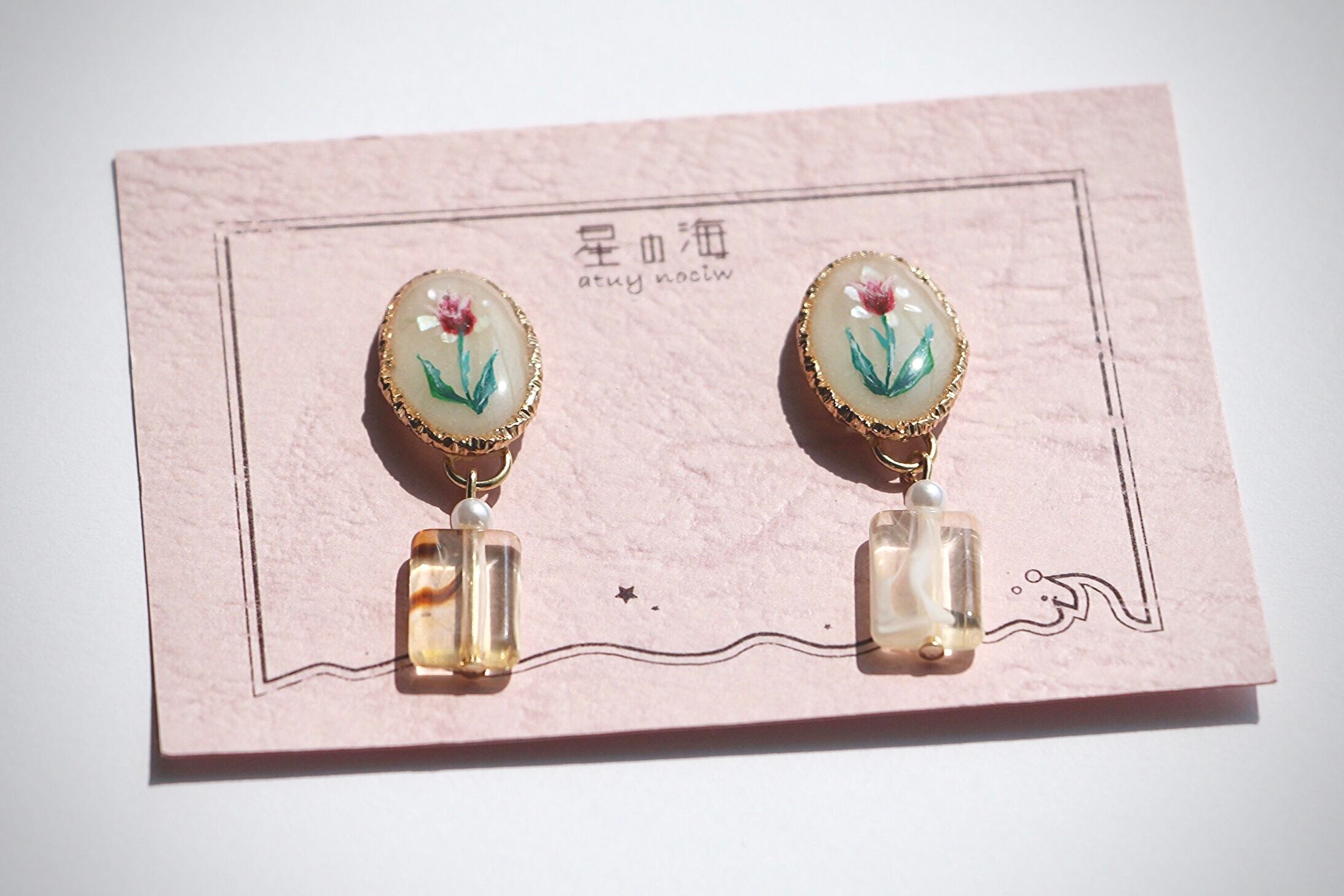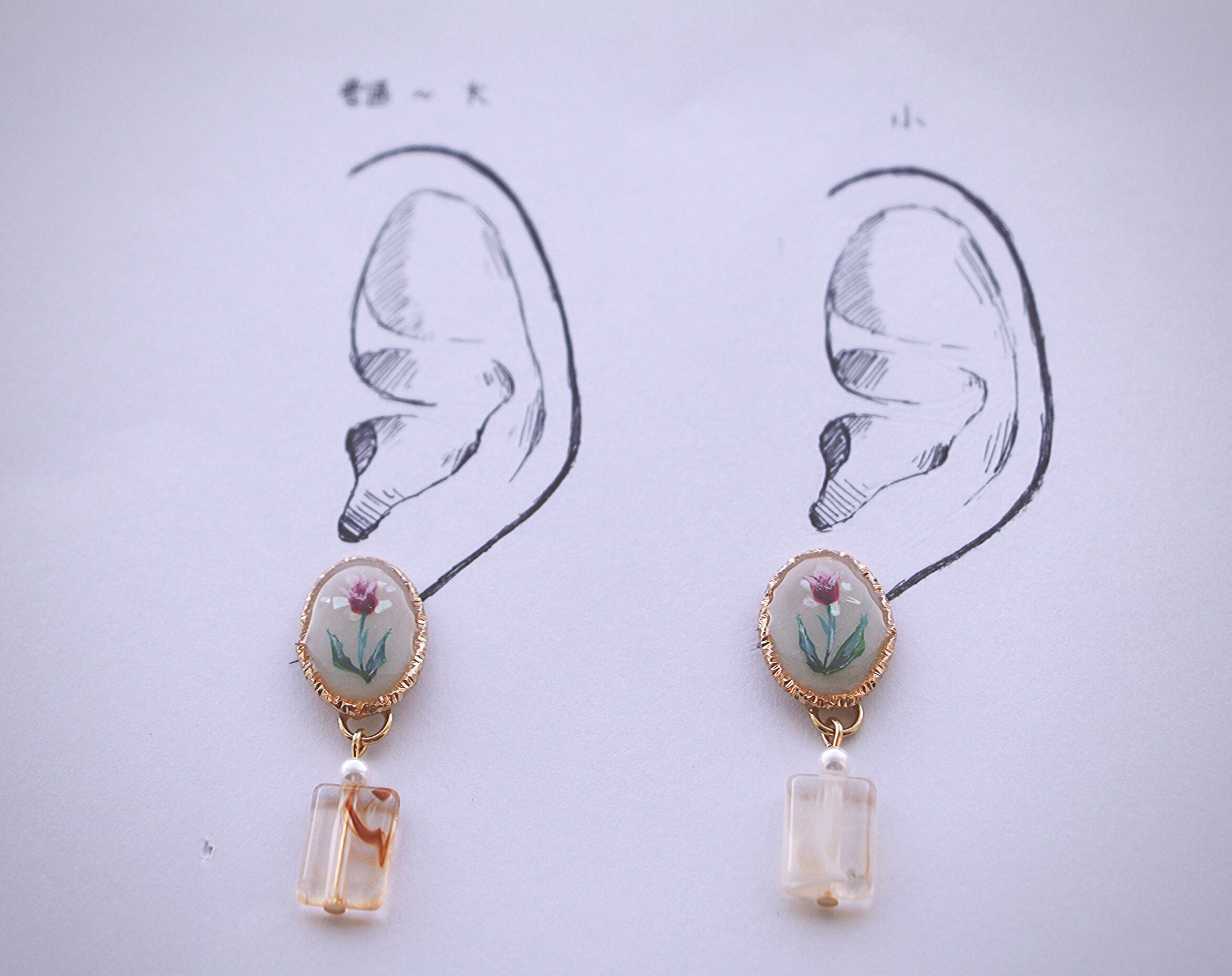 チューリップは作者が一本一本丁寧に手描きしているため、同じアクセサリーはどこにもありません…