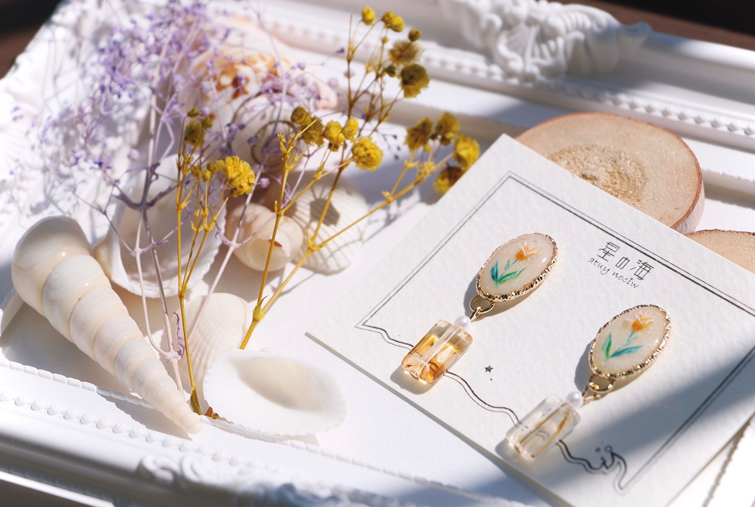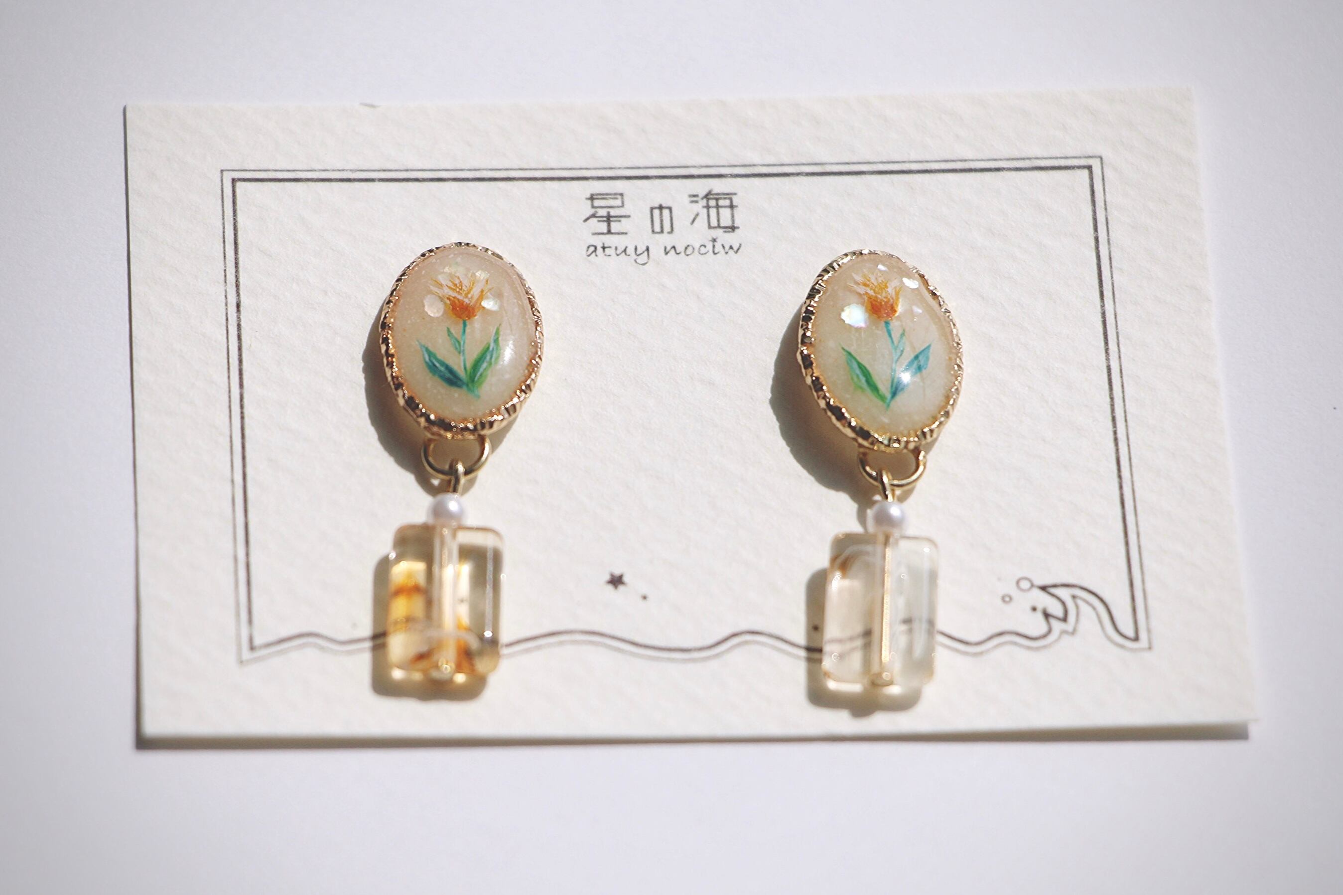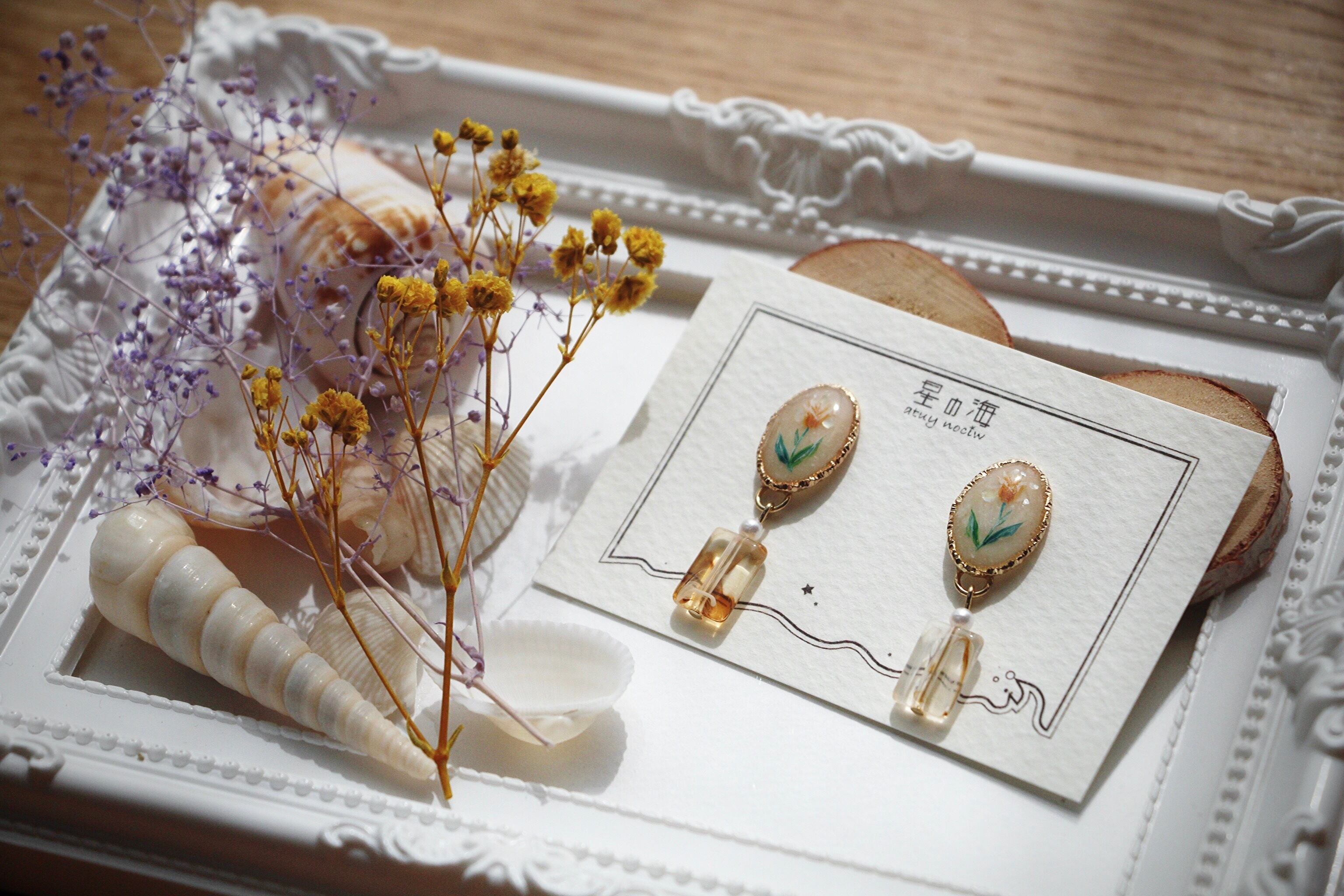 チューリップは作者が一本一本丁寧に手描きしているため、同じアクセサリーはどこにもありません…