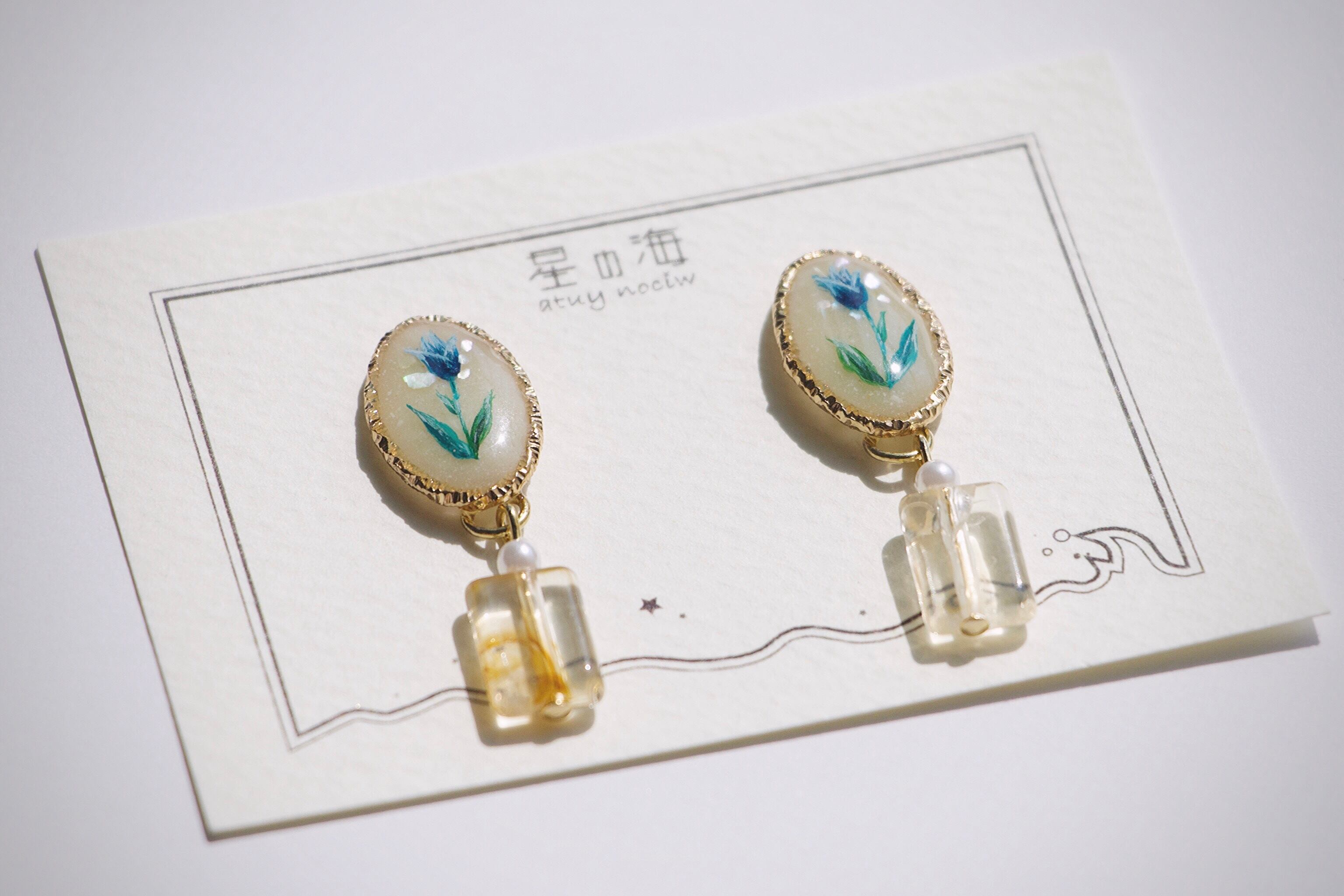 チューリップは作者が一本一本丁寧に手描きしているため、同じアクセサリーはどこにもありません…