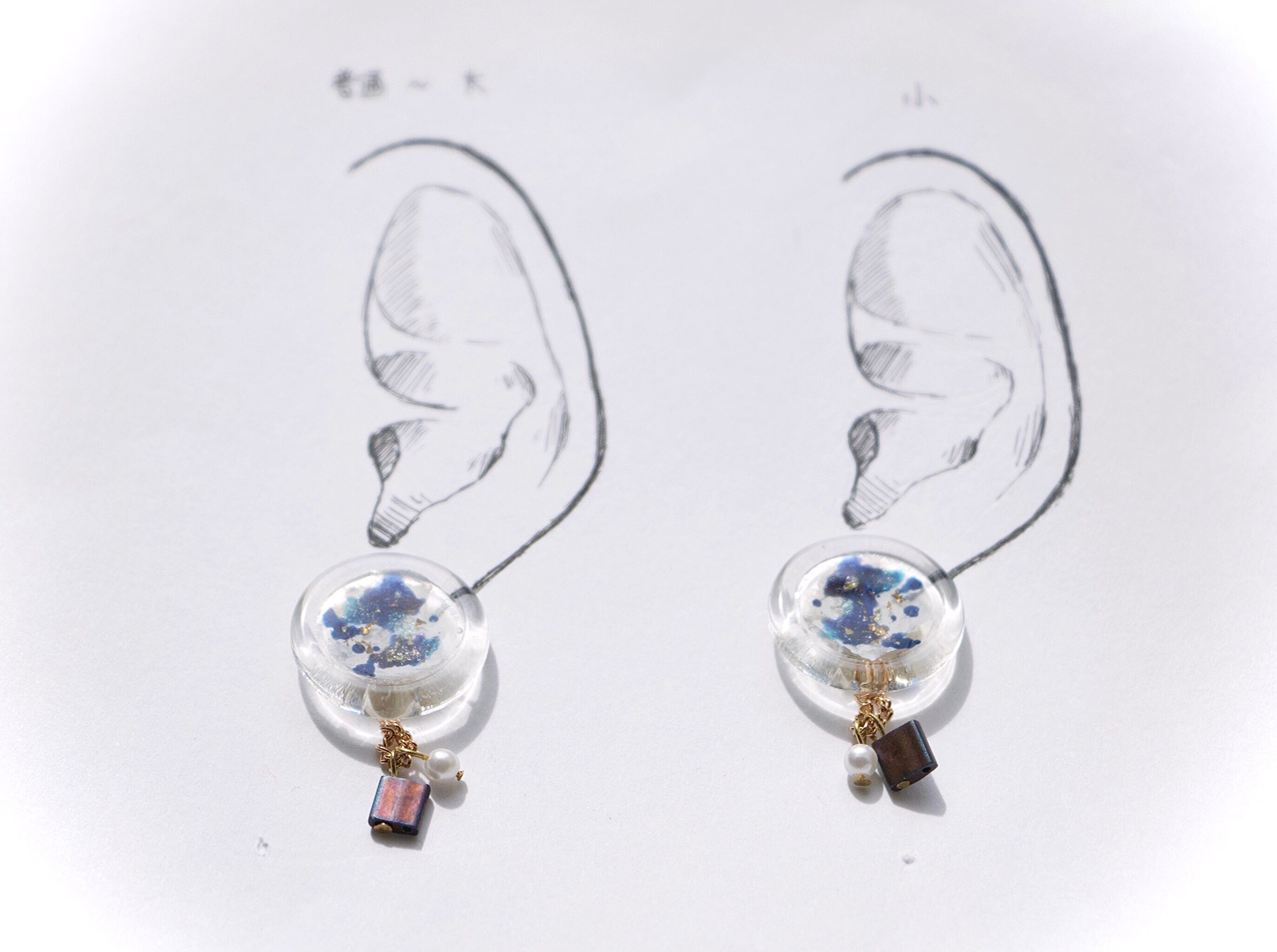 耳につけるパーツをつけていないため、台紙にはマスキングテープで留めている状態です。耳シートの写真ではピアスパーツを当てています。ご参照ください。