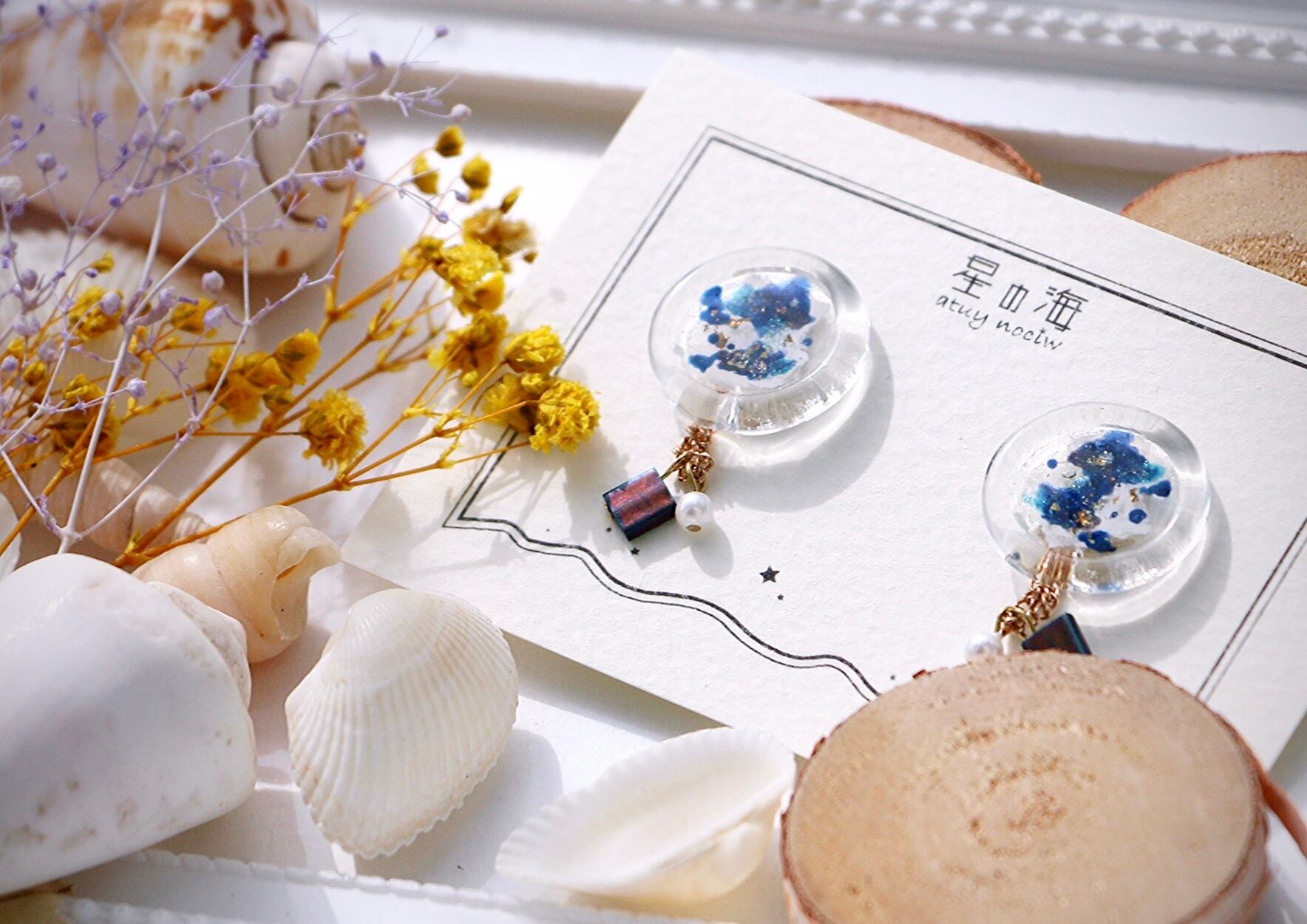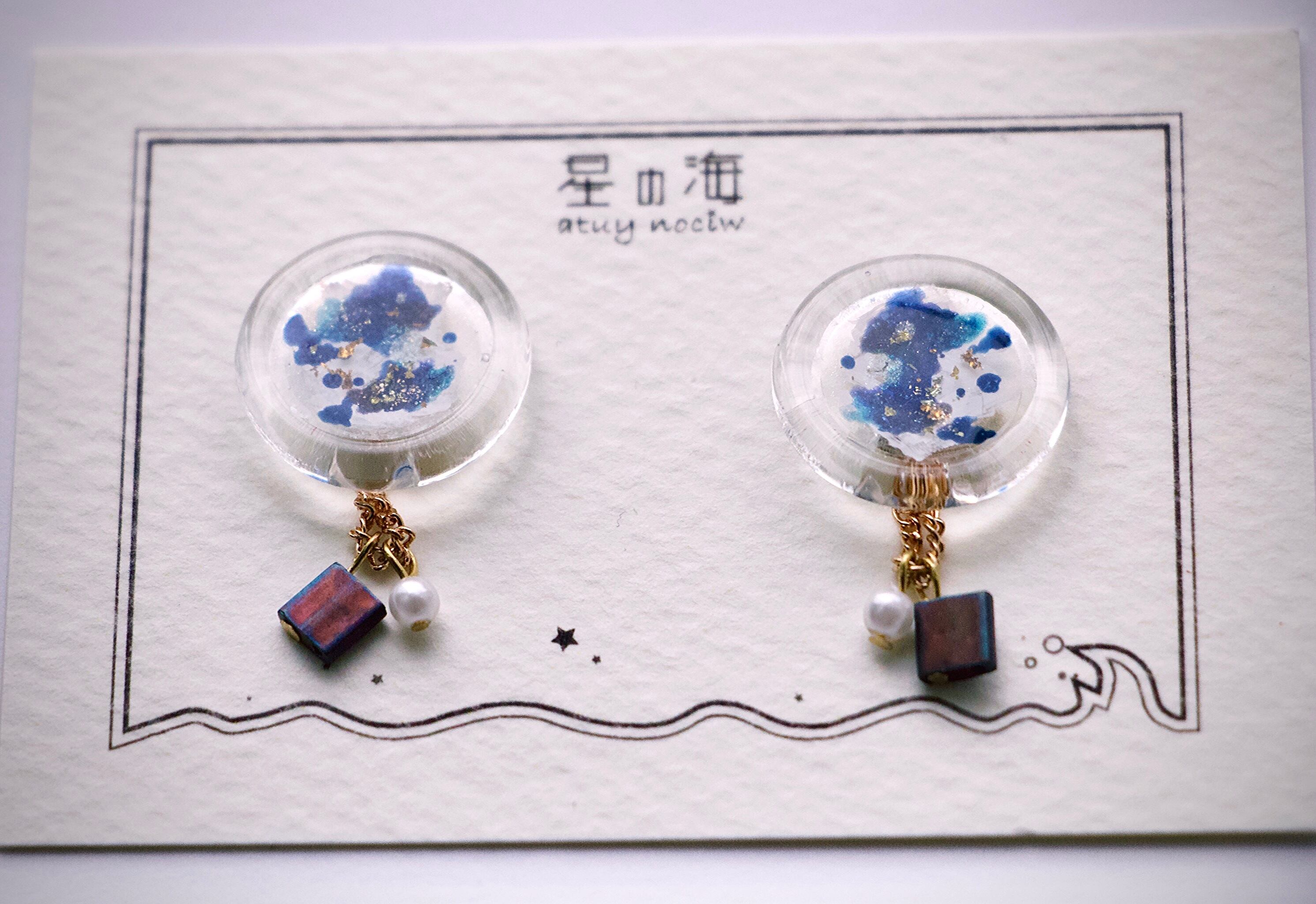 キラキラとした輝きは最低限に抑え、もくもくと考えているまるで漫画の吹き出しのような模様。色味は宇宙カラーでまとめています。