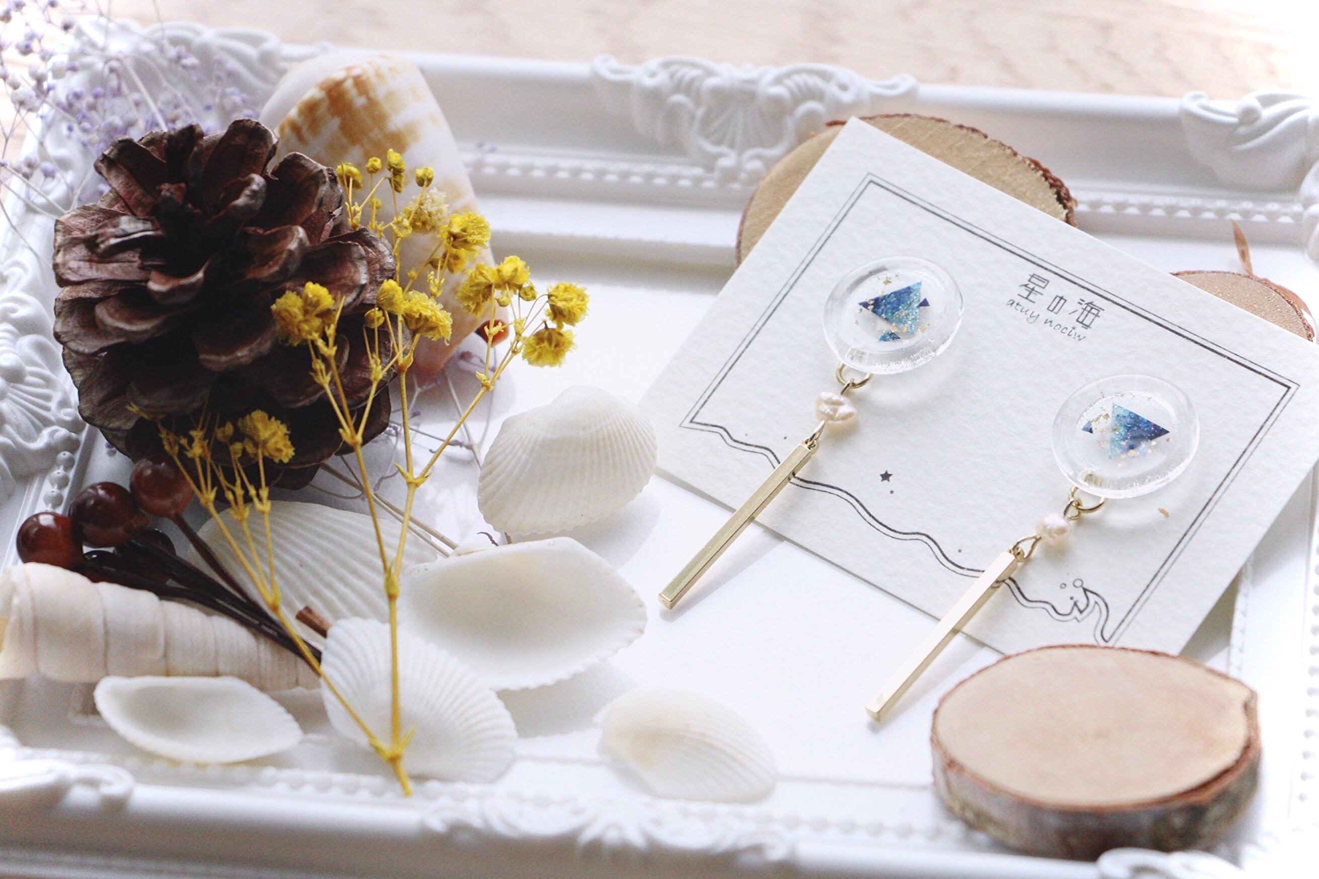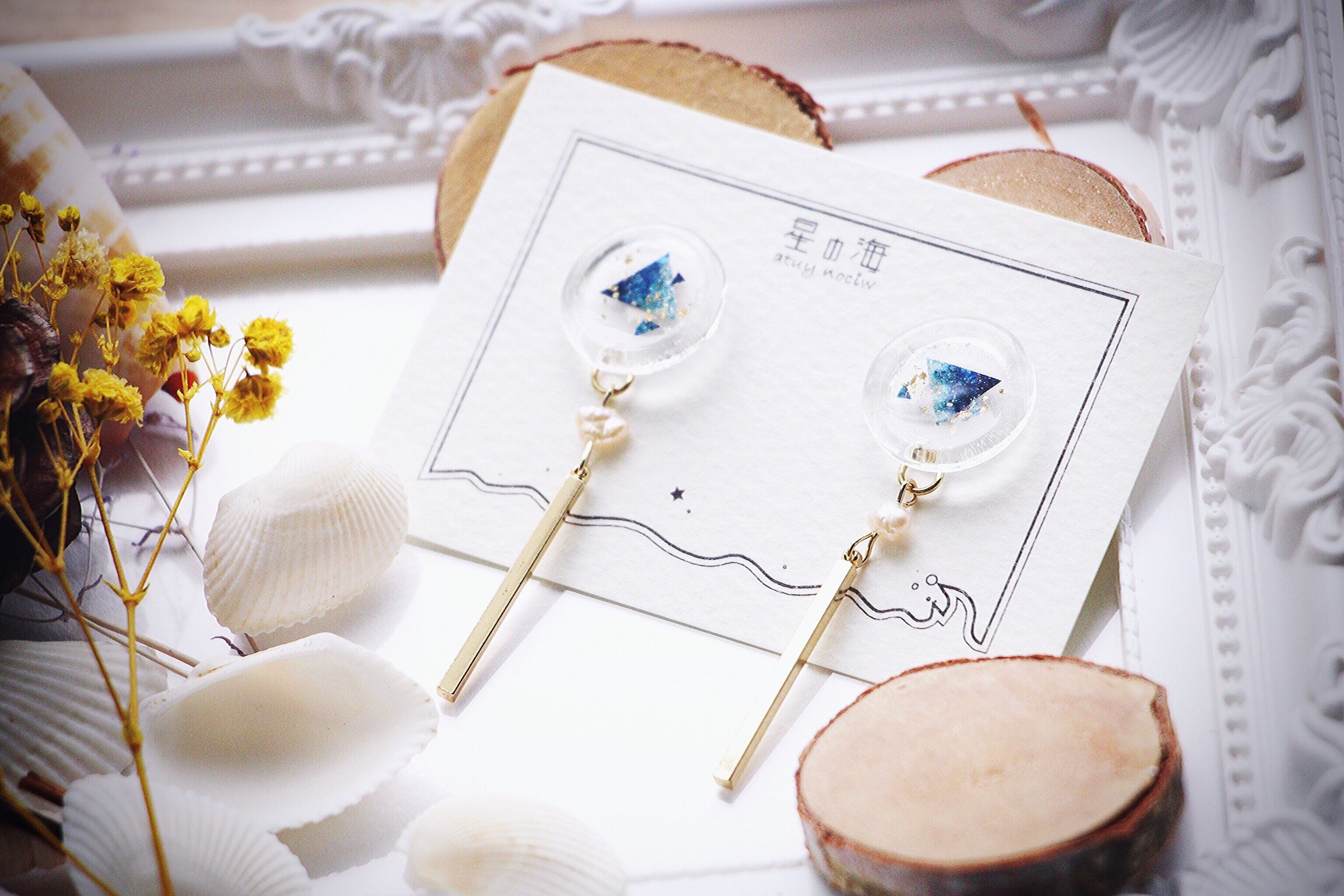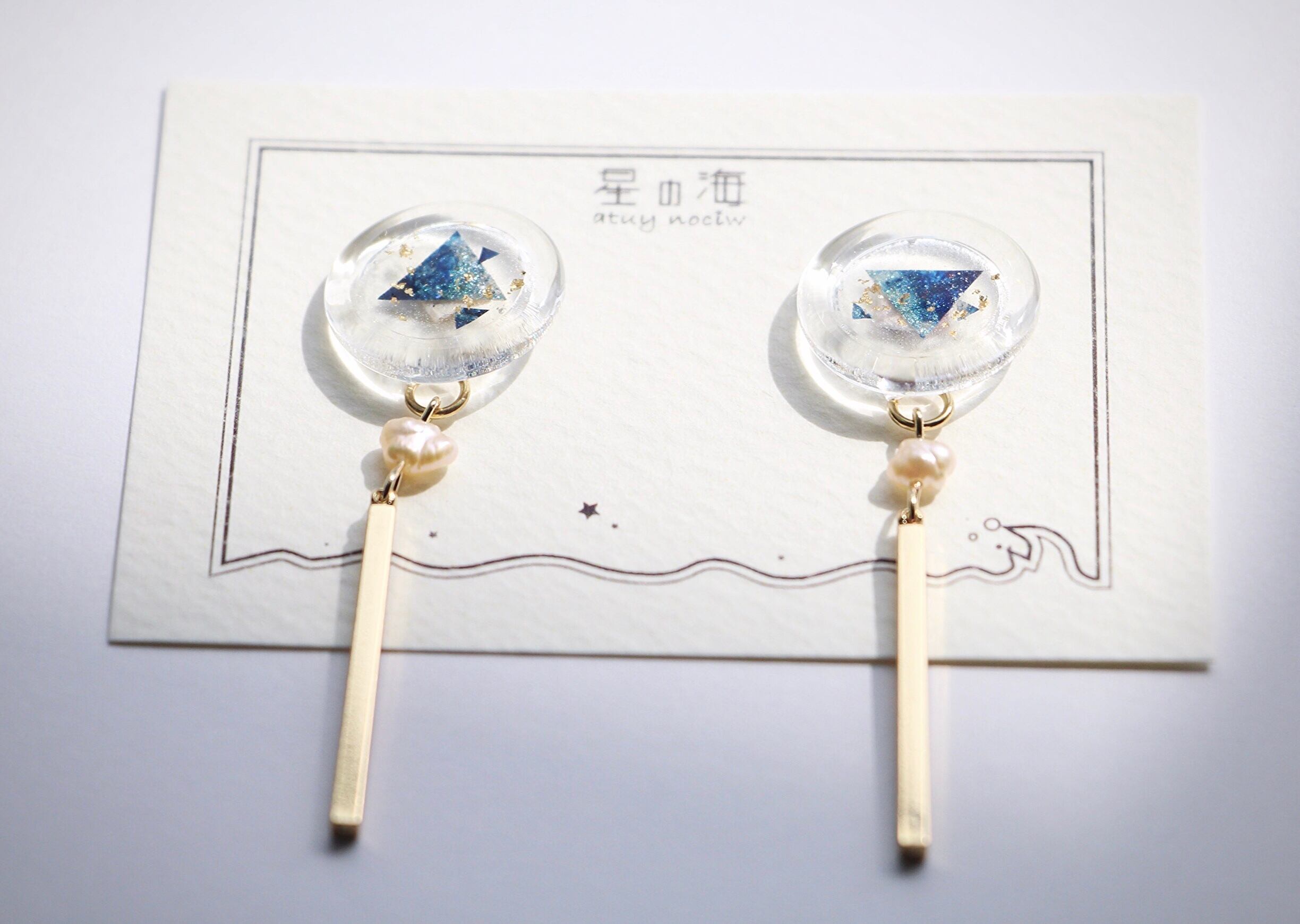 涼しげなクリアパーツの中には星をイメージして散りばめられた金箔、中心には切り取られた宇宙が!