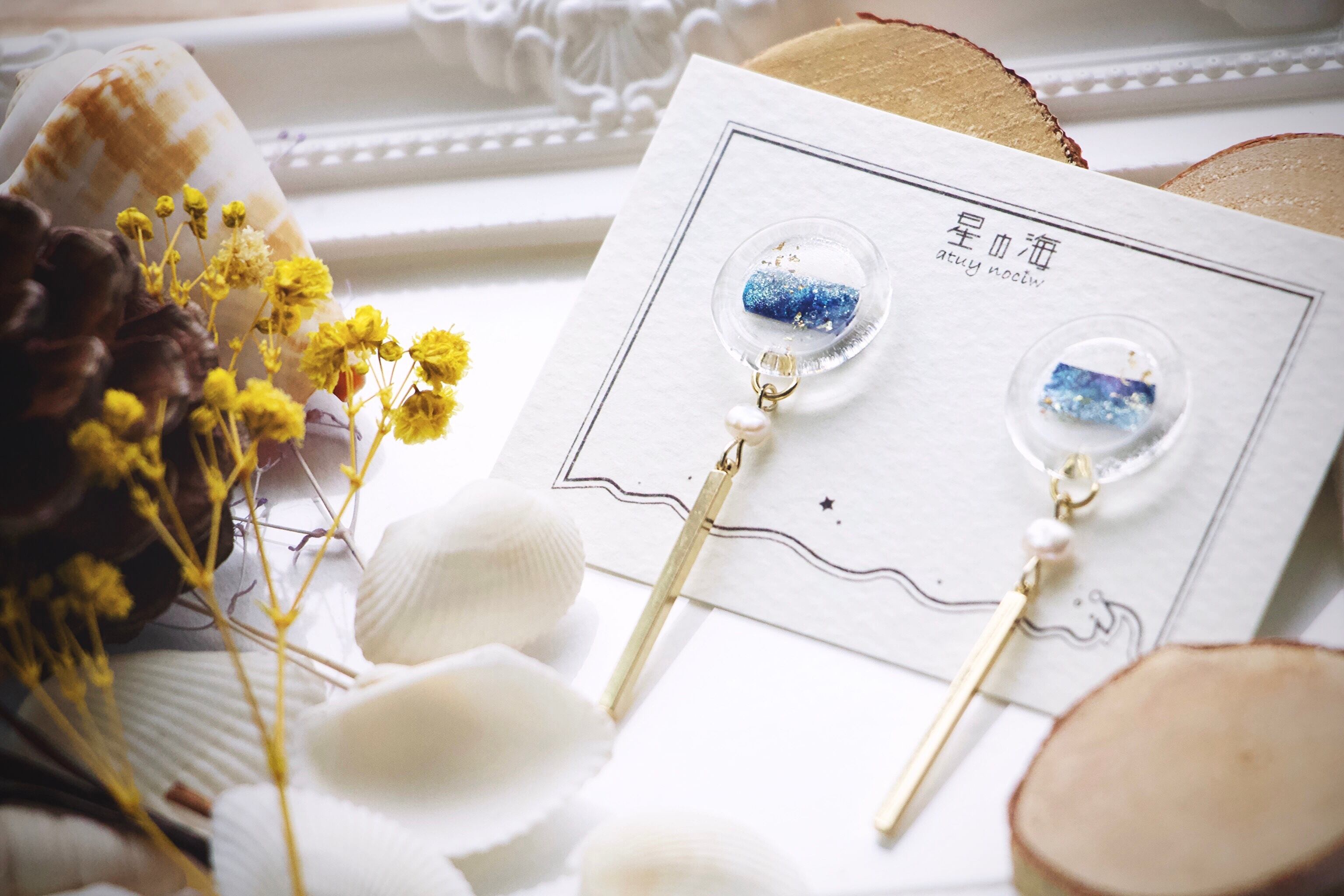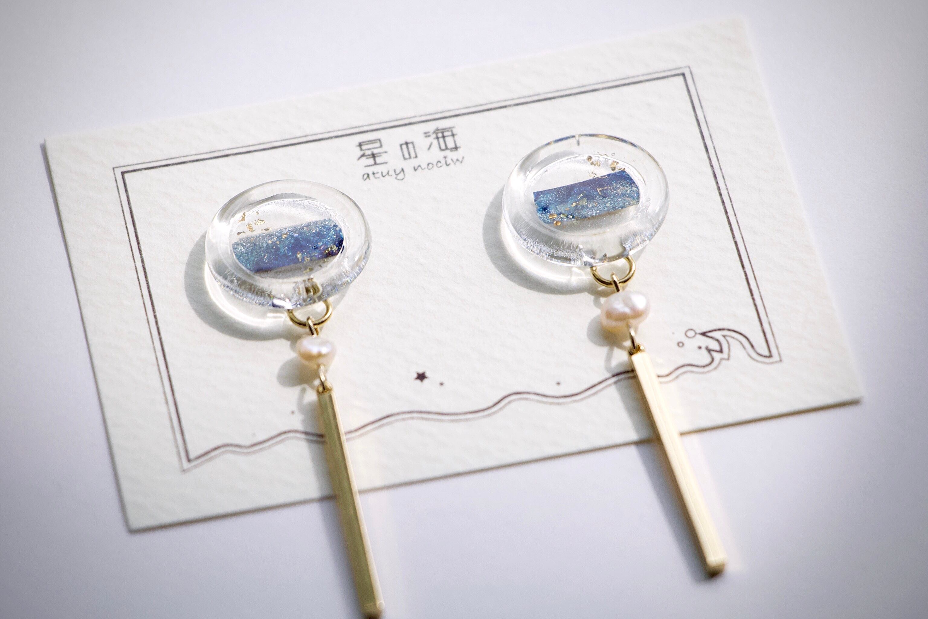 涼しげなクリアパーツの中には星をイメージして散りばめられた金箔、中心には切り取られた宇宙が!