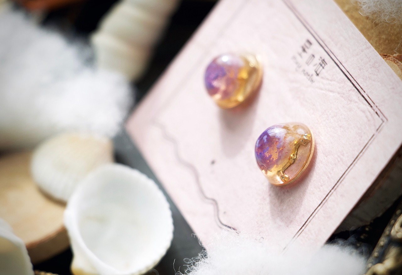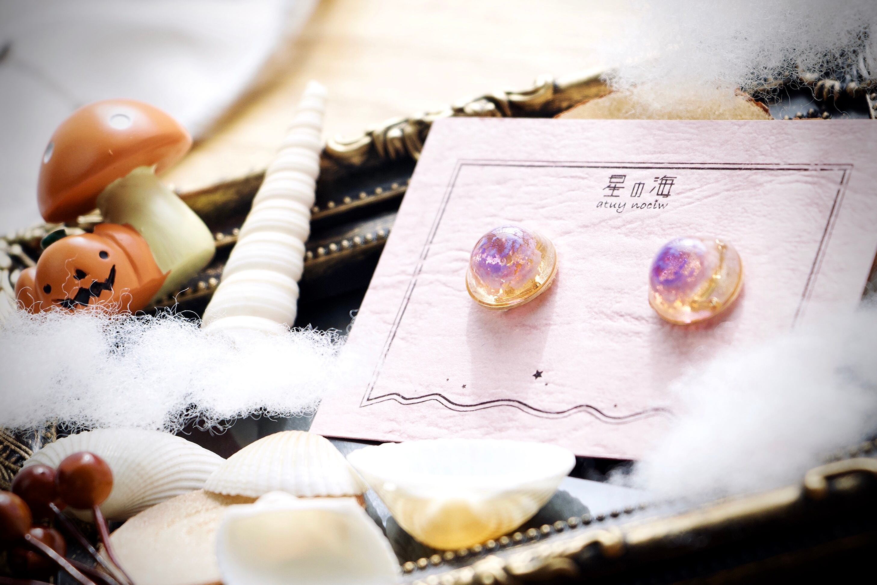 空レジンはハロウィンカラーの紫とオレンジで透明感たっぷりに作り、まるでキャンディーかのような丸さを出しました。