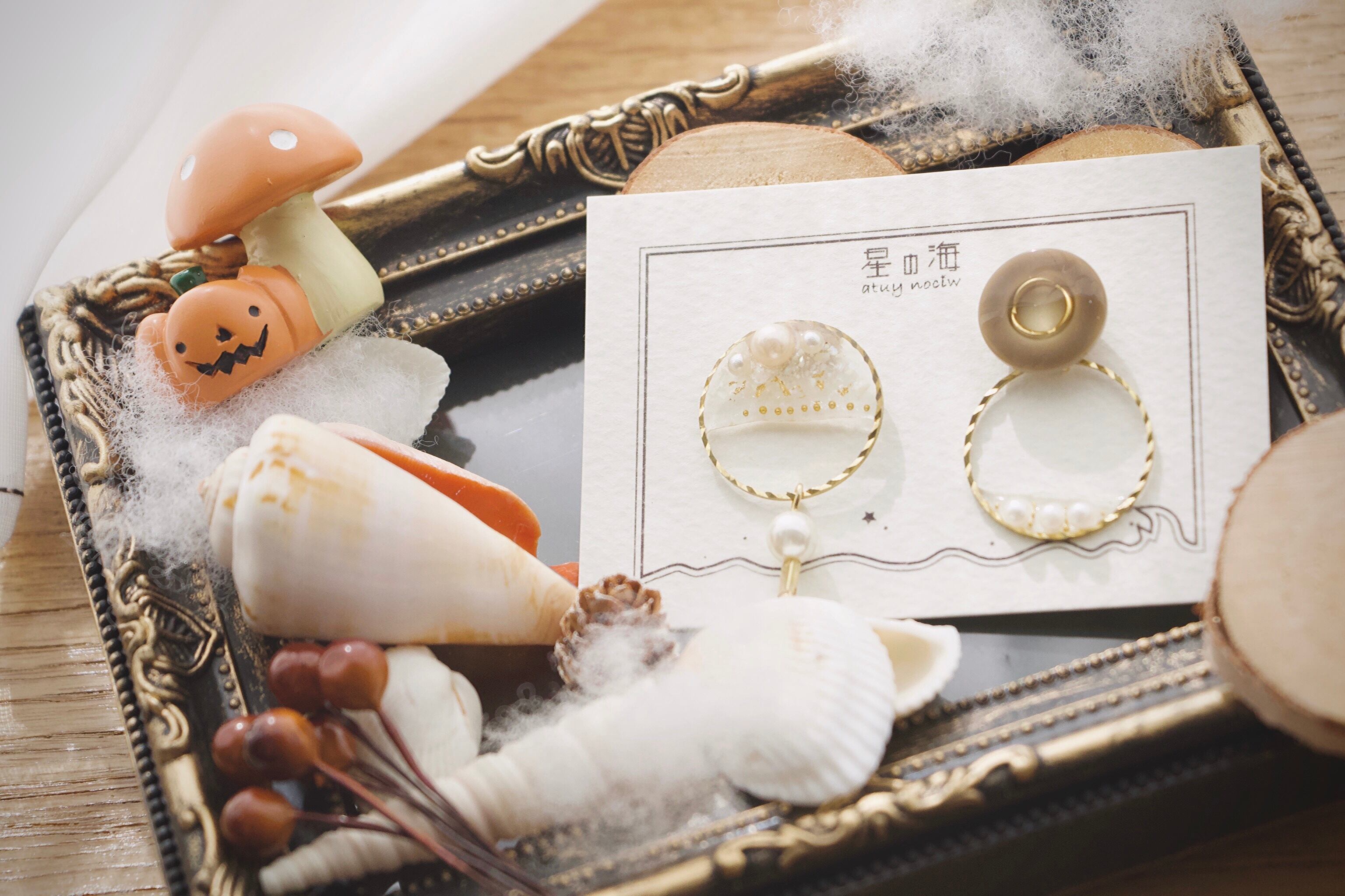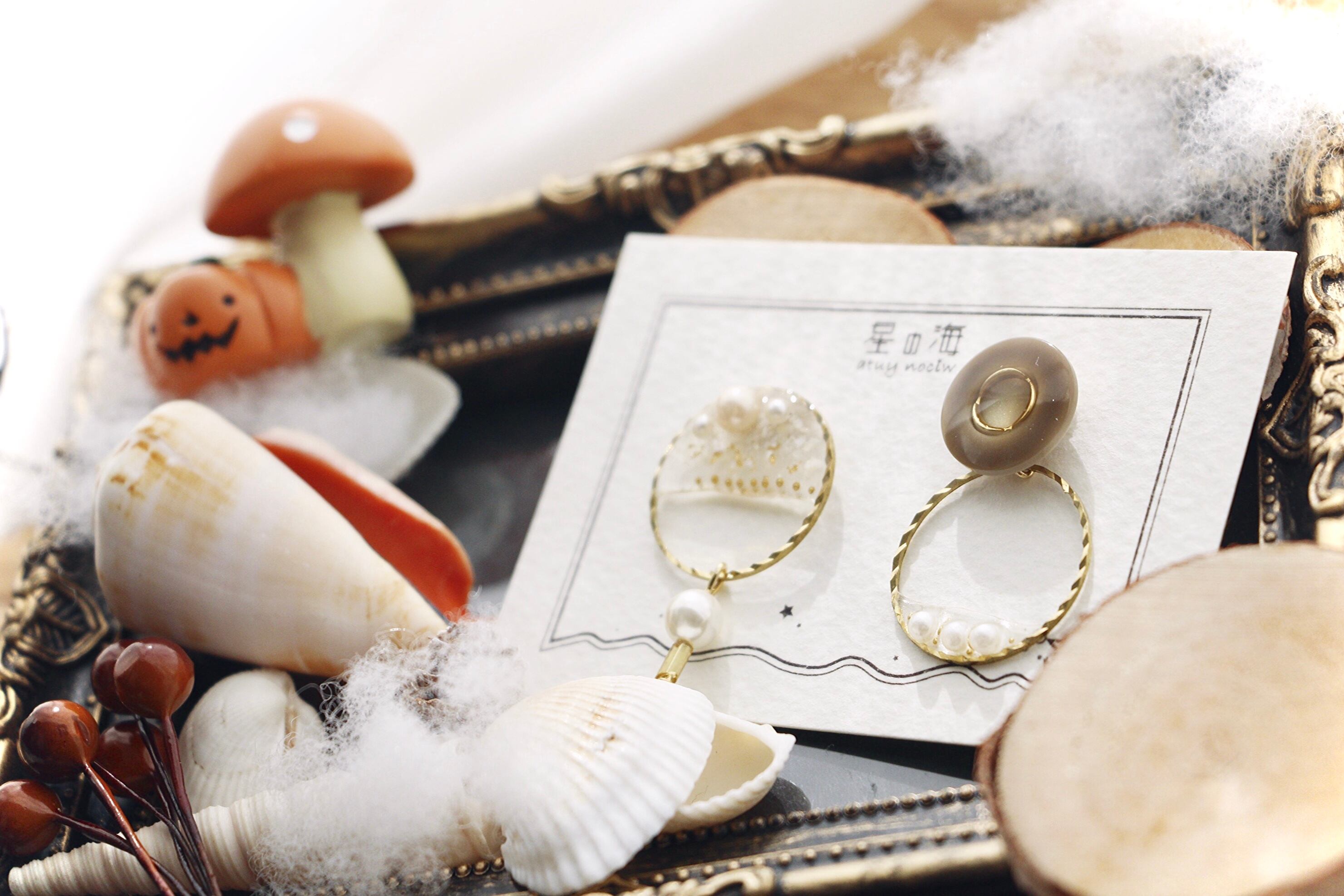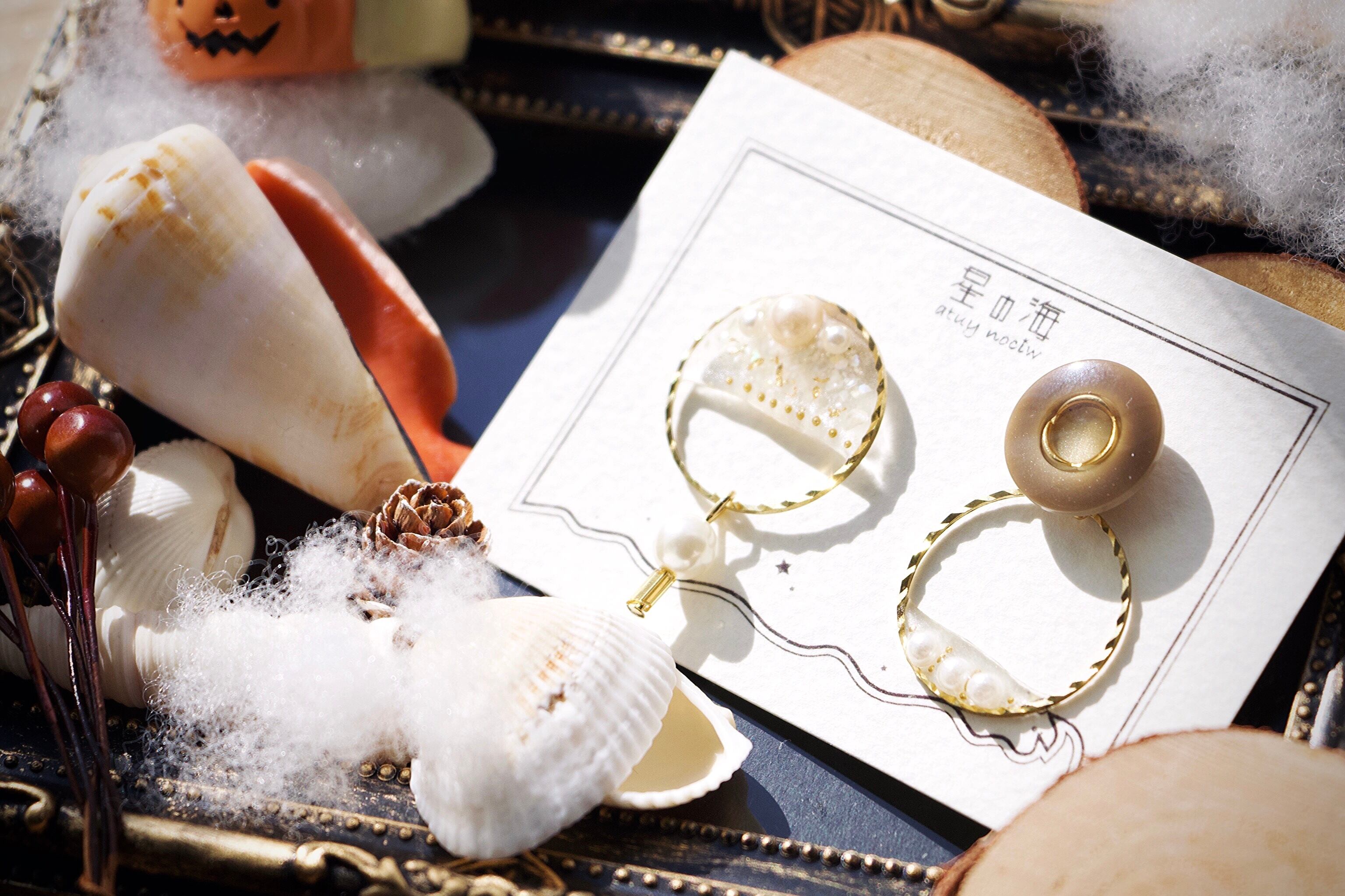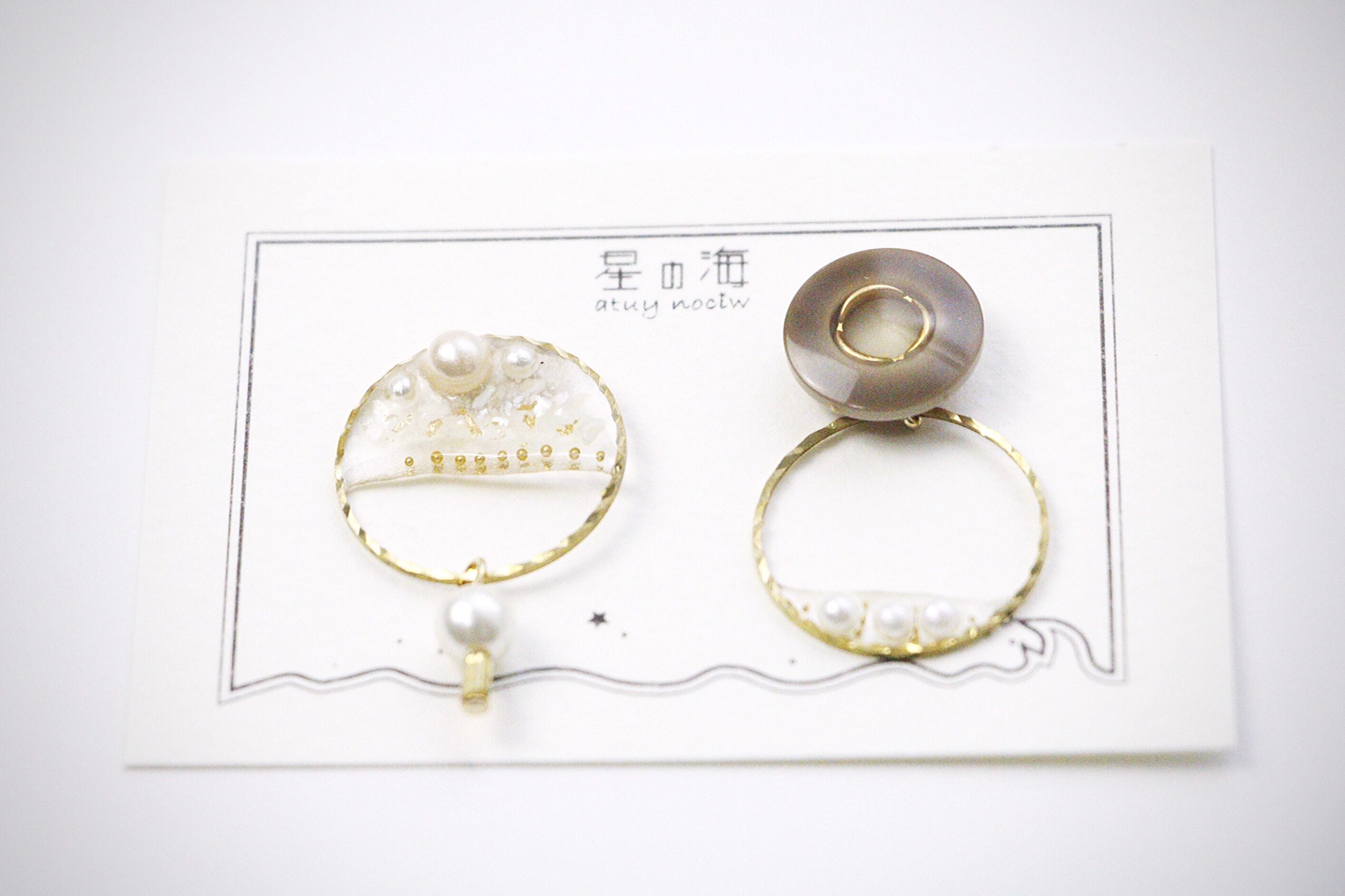 バランスの関係上、イヤリングにすると裏側が少々荒くなってしまうかもしれませんが、見えない部分ですのでご理解ある方のみでお願いします。