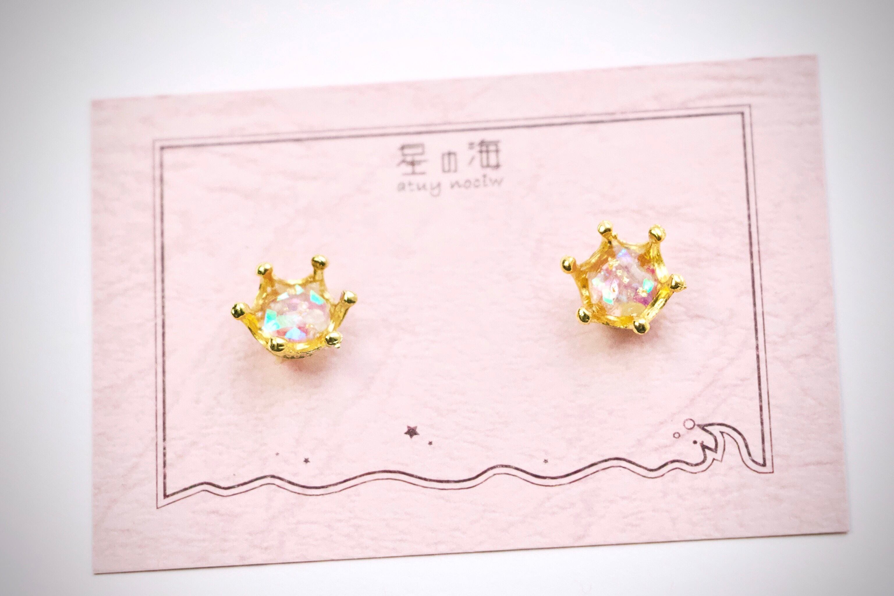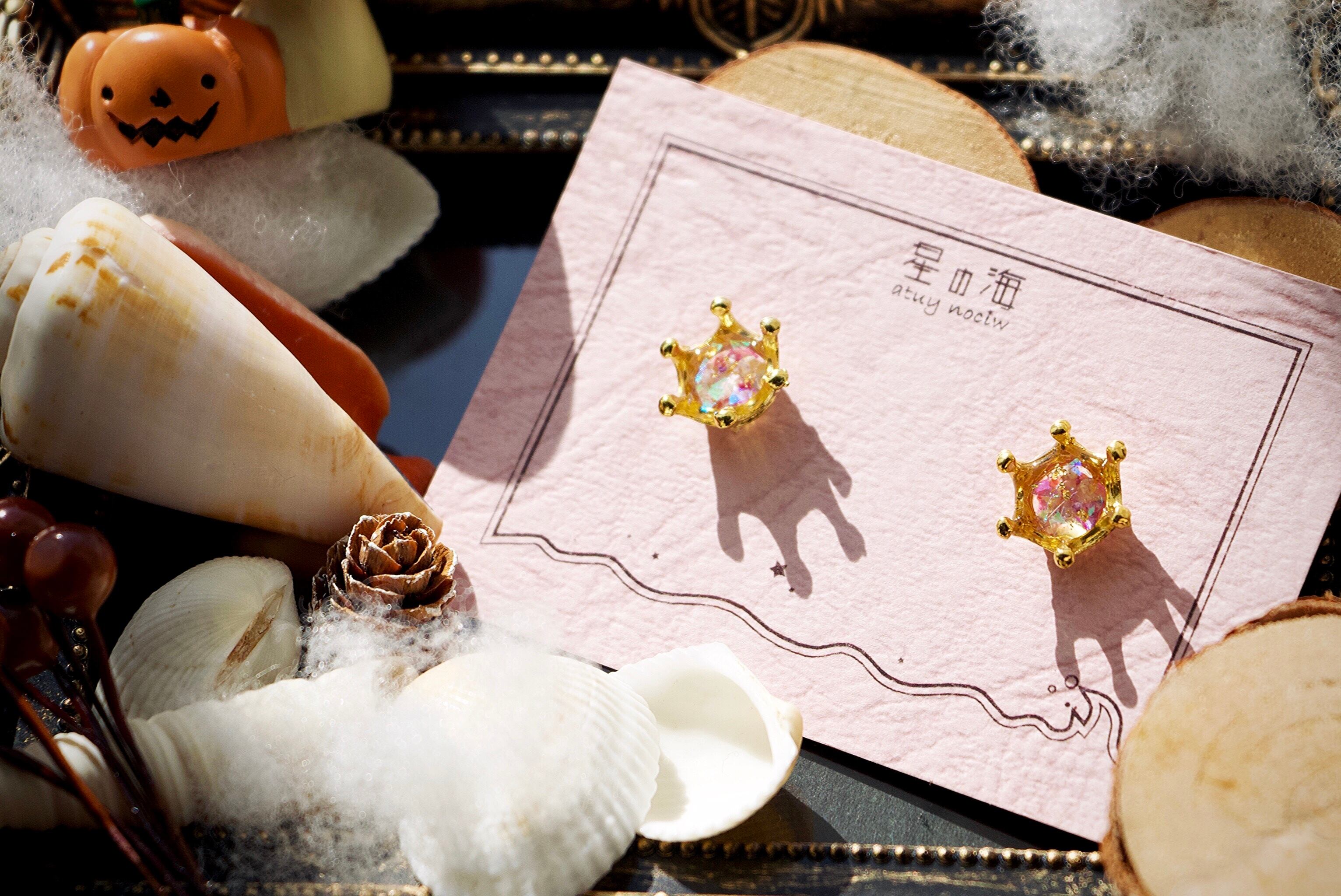 ティアラの形をしたフレームにお花と偏光フィルム、キャンディーのようなシェル、そして金箔を詰め込みました。