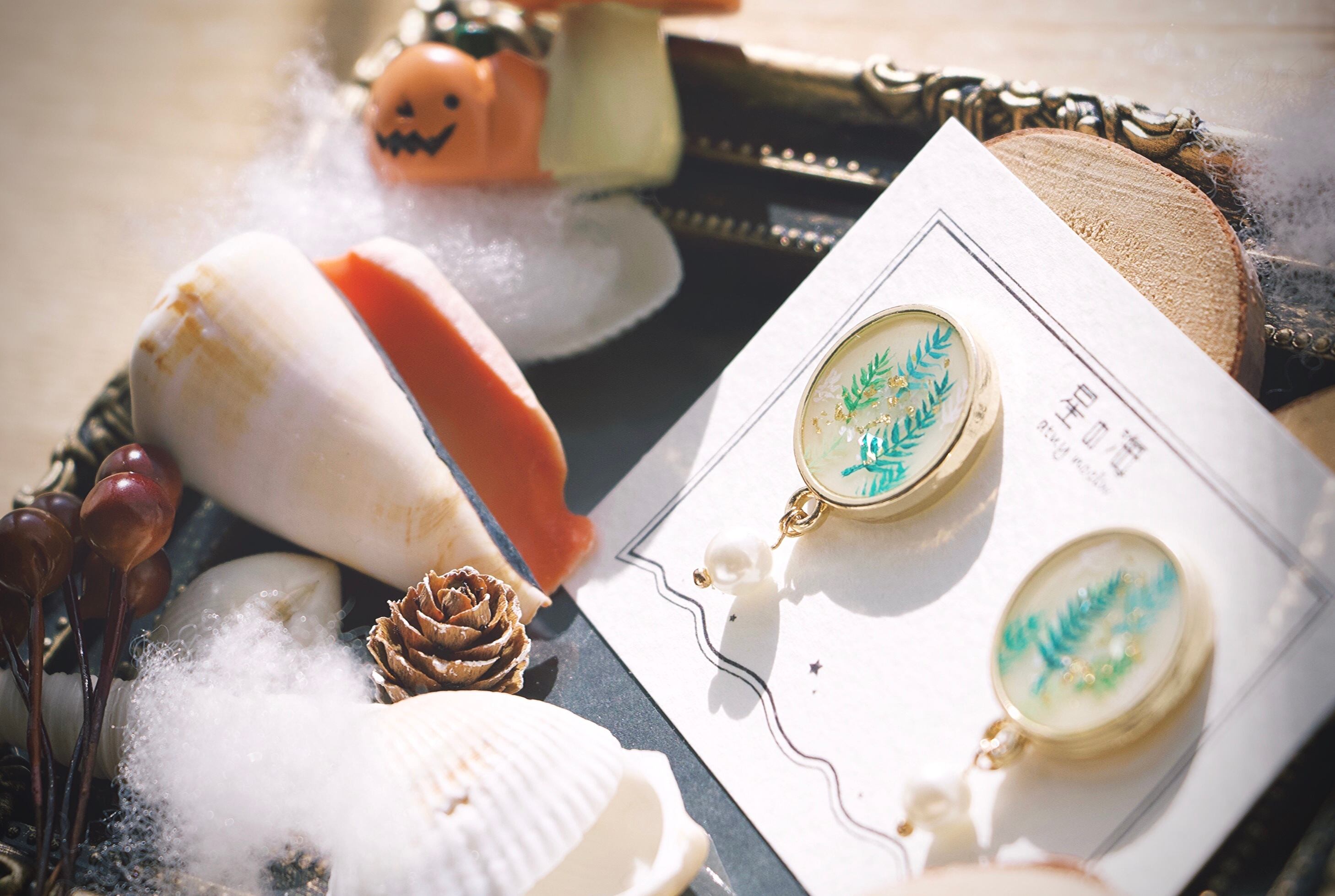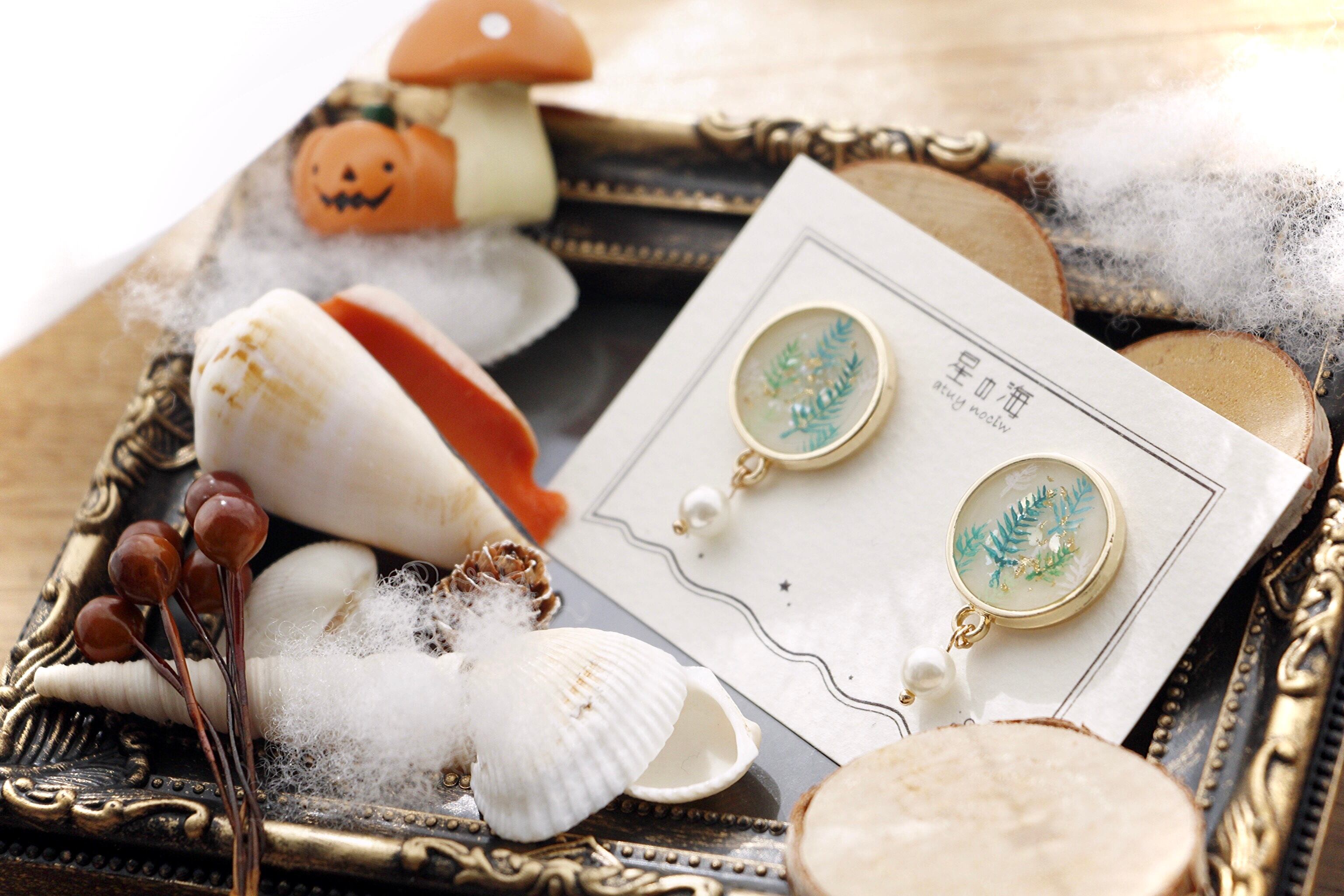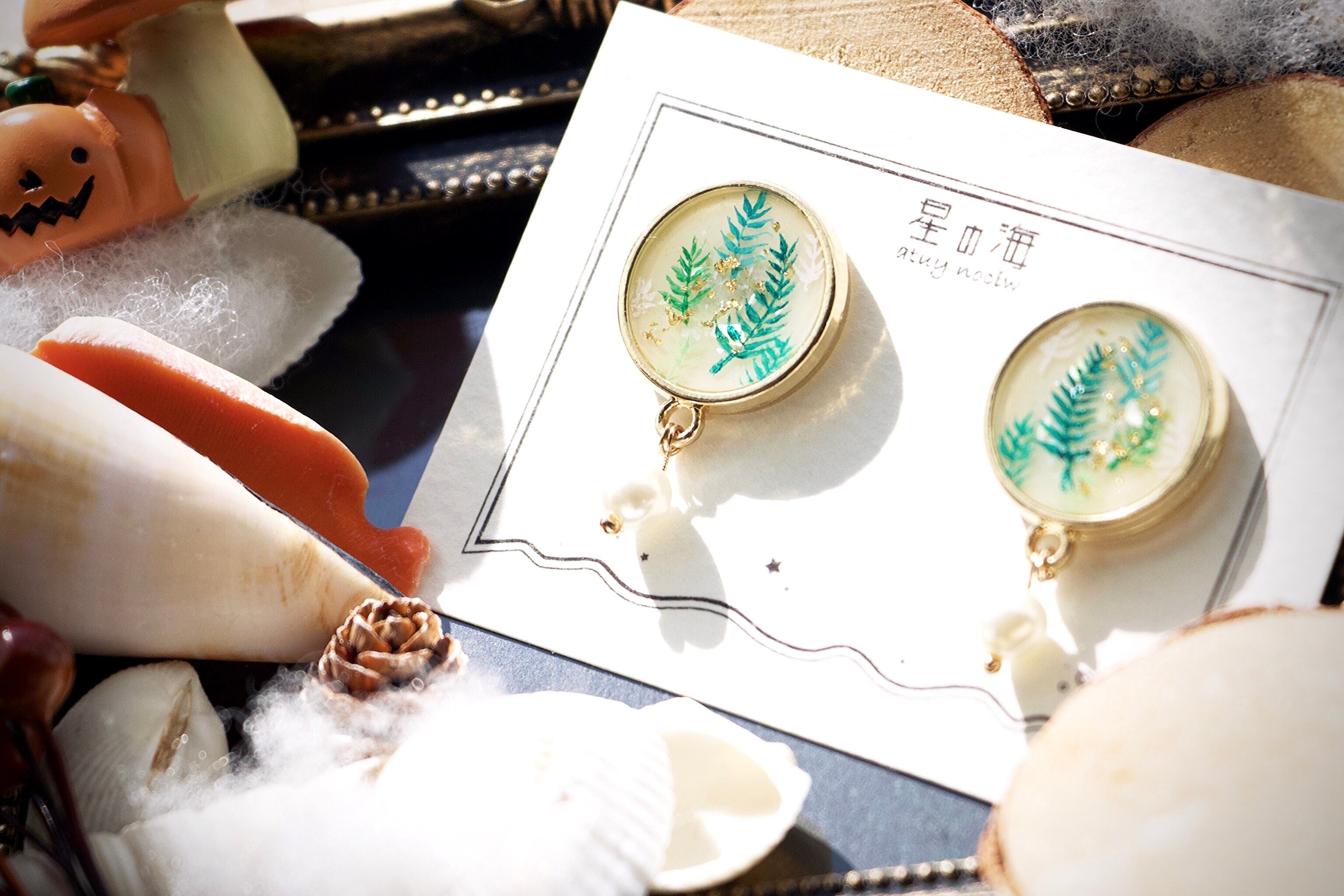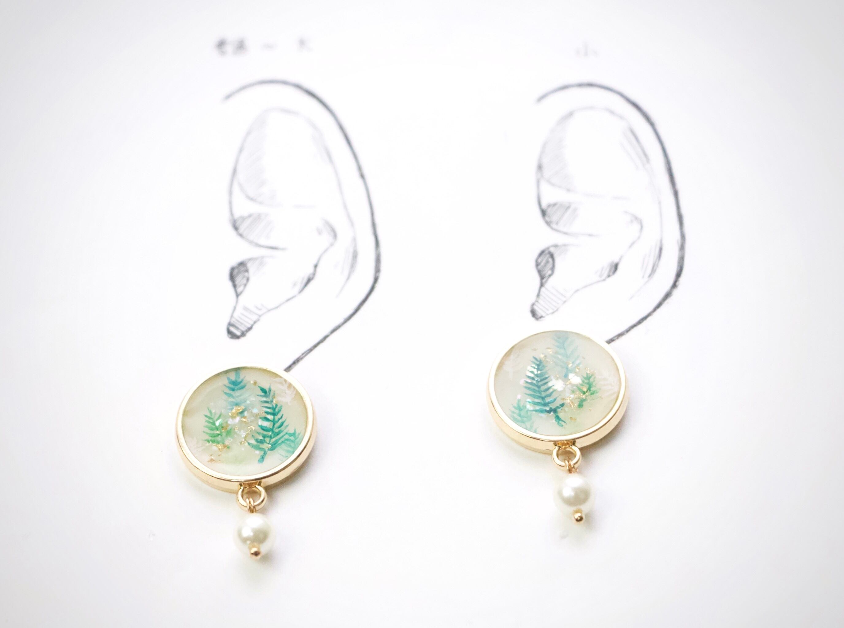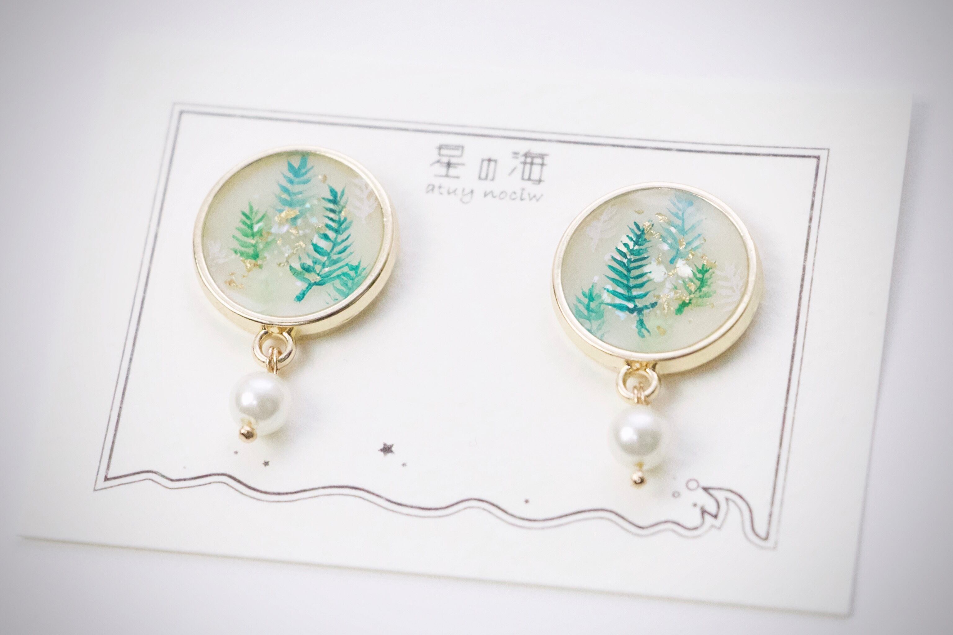 手描きのシダ植物をあしらったゴールドイヤーアクセサリーです。