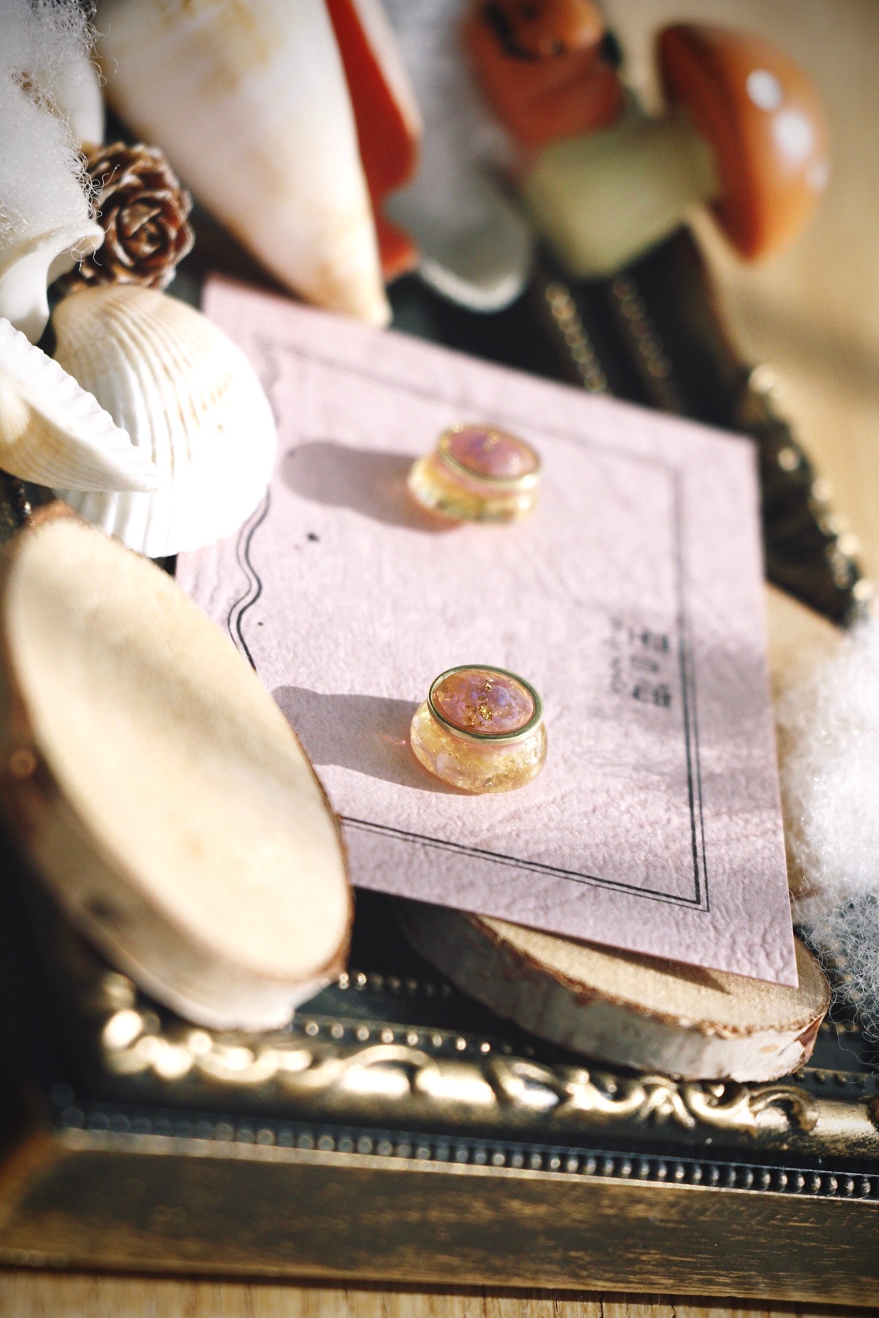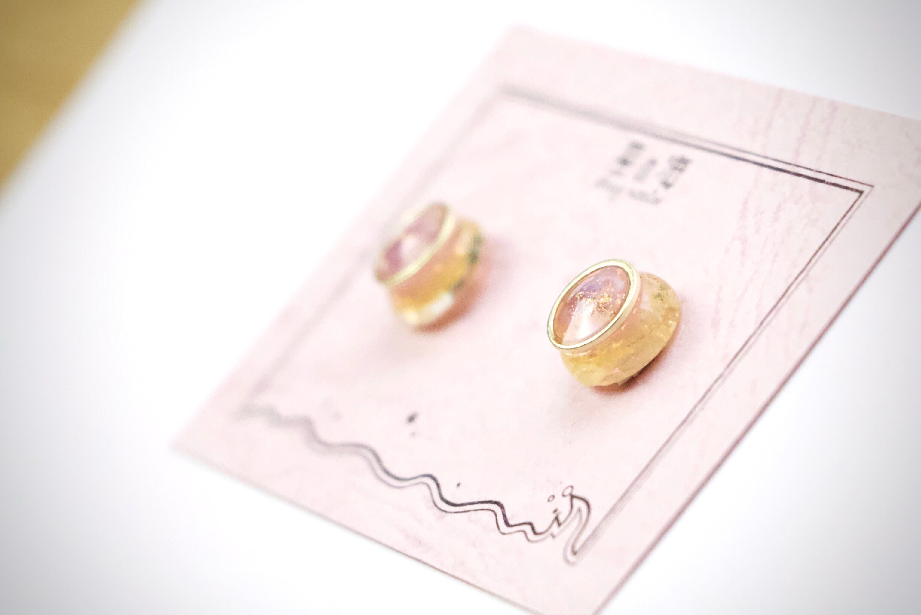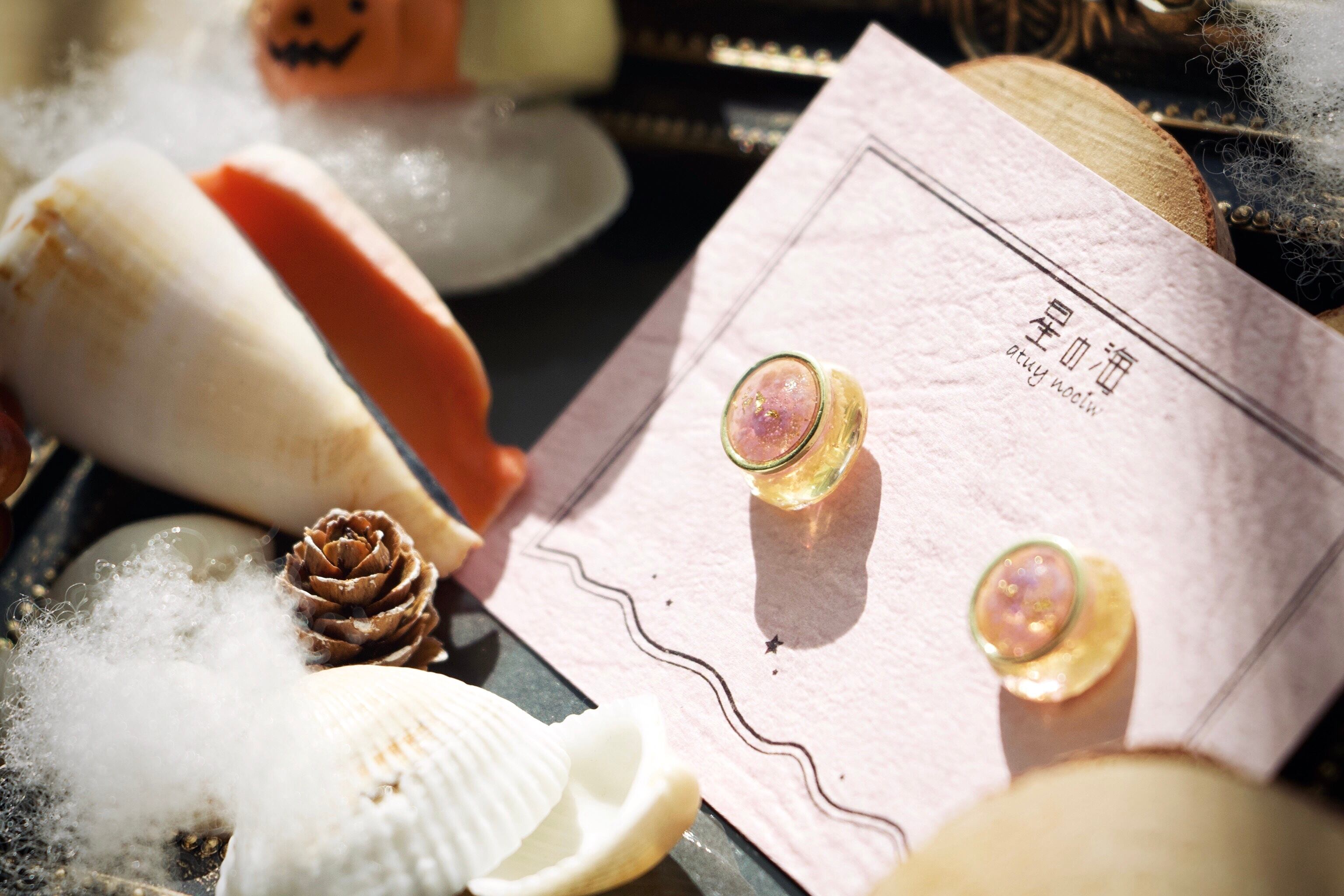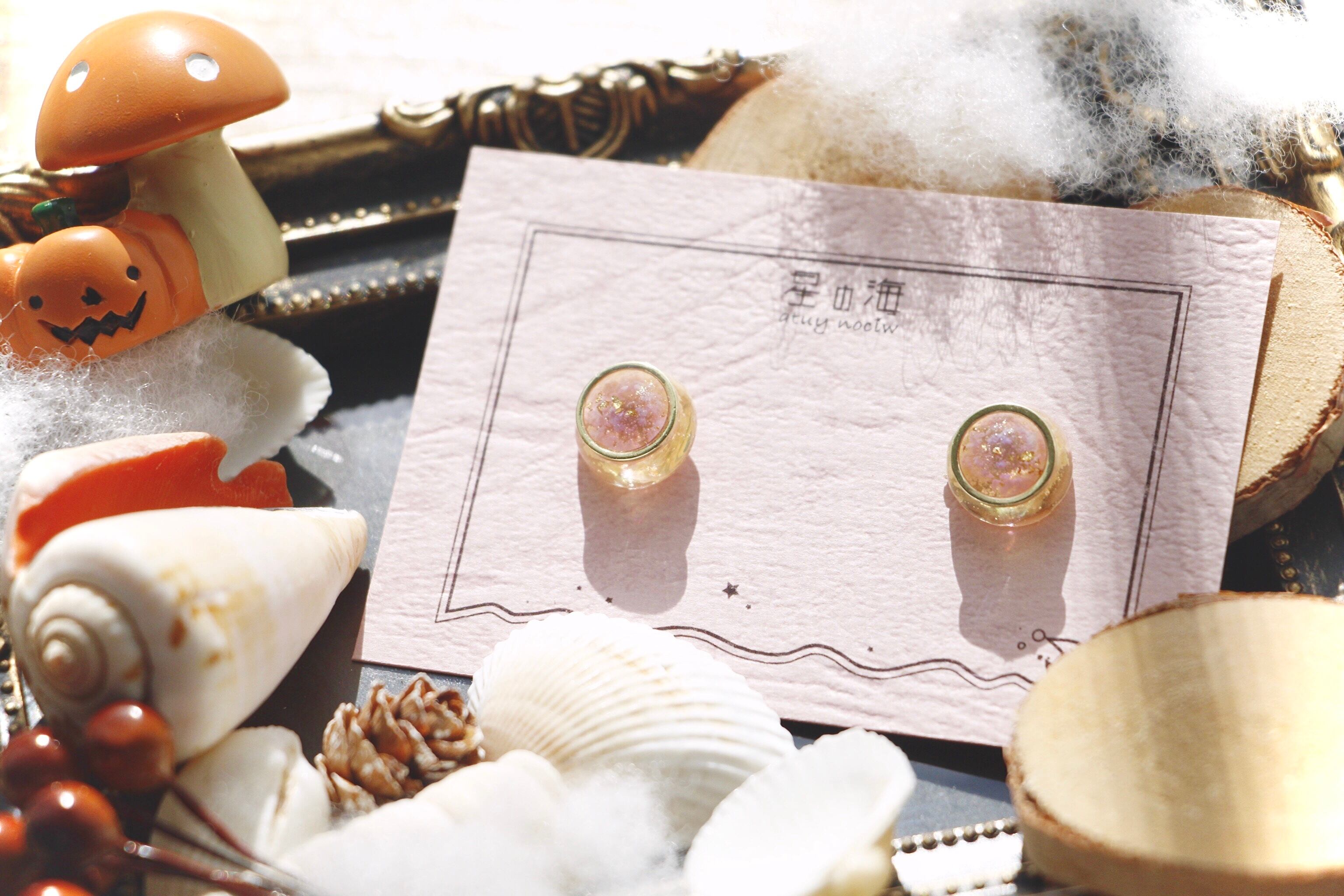 空レジンは秋の空をイメージし、紫と黄色を薄め、透明感たっぷりにすることでうるうるぷるぷるなフォルムにしました。