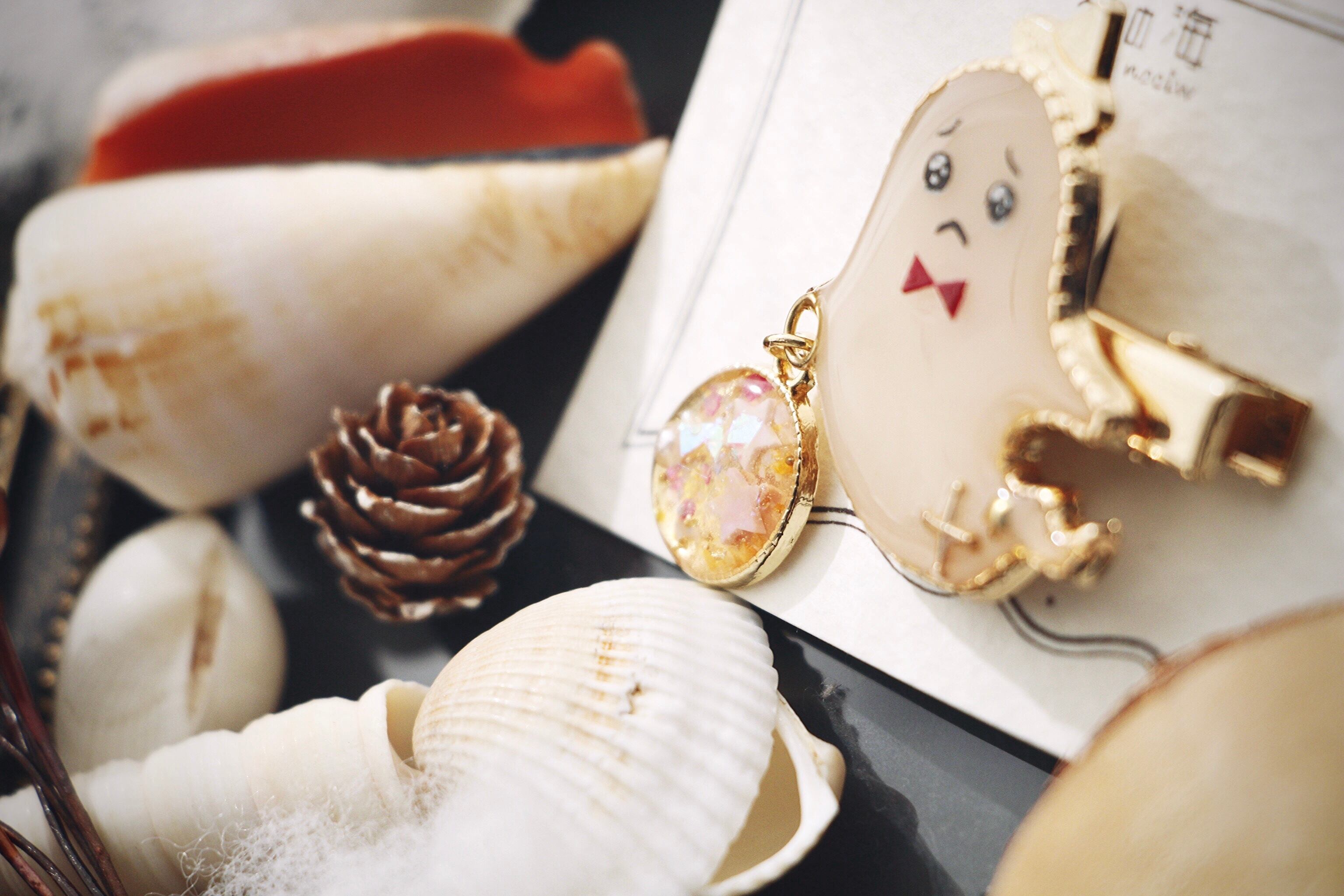 おばけさんは半透明を表現するため、クリーム色とクリアを煙のようなマーブル模様にしています。