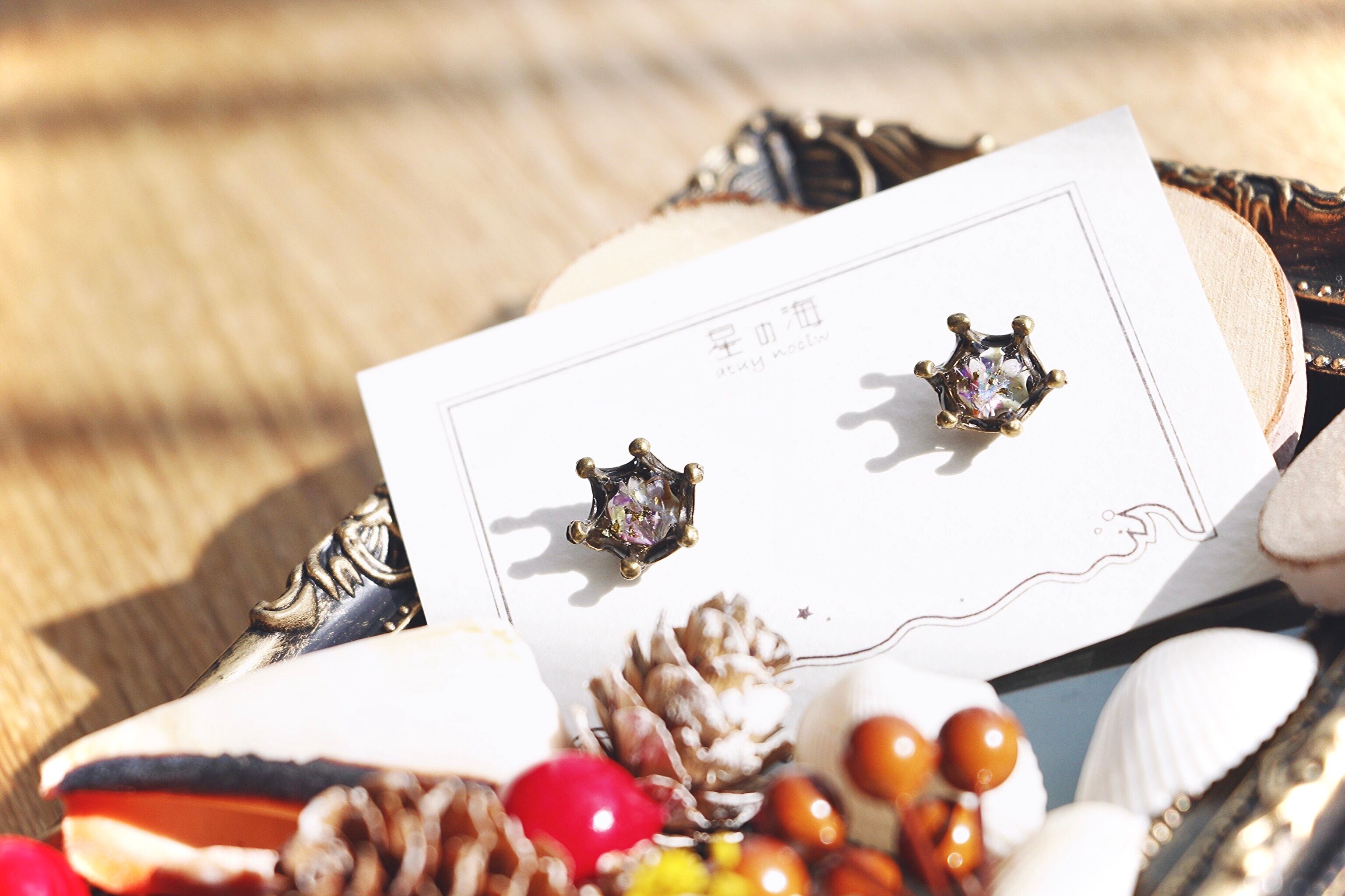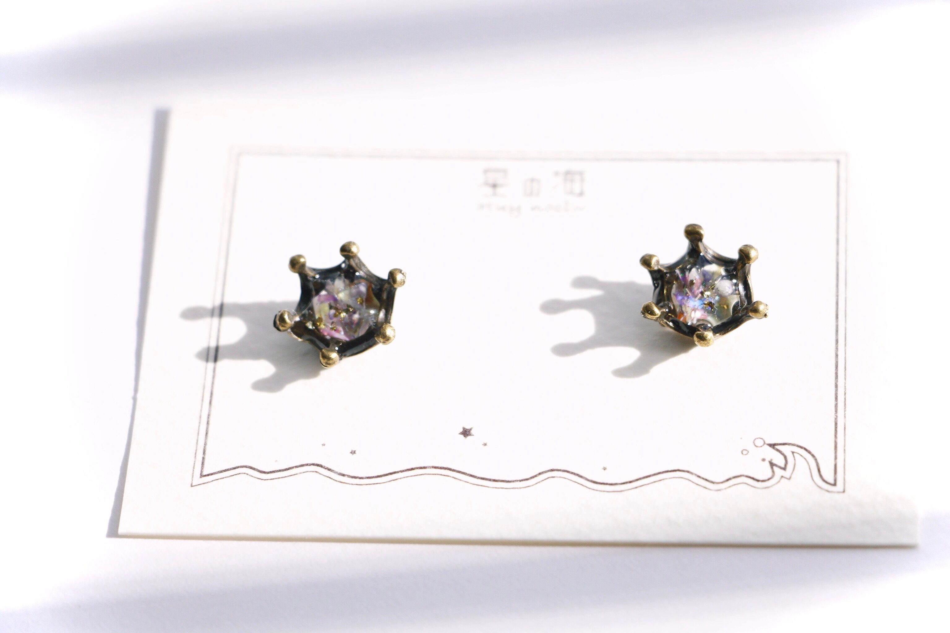 ティアラの形をしたフレームにお花と偏光フィルム、ブルー中心のキャンディーのようなシェル、そしてホイルを詰め込みました。