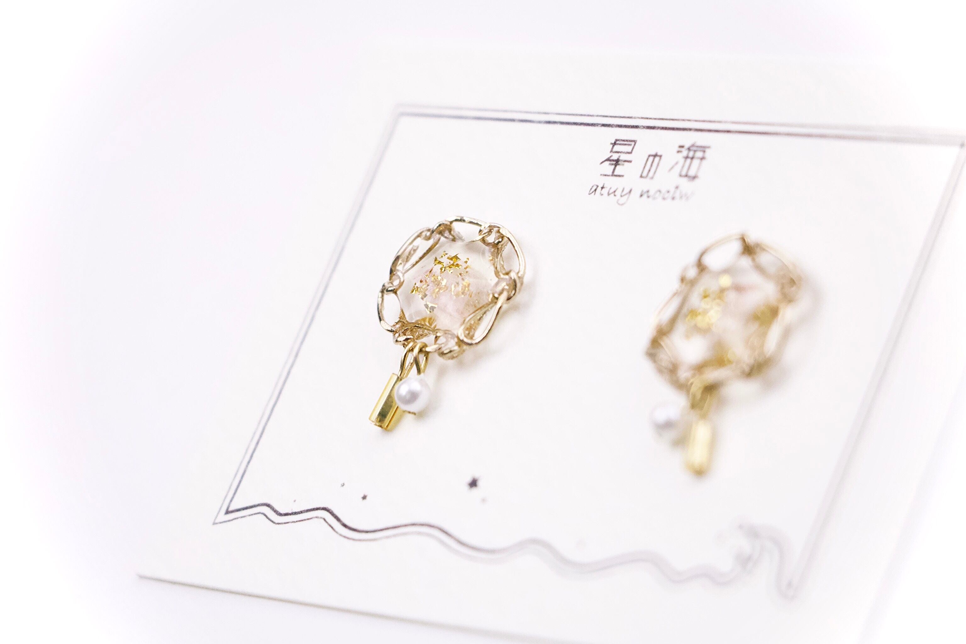 トップが透明のため、ノンホールピアスだと透明感が増し使いやすいかと思います!ご希望であればピアスなどを当てるパーツはなるだけ小さく致します。