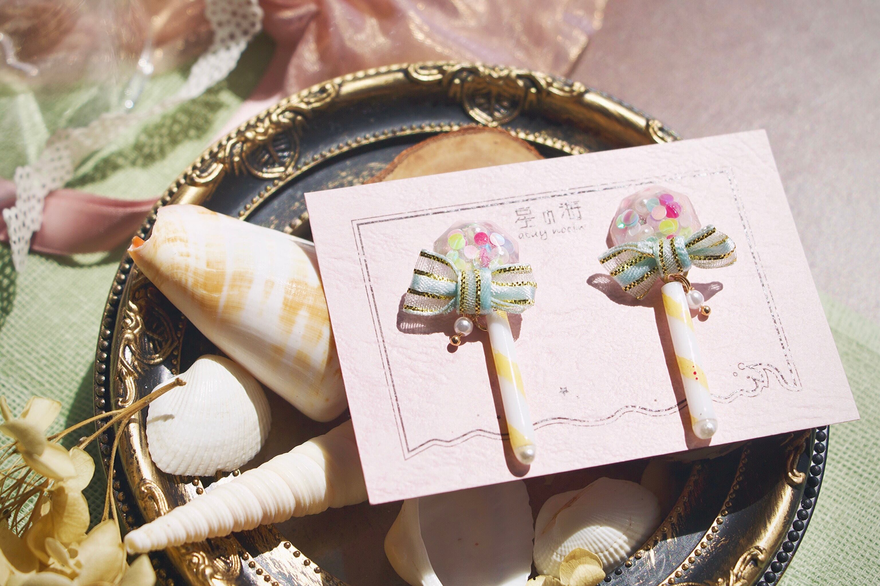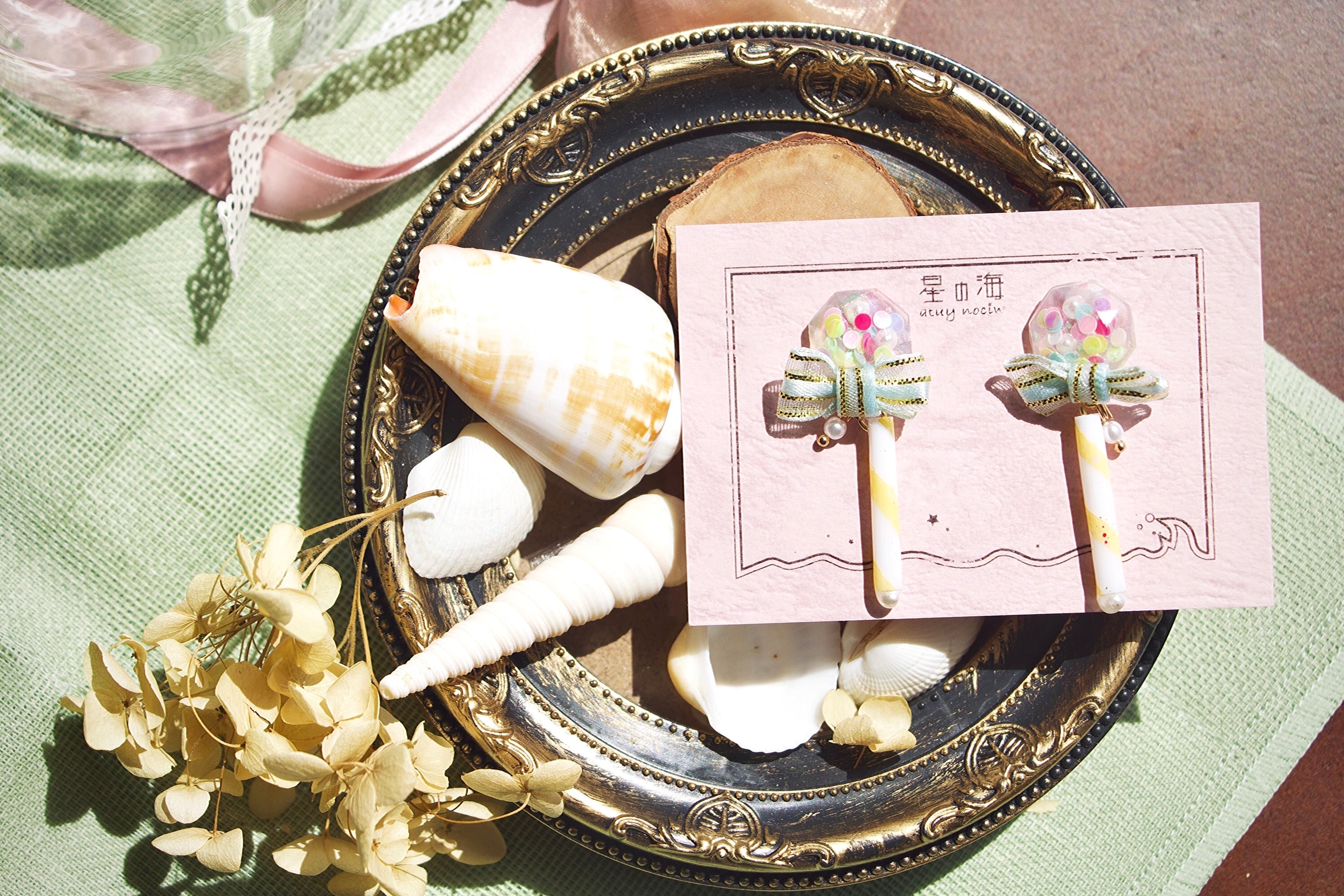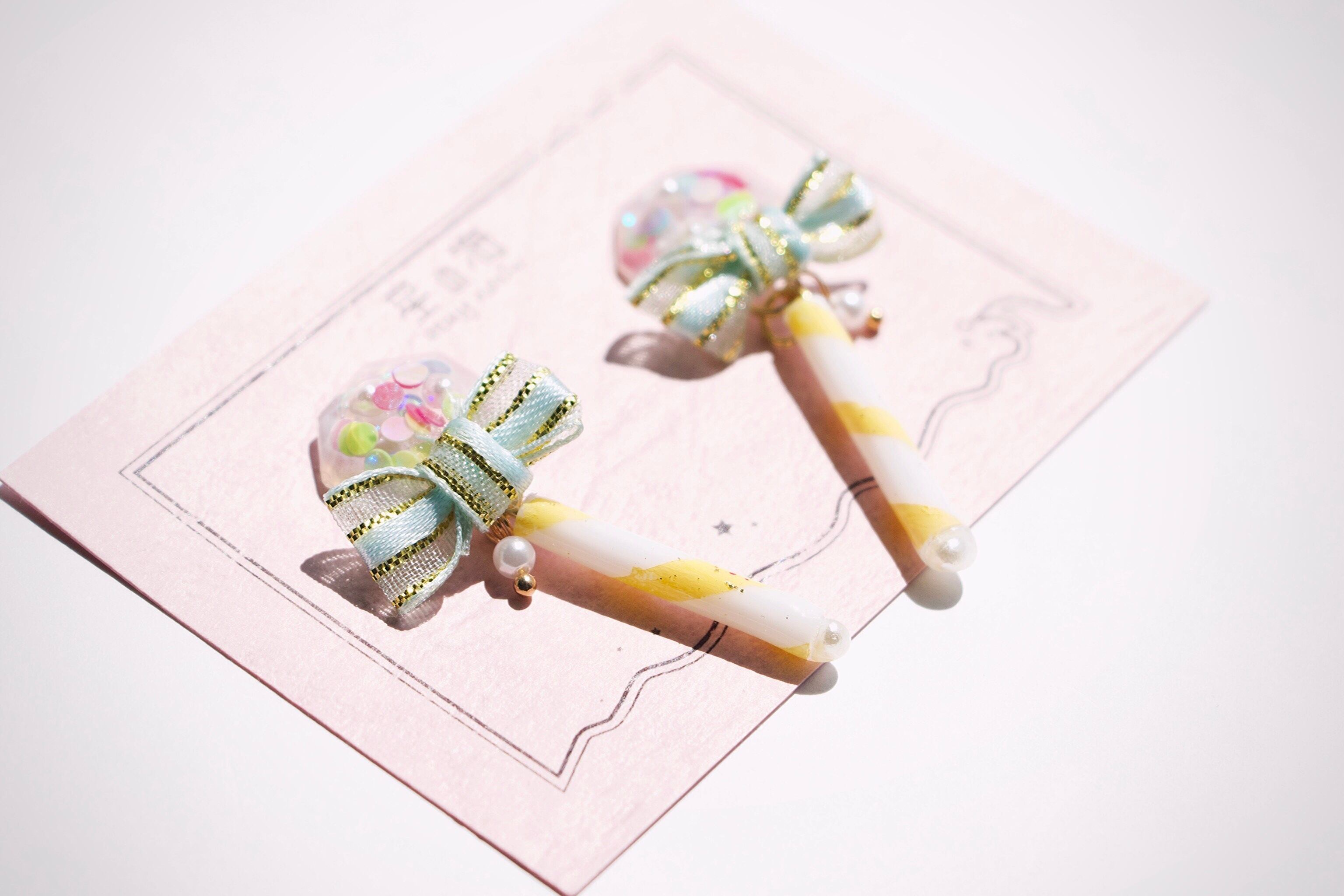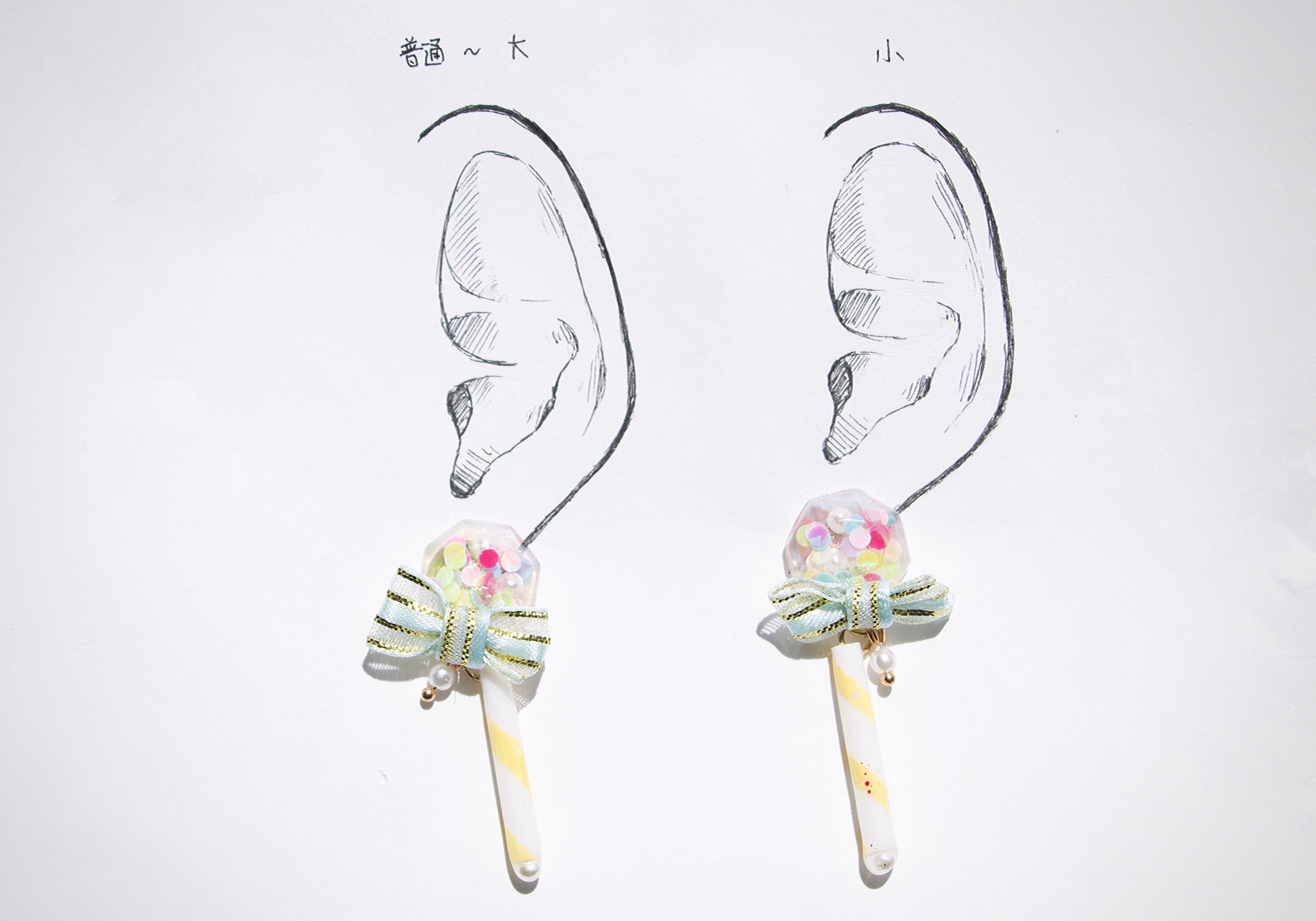 棒付きキャンディーのような可愛らしいイヤーアクセサリーをちょっぴりアレンジしたリメイク作品が登場♡