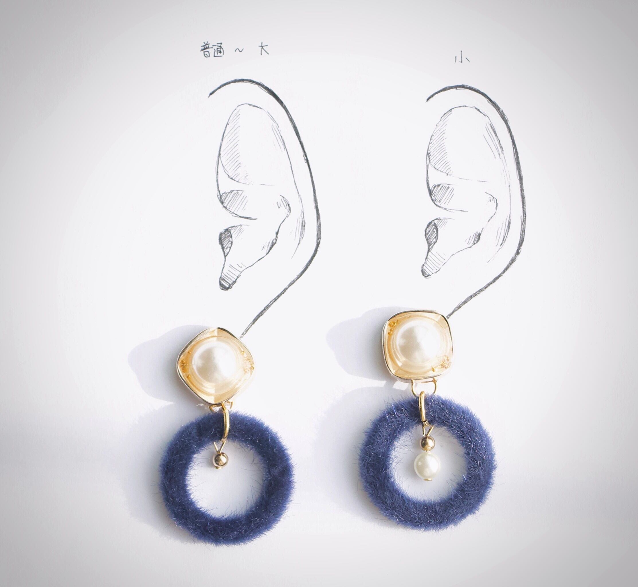 耳シートの左は平均的な女性の普通〜大きめの耳、右は小さめの耳のモデルとなっております。ご参照ください。