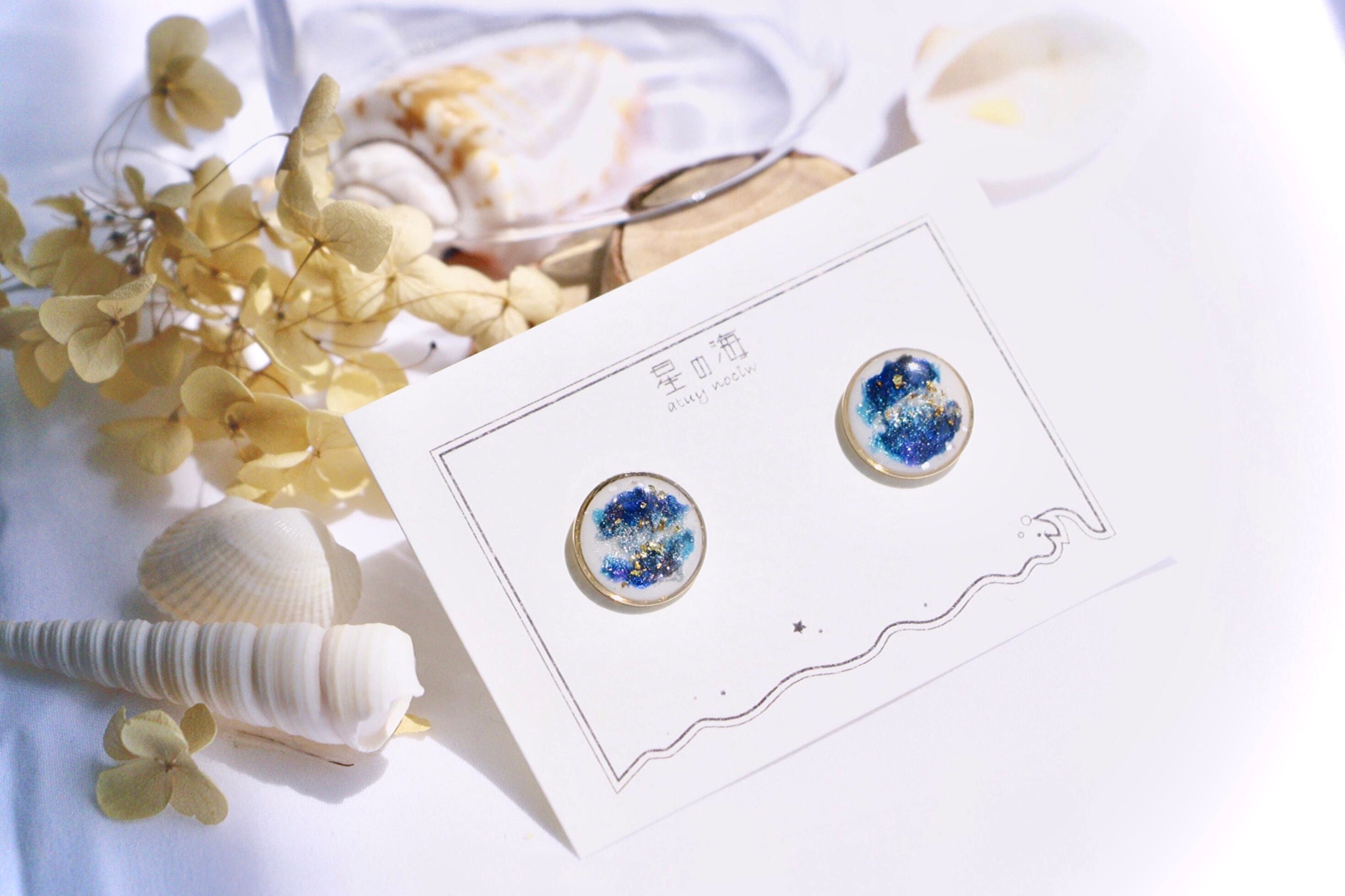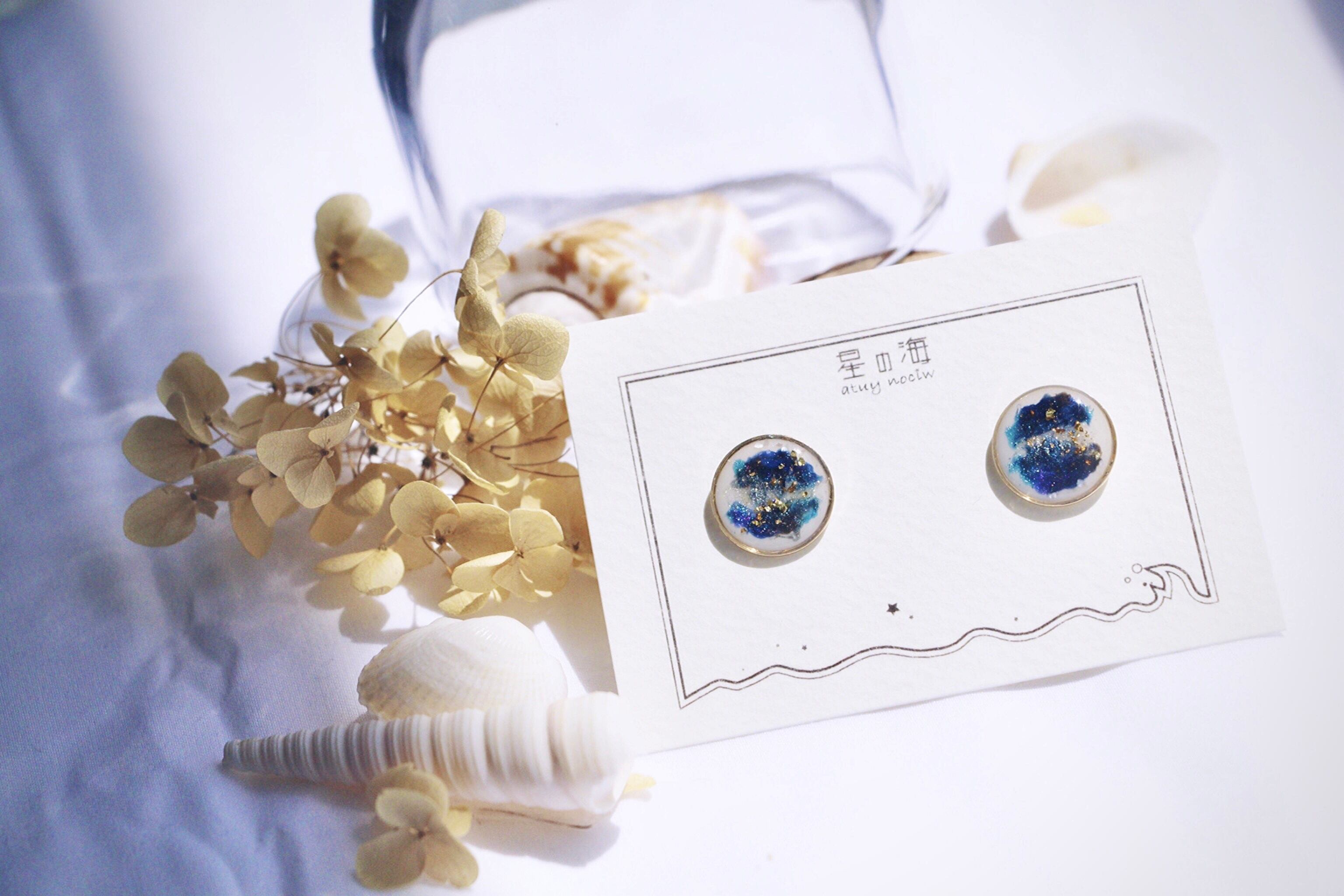 無限のキャンバス (宇宙柄 青 ピアス イヤリング)