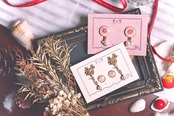 キラキラとしたトップの下には大小のパールが赤と緑で左右色違いのビーズと揺れ、ちょっとした遊び心に♪
