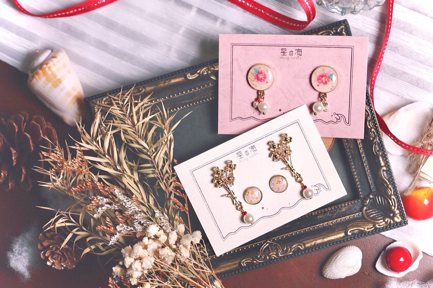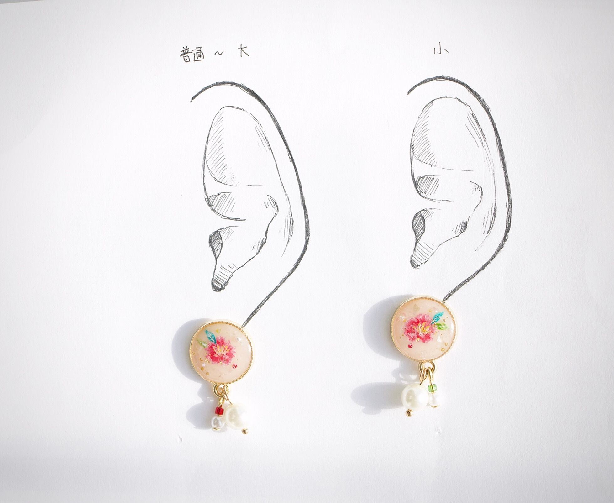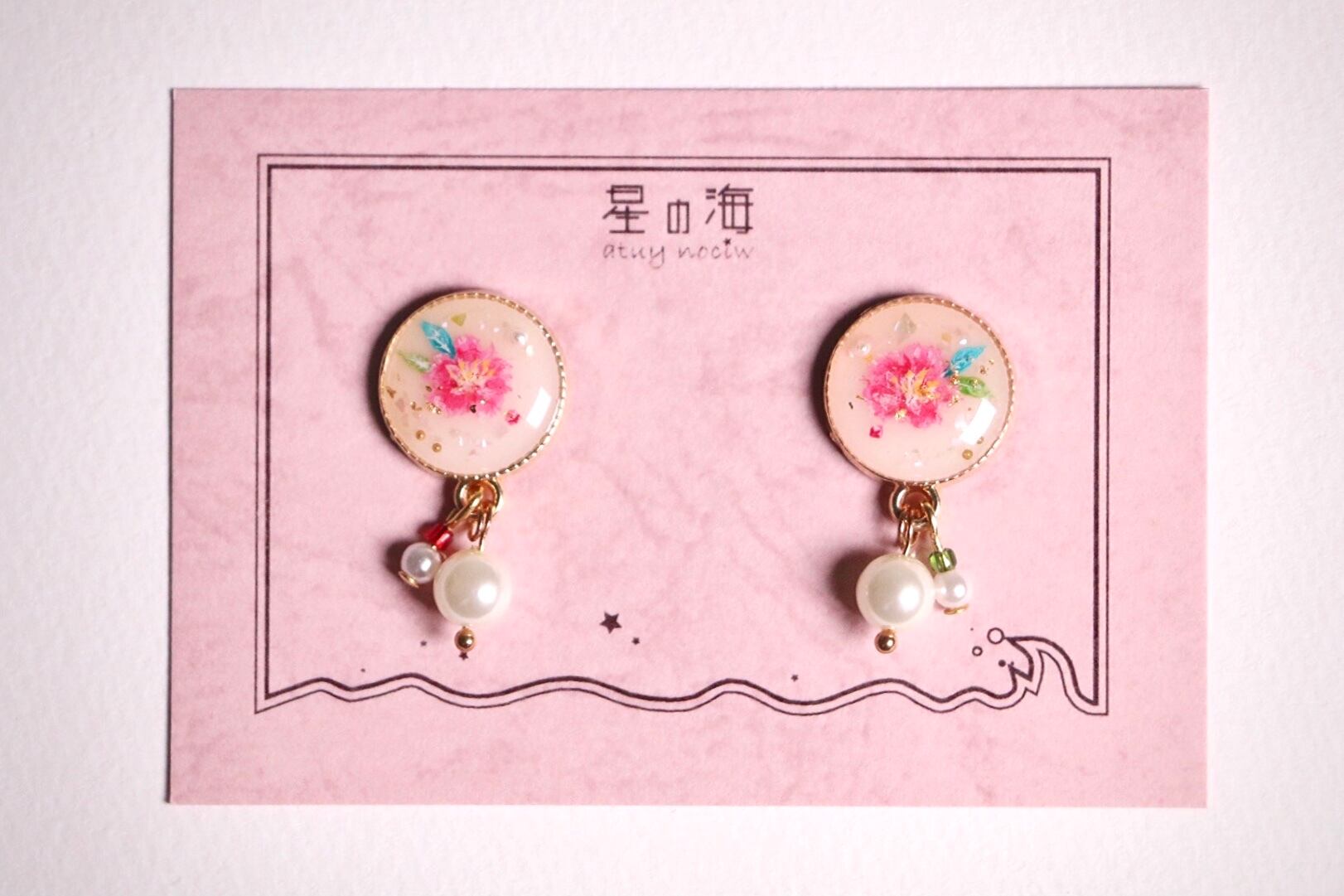 ハンドメイド アクセサリー ピアス イヤリング 梅 お花 手描き 成人式 卒業式 和風 福袋 和洋折衷 キラキラ ピンク 赤 小ぶり かわいい きれい