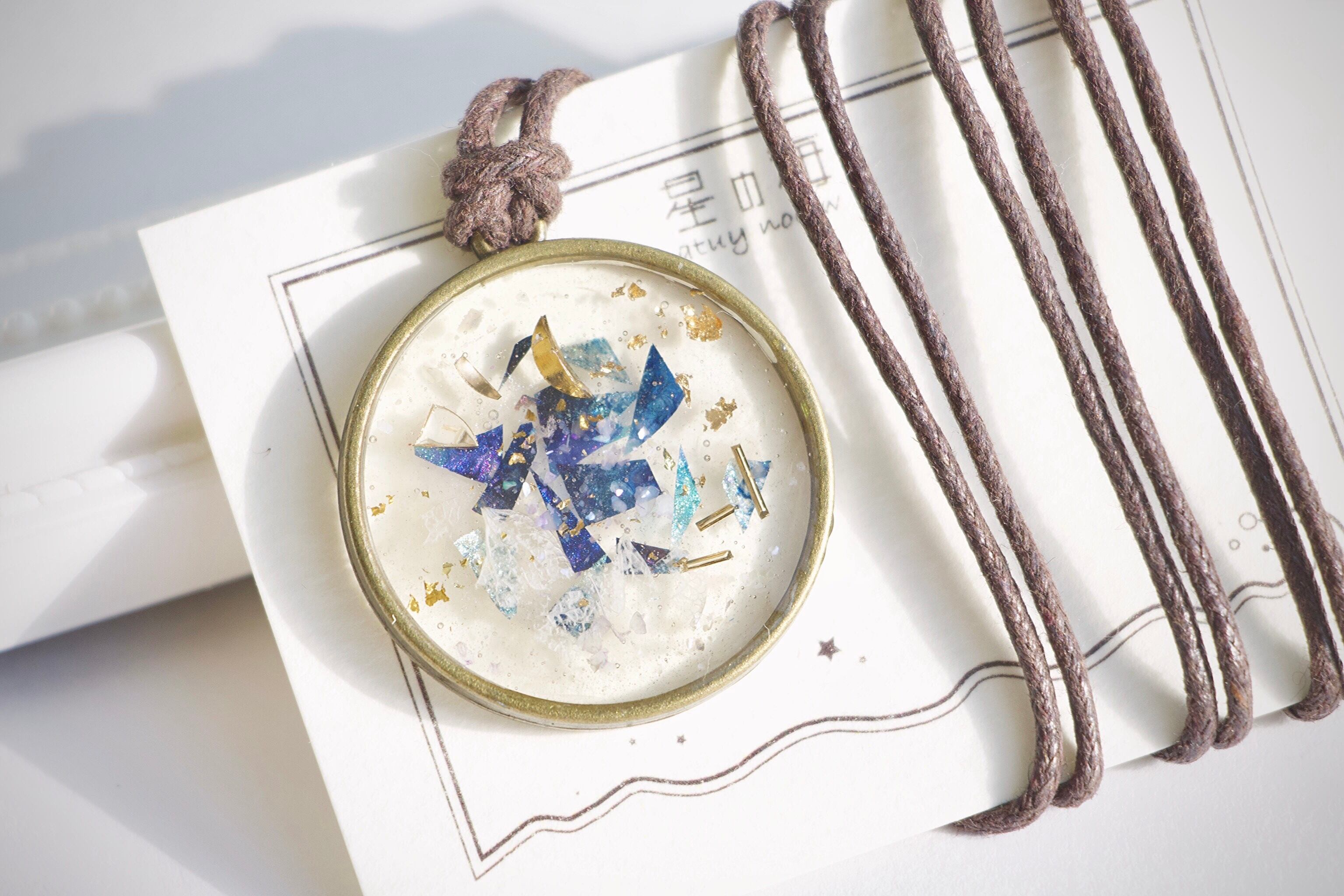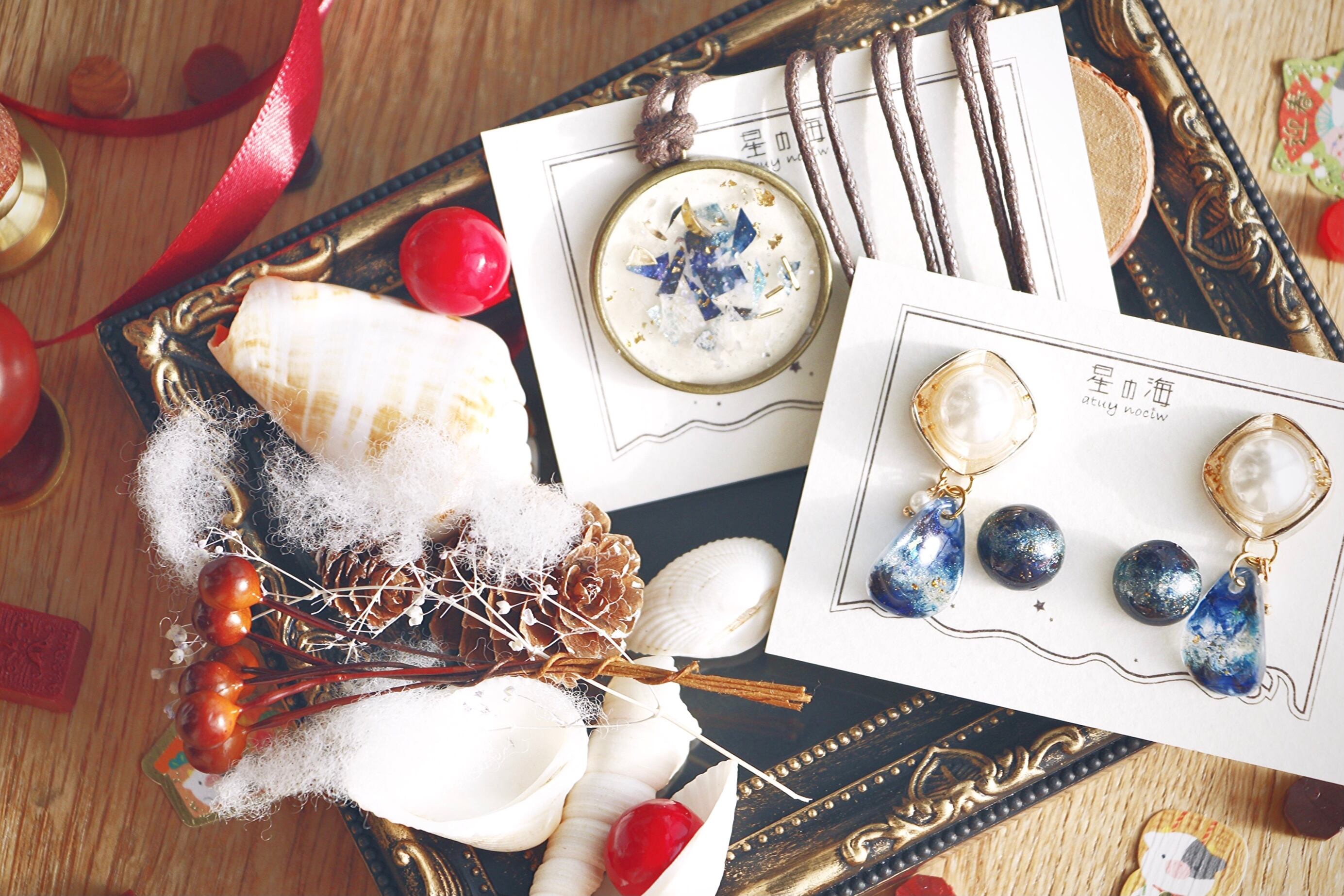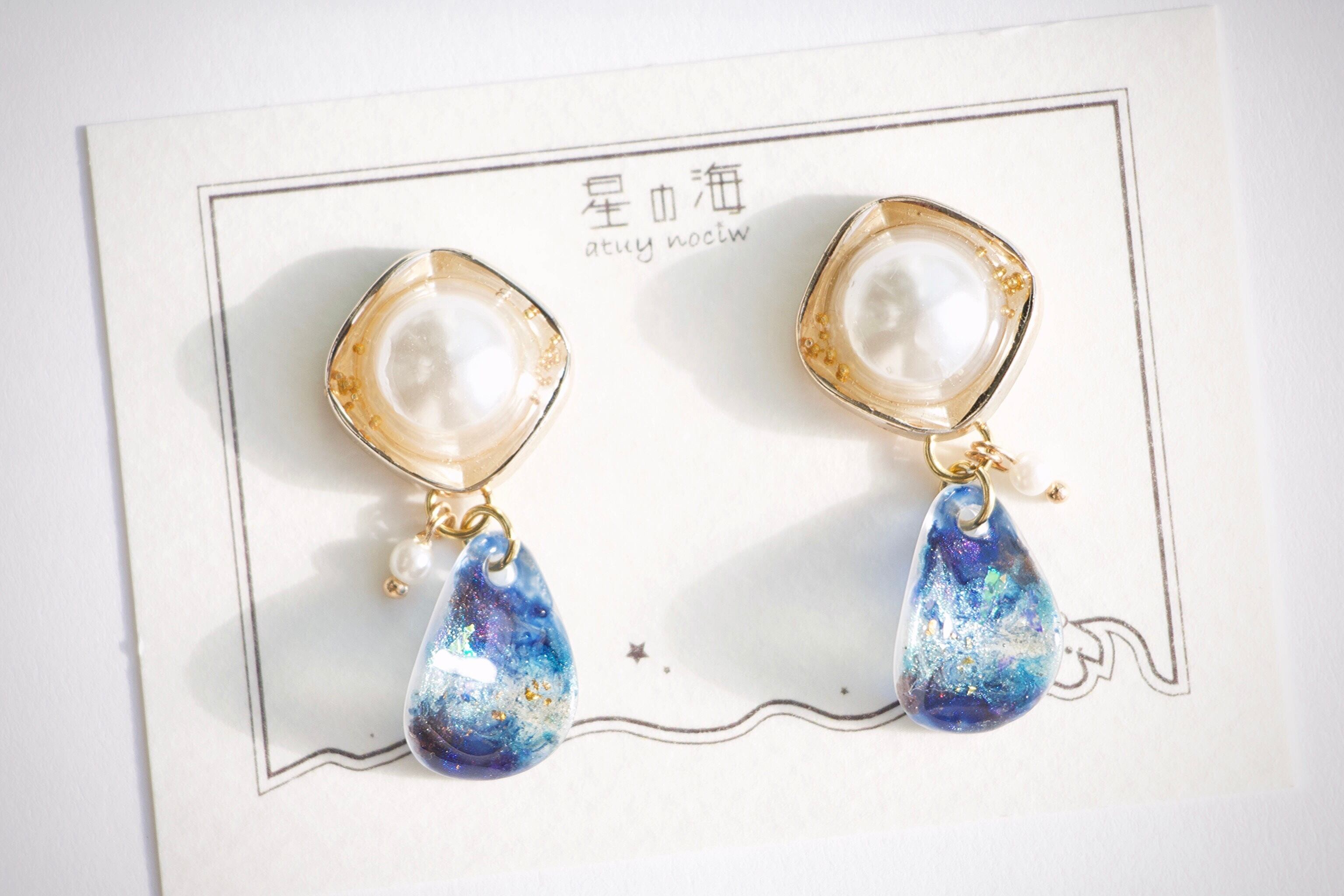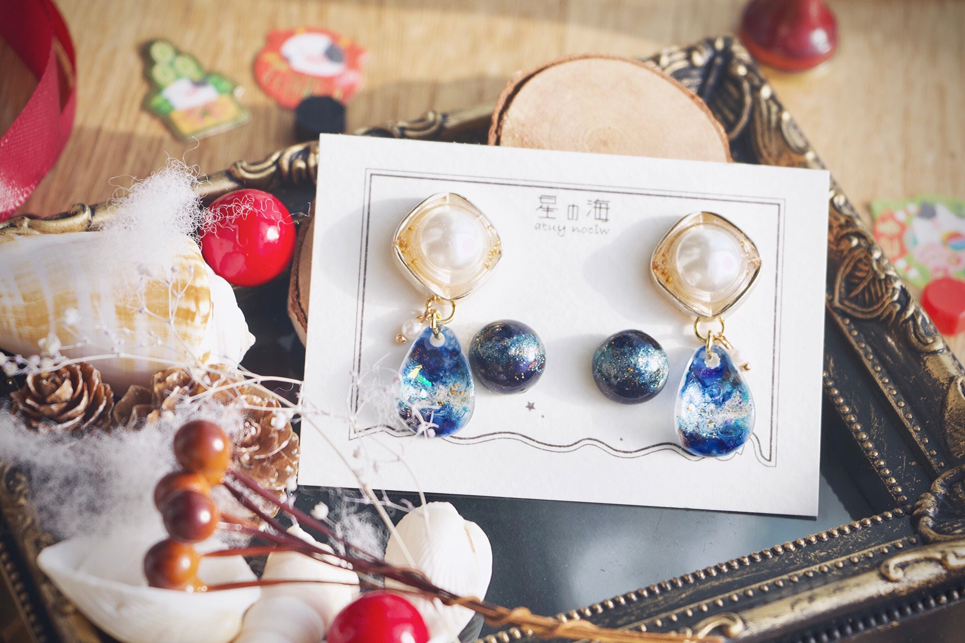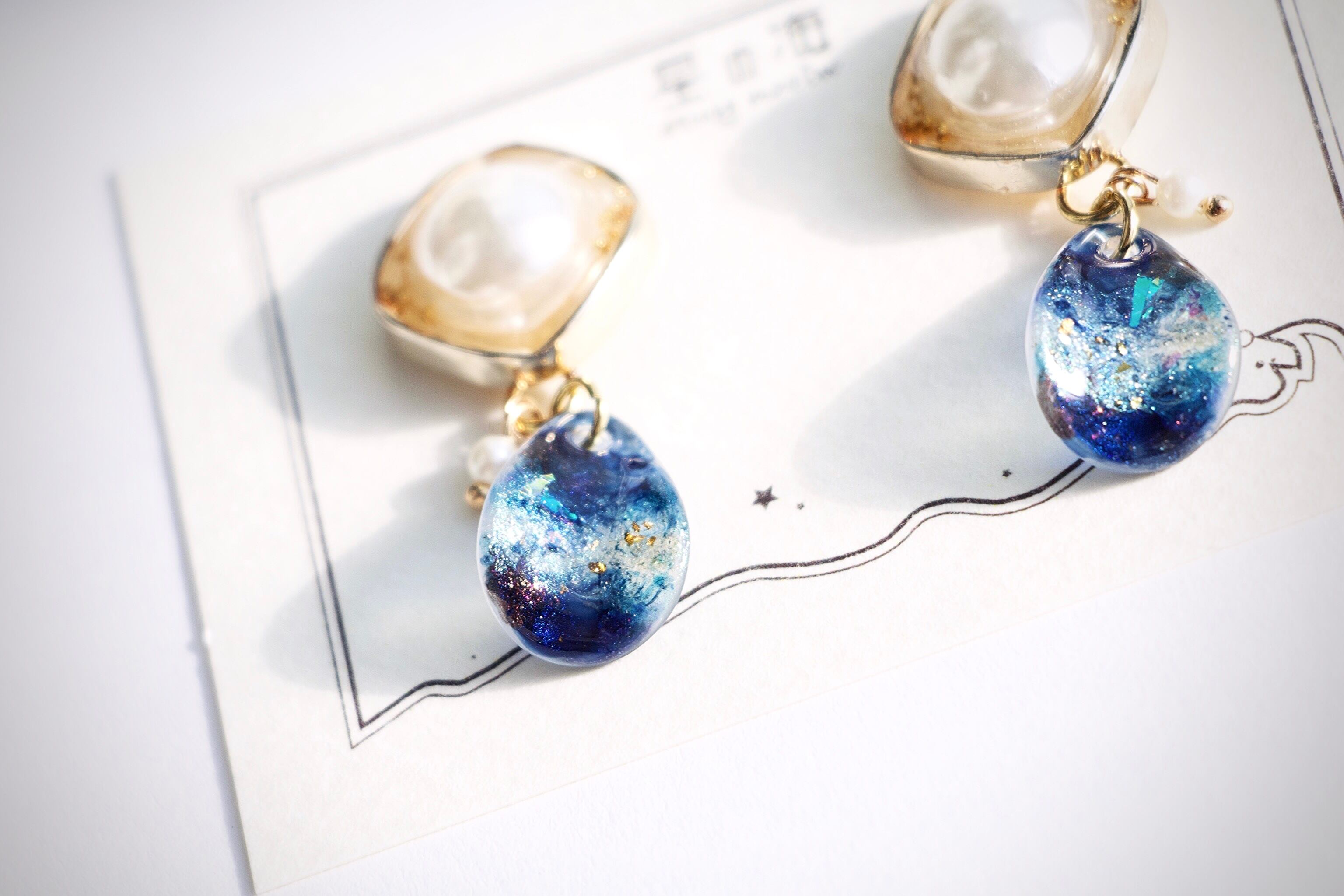 偏光フィルムでワクワクを足し、流れ星をイメージしたミニパールとゴールドビーズがアクセントになっています!