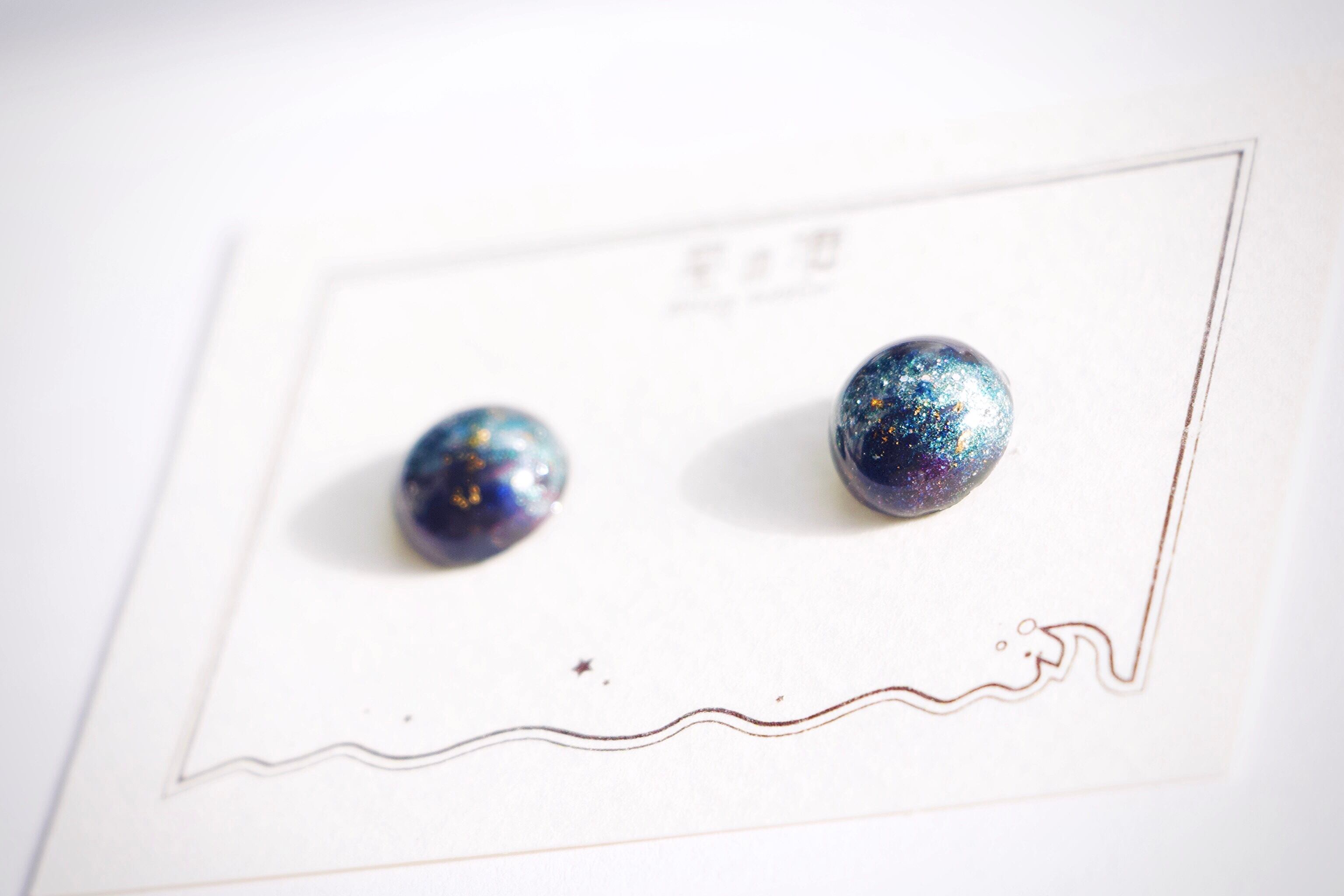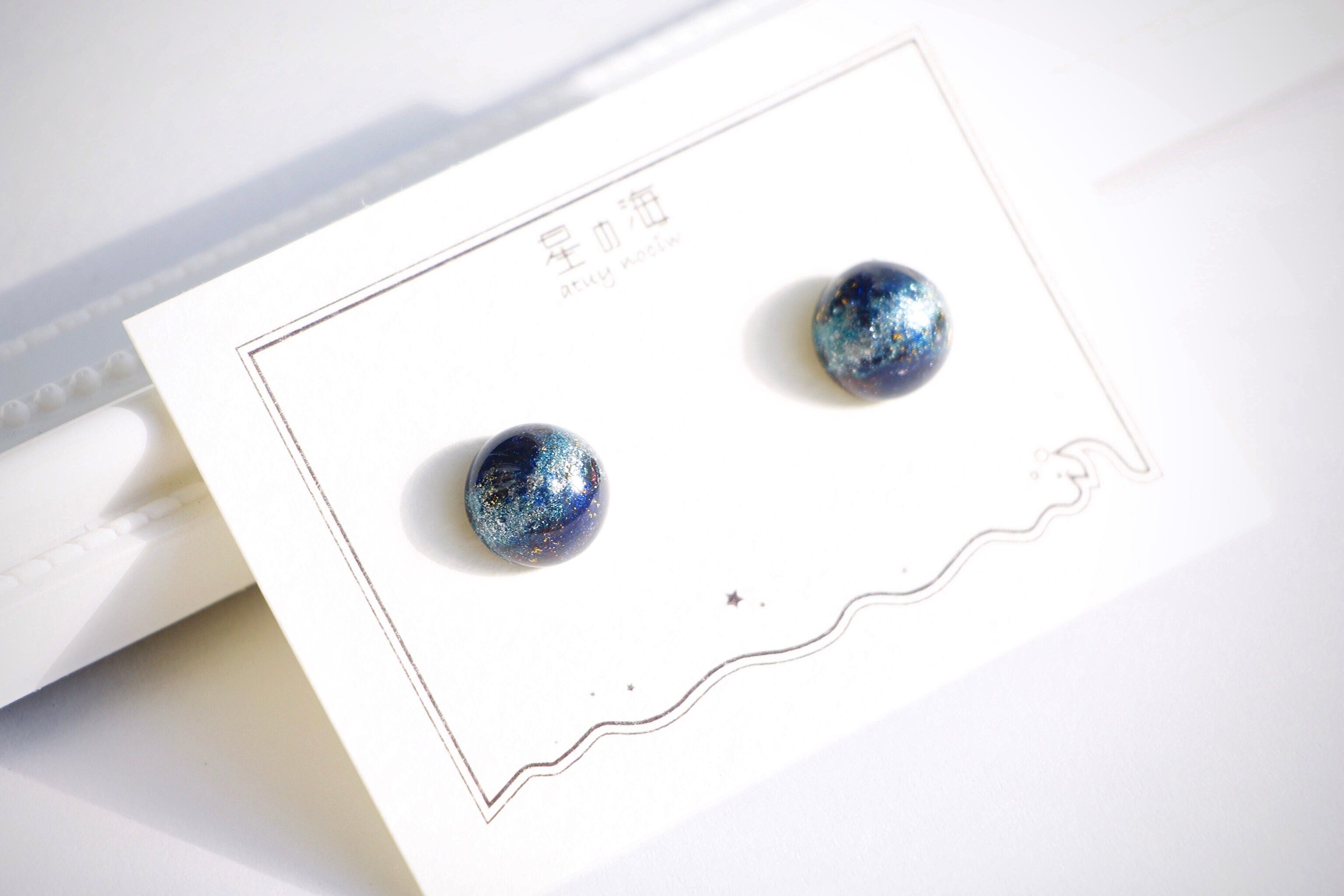 ・まん丸な天体宇宙のこちらの作品。星の海では珍しく宇宙自体がぷっくりとしたデザインになっています。少し暗めの色味ですが、こちらも見る角度によってさまざまな色が見えてきます!天の川に細かい金箔を散らした星がなんとも言えない美しさです…♡