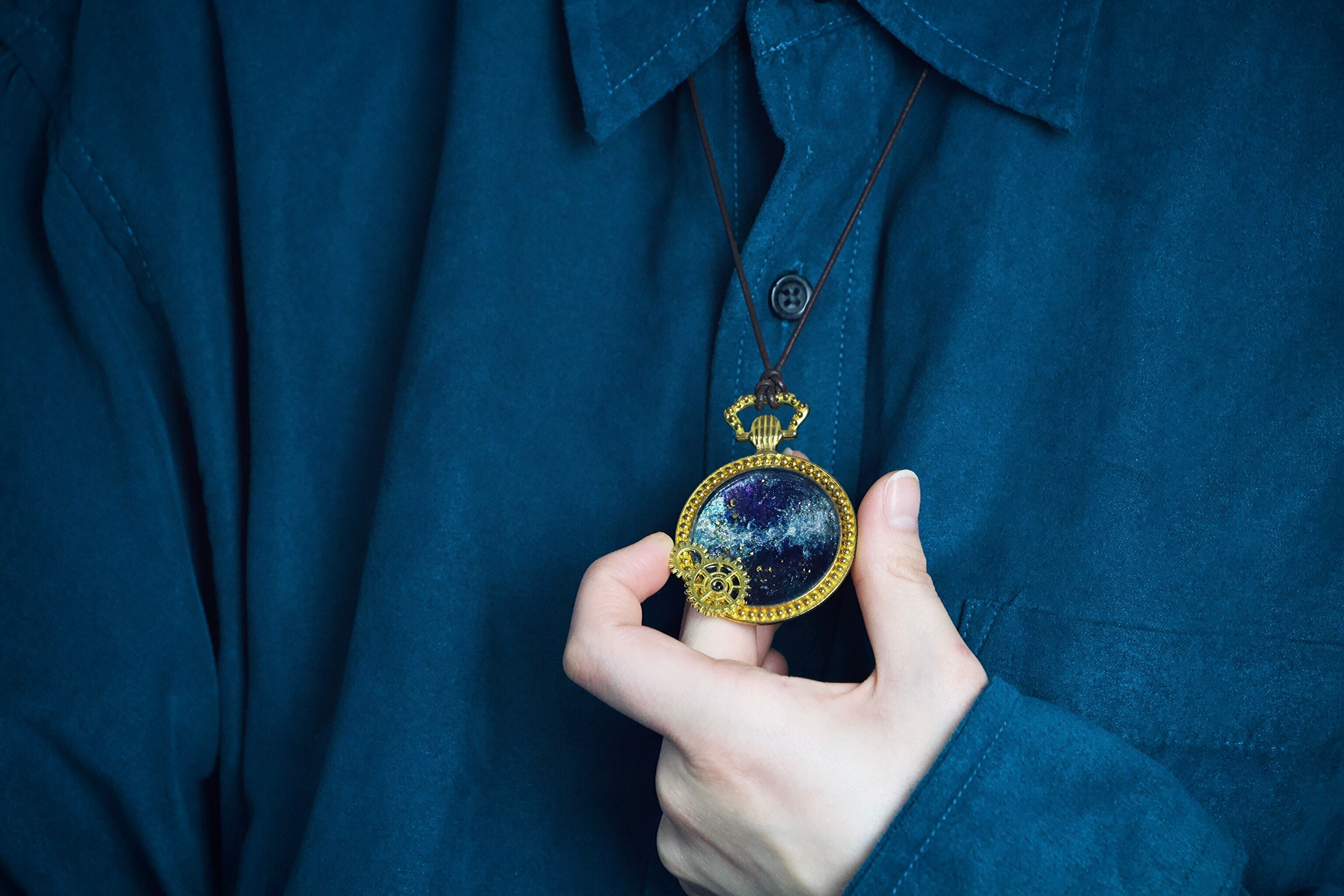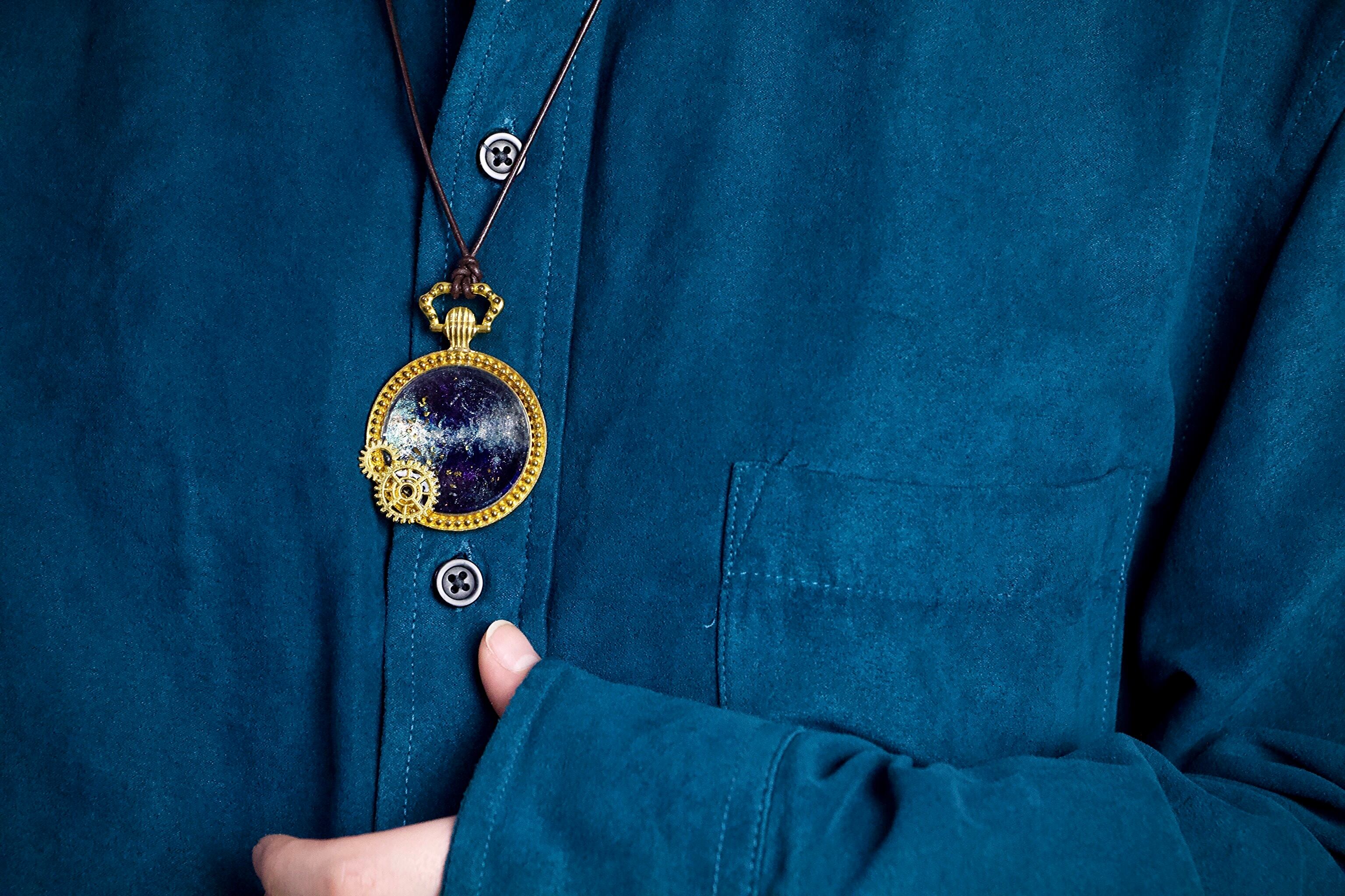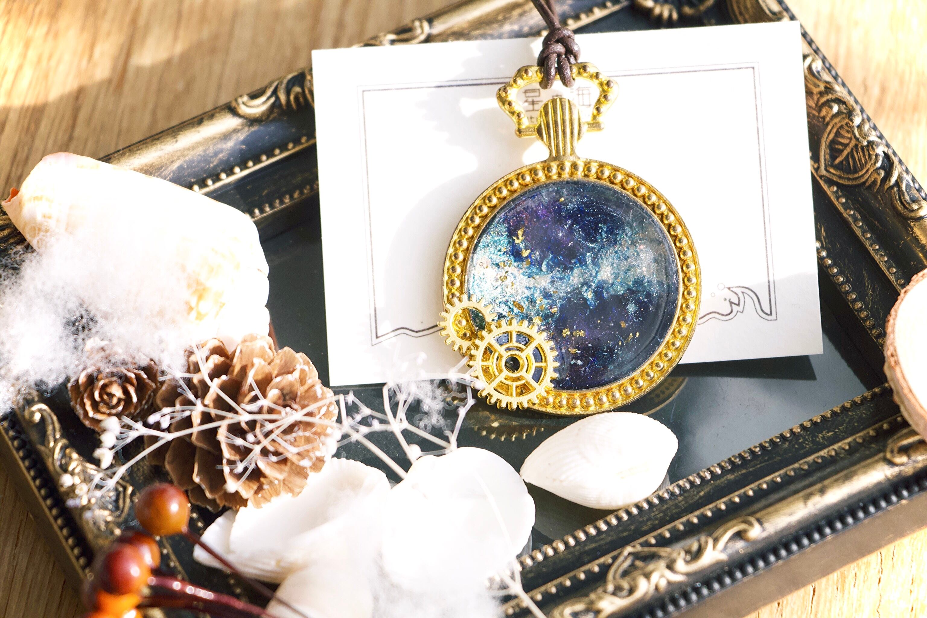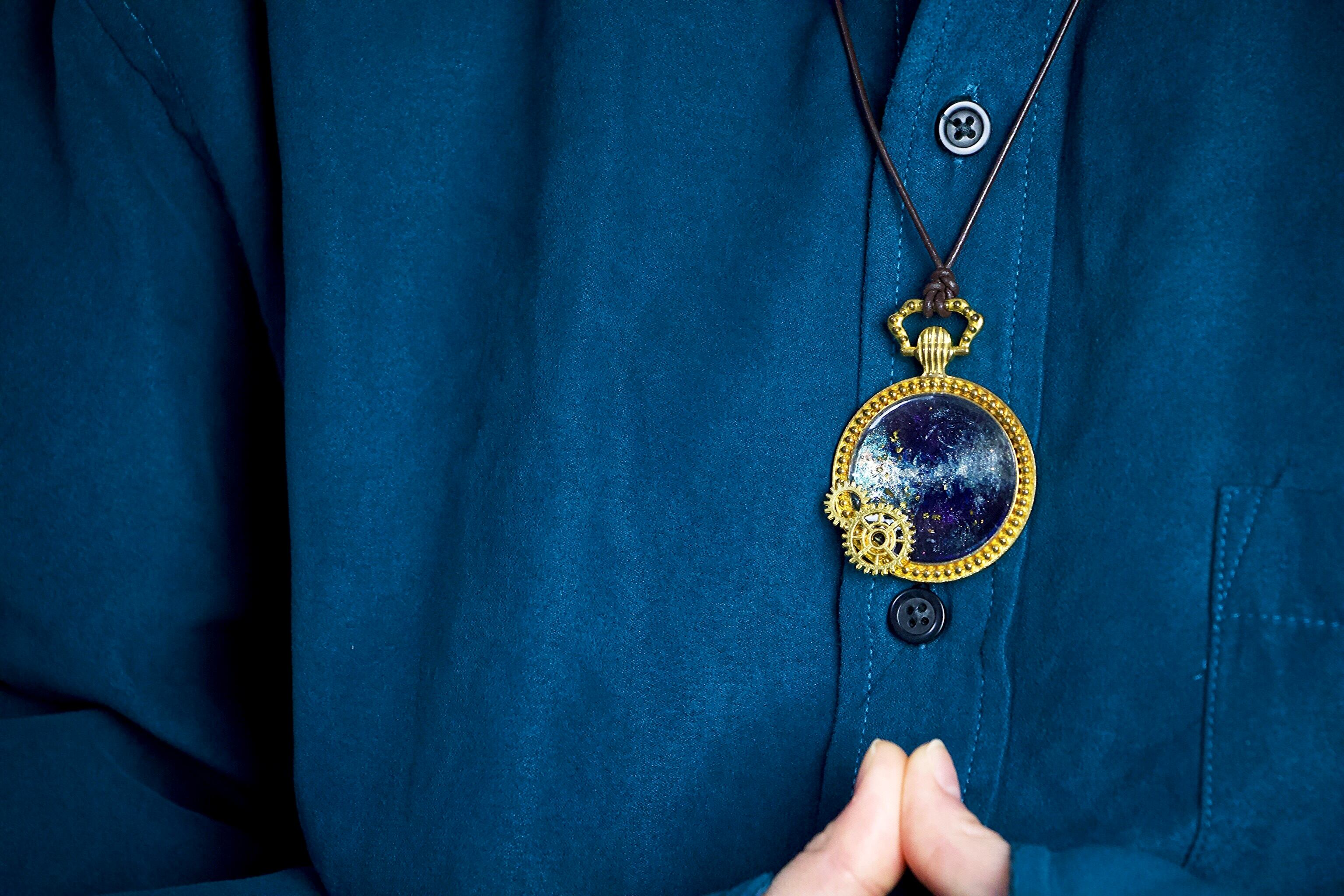 これまでのペンダント作品とは違い、新たに大きめ懐中時計デザインに挑戦!