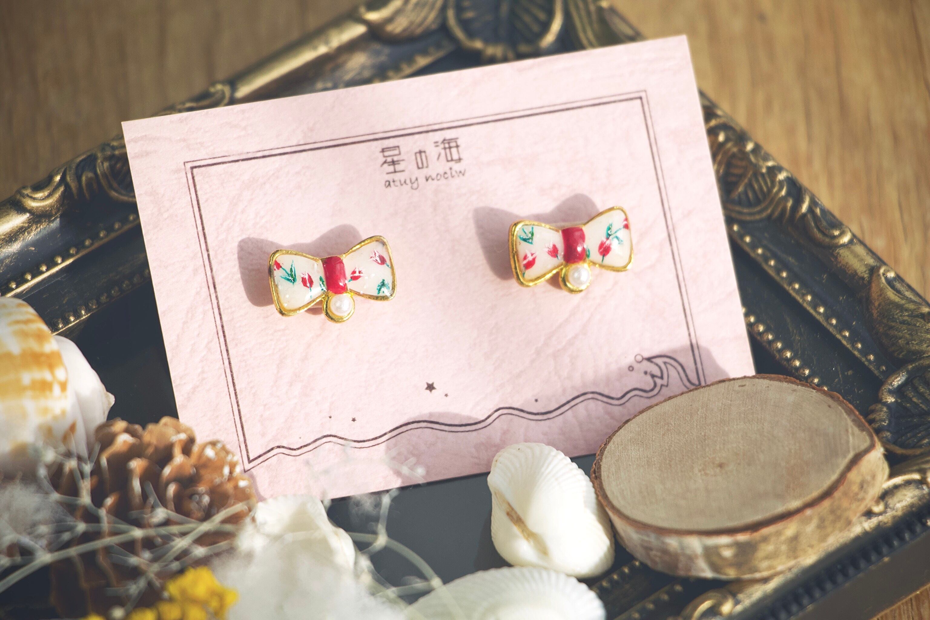 手描きチューリップをふんだんに咲かせ、珍しいリボン型に埋め込んだレア度たっっぷりのアクセサリーが新作として登場!