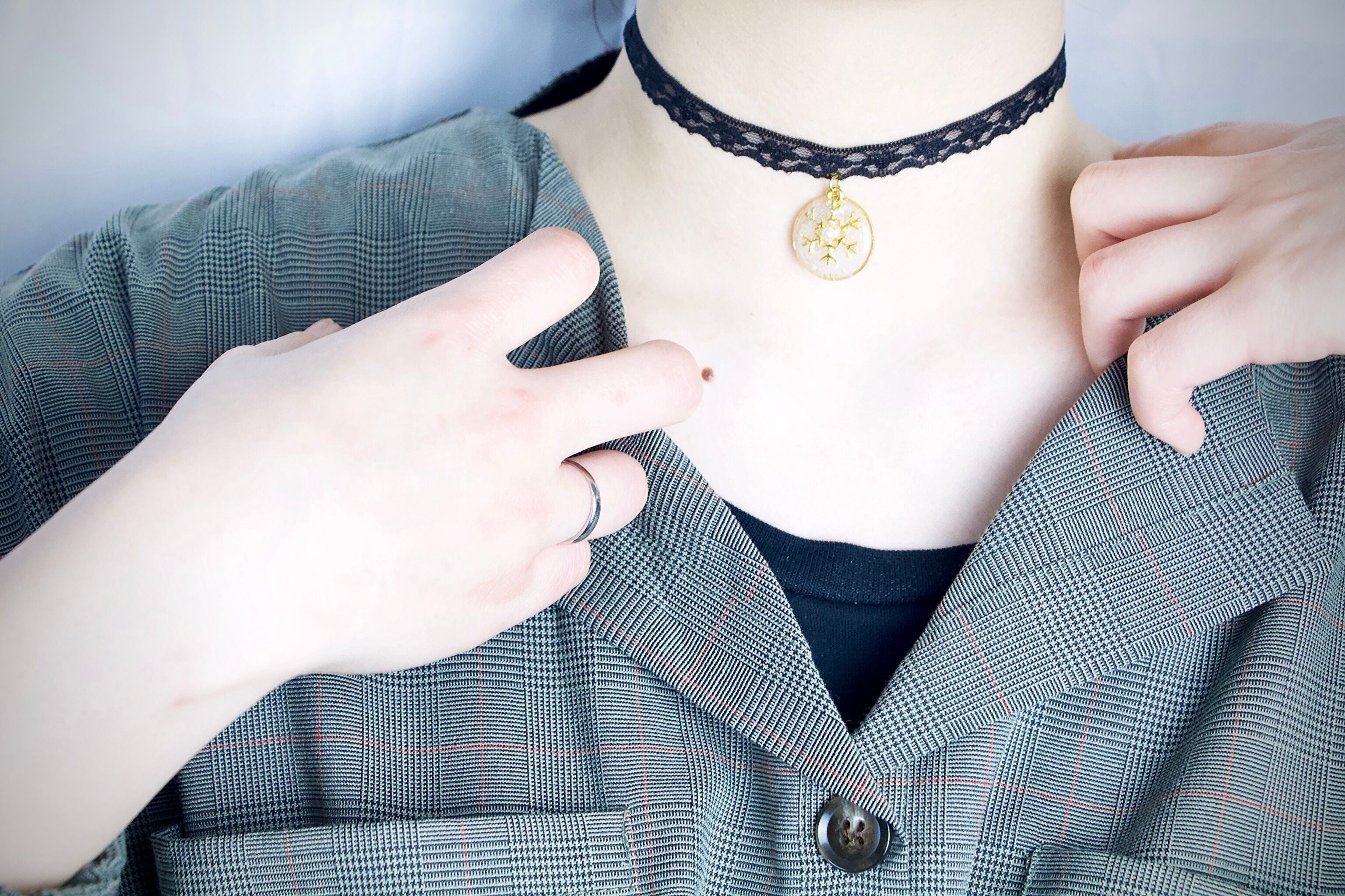 落ち着いた可愛らしさや大人っぽさのある見た目から、チョーカーに手を出しづらいなと思っている方でも挑戦しやすく普段使いできるデザインになっているんじゃないかな?と思います!
