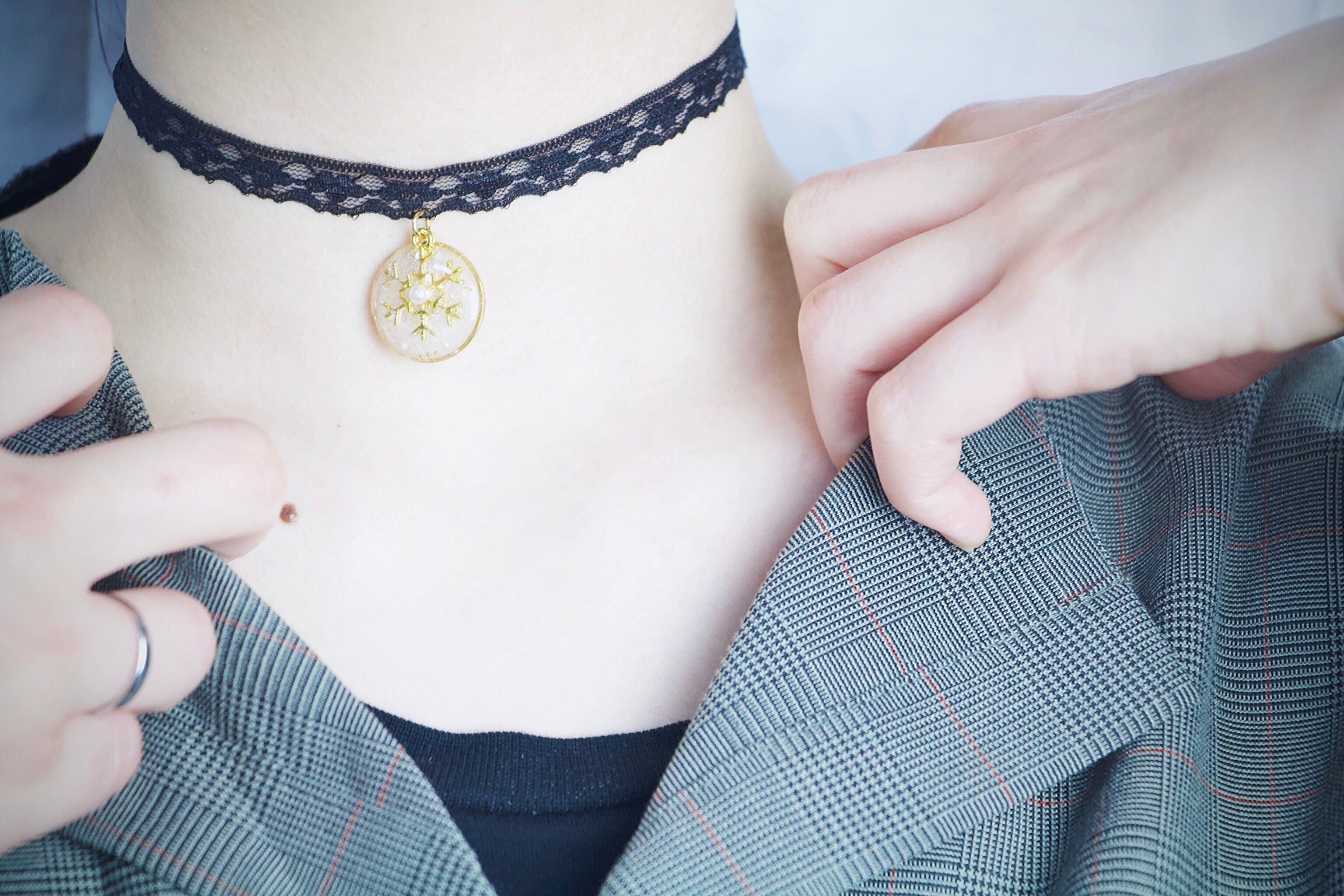 雪の結晶を大胆に使った可愛らしいチョーカーの登場です♡
