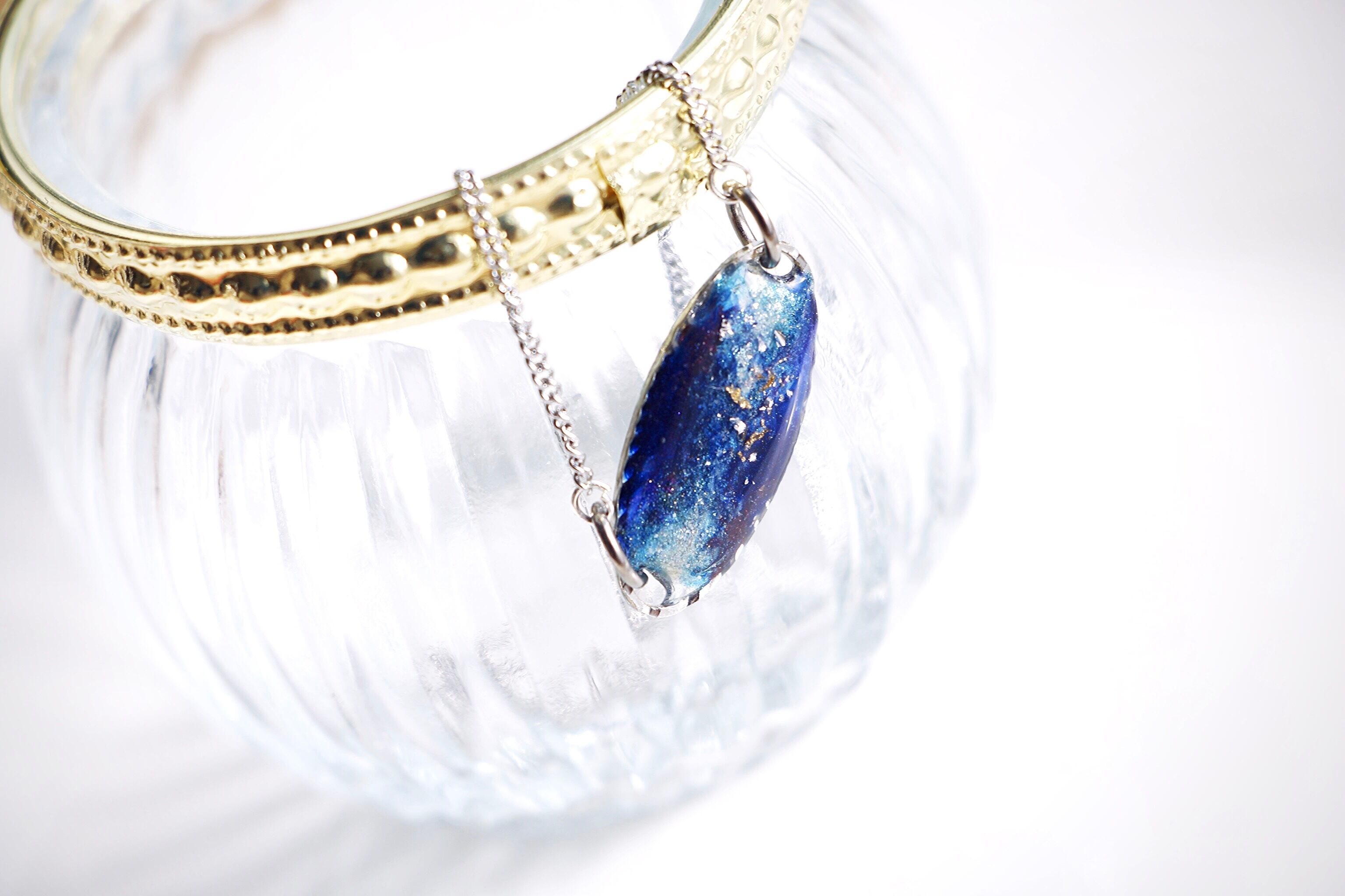 星の海初のシルバーカラーアクセサリーです!更に、こちらはチェーンなどのパーツは全て純チタン、シルバー 925、サージカルステンレス 316l を使用。枠部分は隅から隅までニス加工をしているため、金属アレルギーの方にもご使用いただけます。(該当の方はご自分のアレルギー金属を把握の上ご購入ください)