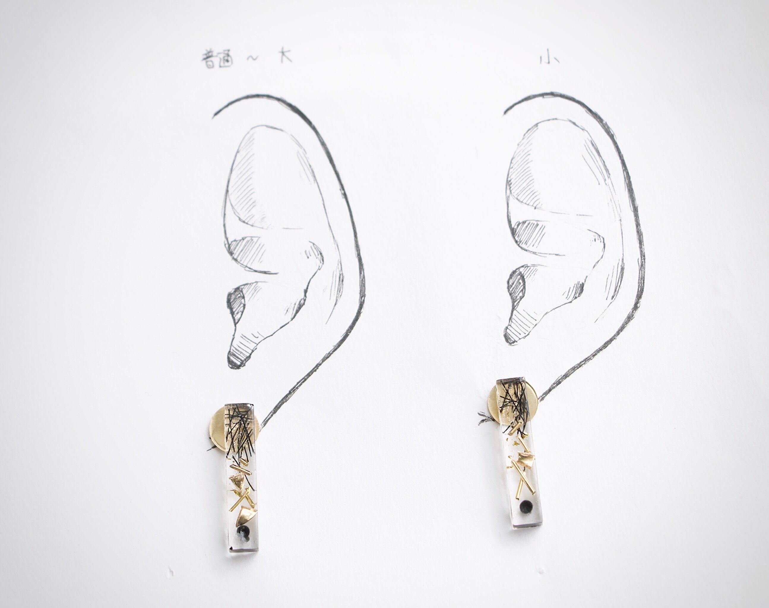 耳シートの写真ではピアスパーツをそのまま当てていますが、発送の際はゴールド部分を作品に合った大きさに調整してから付けさせていただきます。