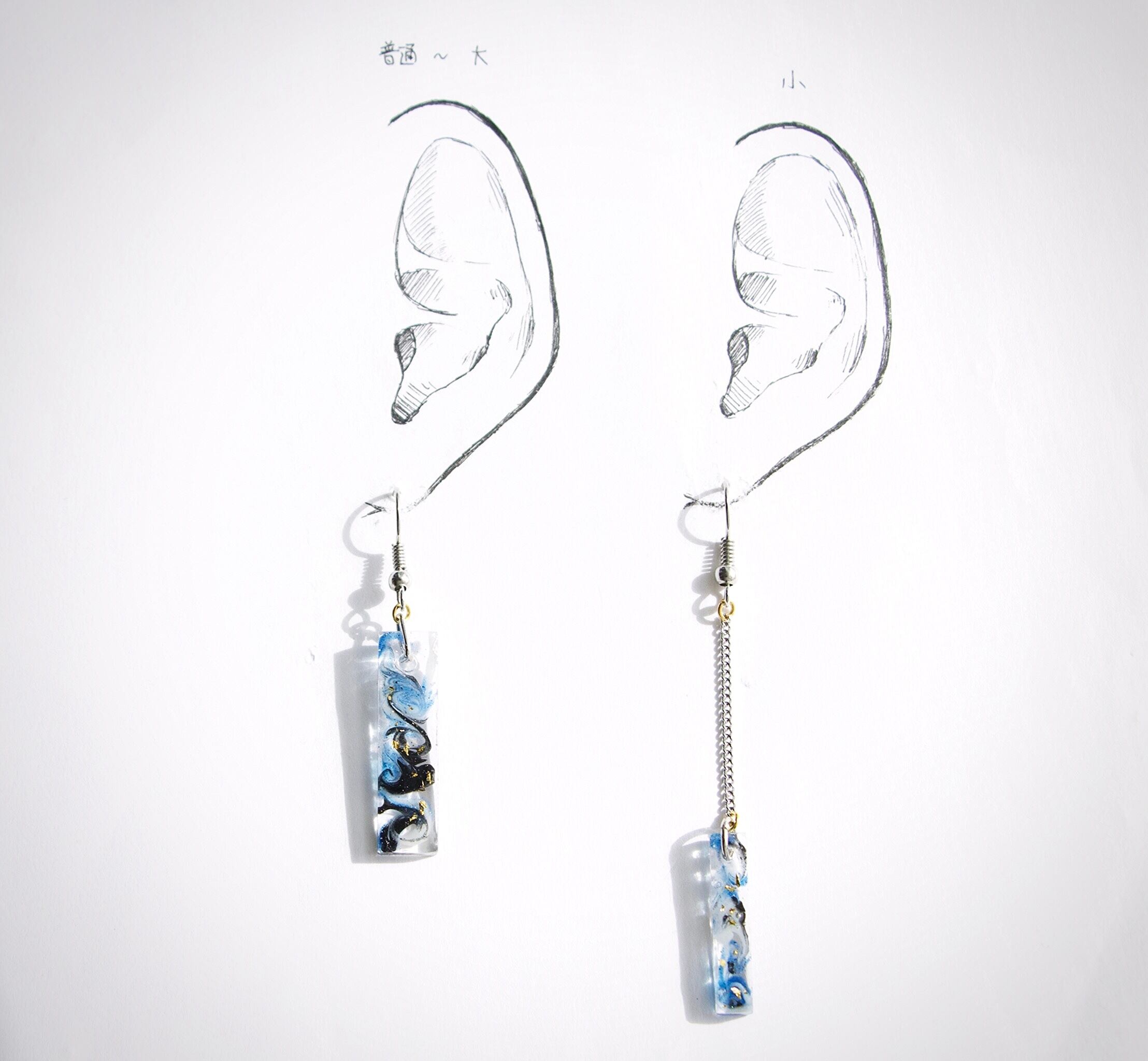 「海の底の滝」シリーズのアシンメトリーアクセサリー。
