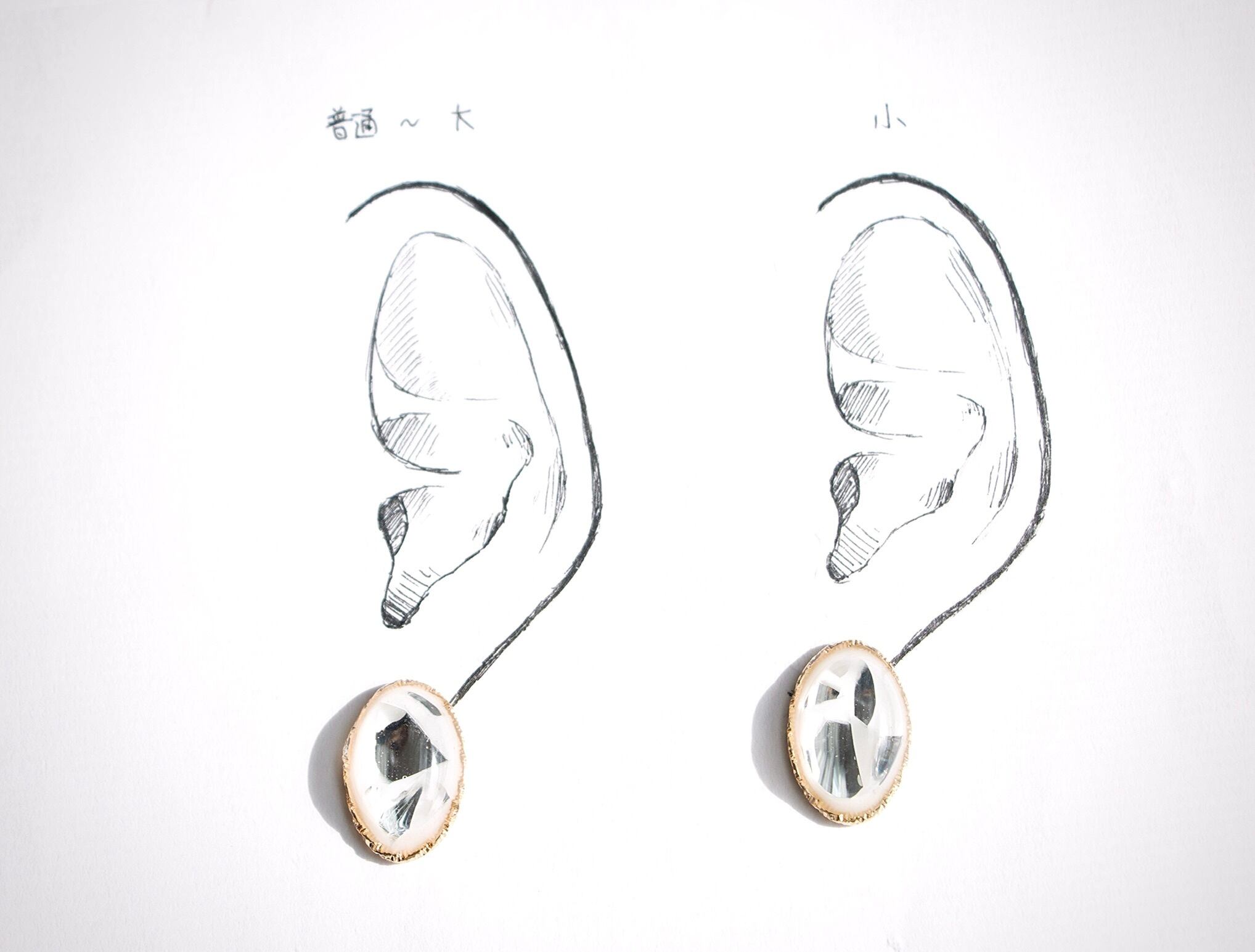 耳につけるパーツをつけていないため、台紙にはマスキングテープで留めている状態です。耳シートの左は平均的な女性の普通〜大きめの耳、右は小さめの耳のモデルとなっております。ご参照ください。