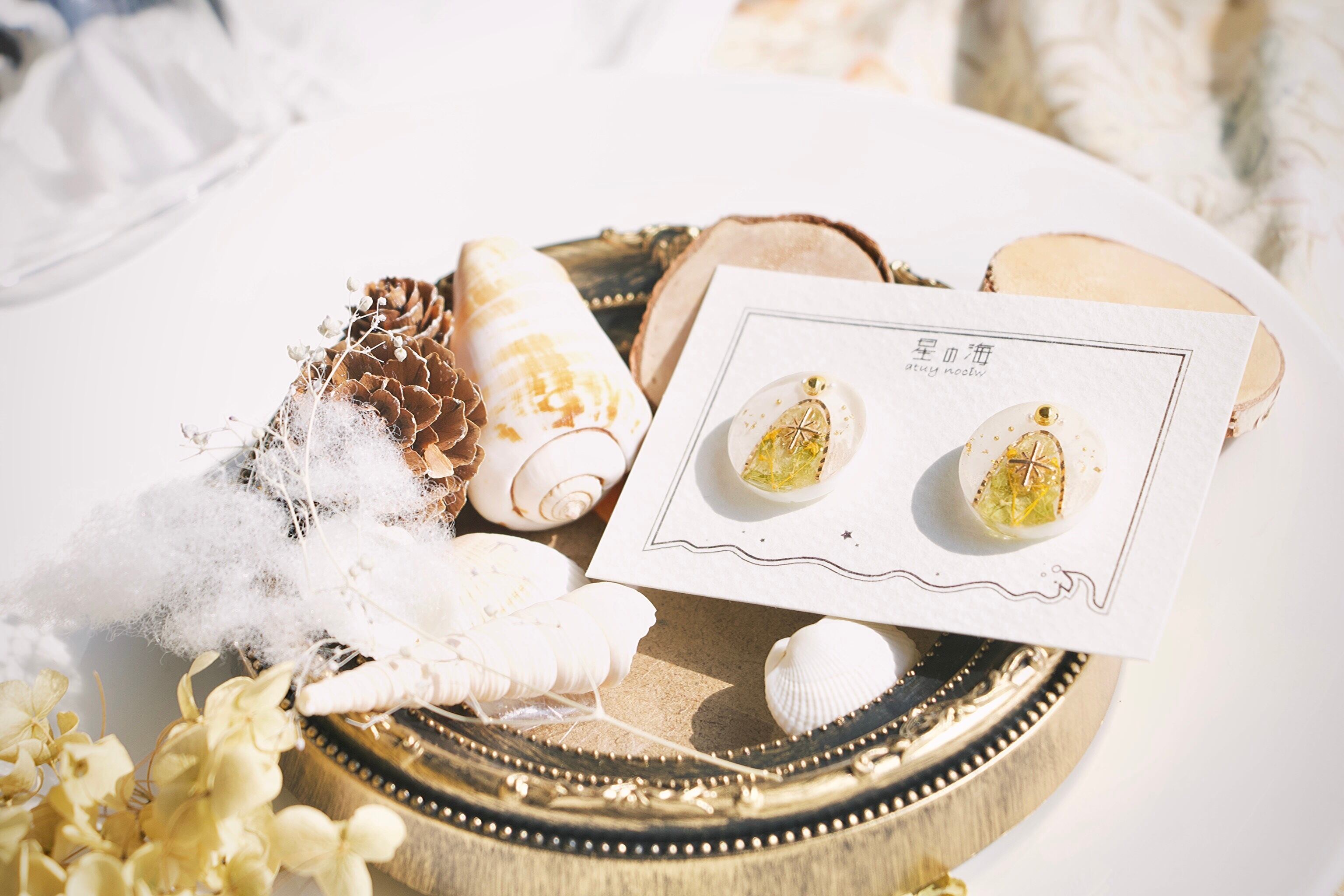 ミュシャの絵画やパネルからインスピレーションを得た、柔らかく統一性のある綺麗さを表現したアクセサリーです。白とゴールドを中心としたナチュラルカラーでまとめ上げ、少し尖りのある洗練されたデザインをその手に…