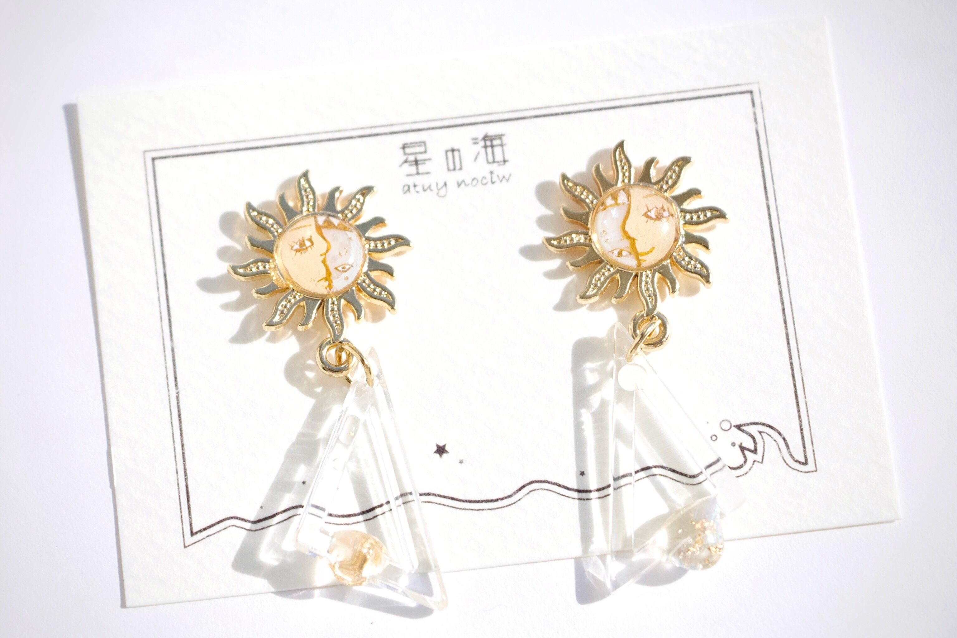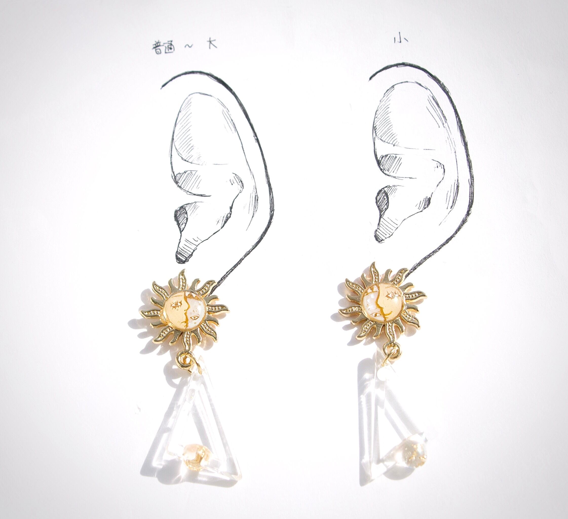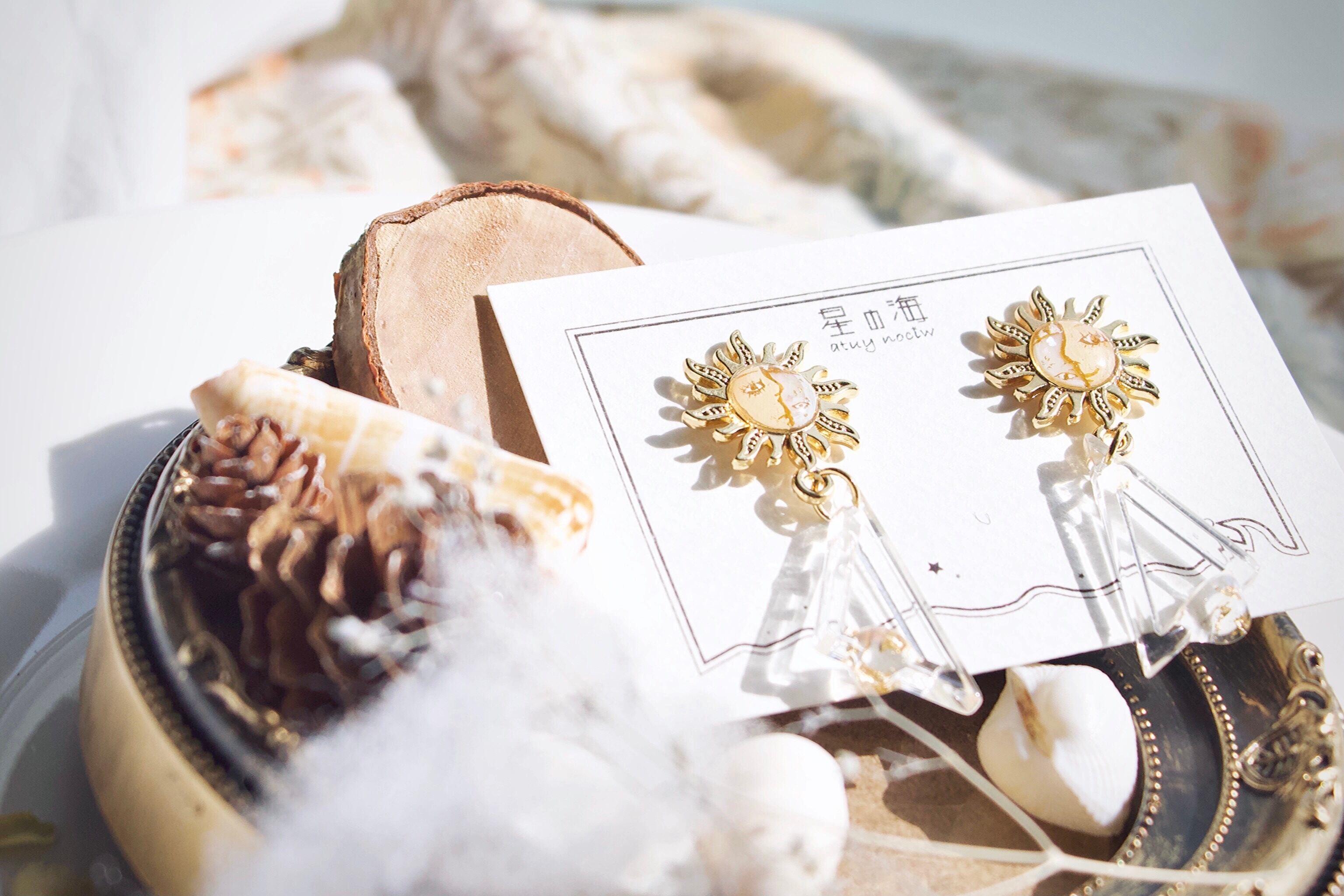 ヨーロッパの絵本のような、どこかタロットや宗教ちっくな手描きの太陽と月をあしらった柔らかい雰囲気のアクセサリーです。カジュアルコーデからエスニックファッションまで様々な楽しみ方をお届け。