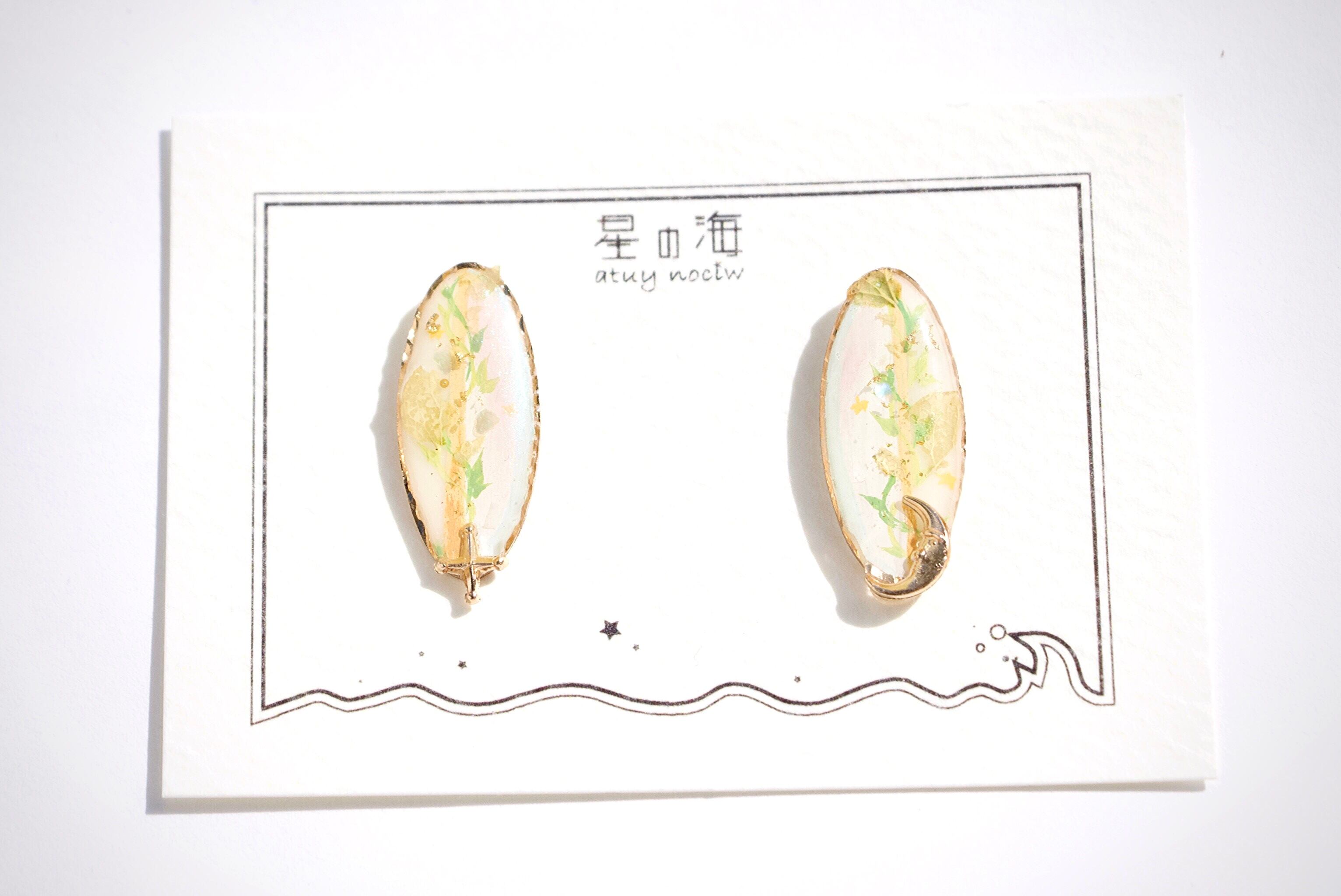 今回入荷した「太陽と月」「美しい曲線」の2シリーズを合わせたオーバルイヤーアクセサリー。