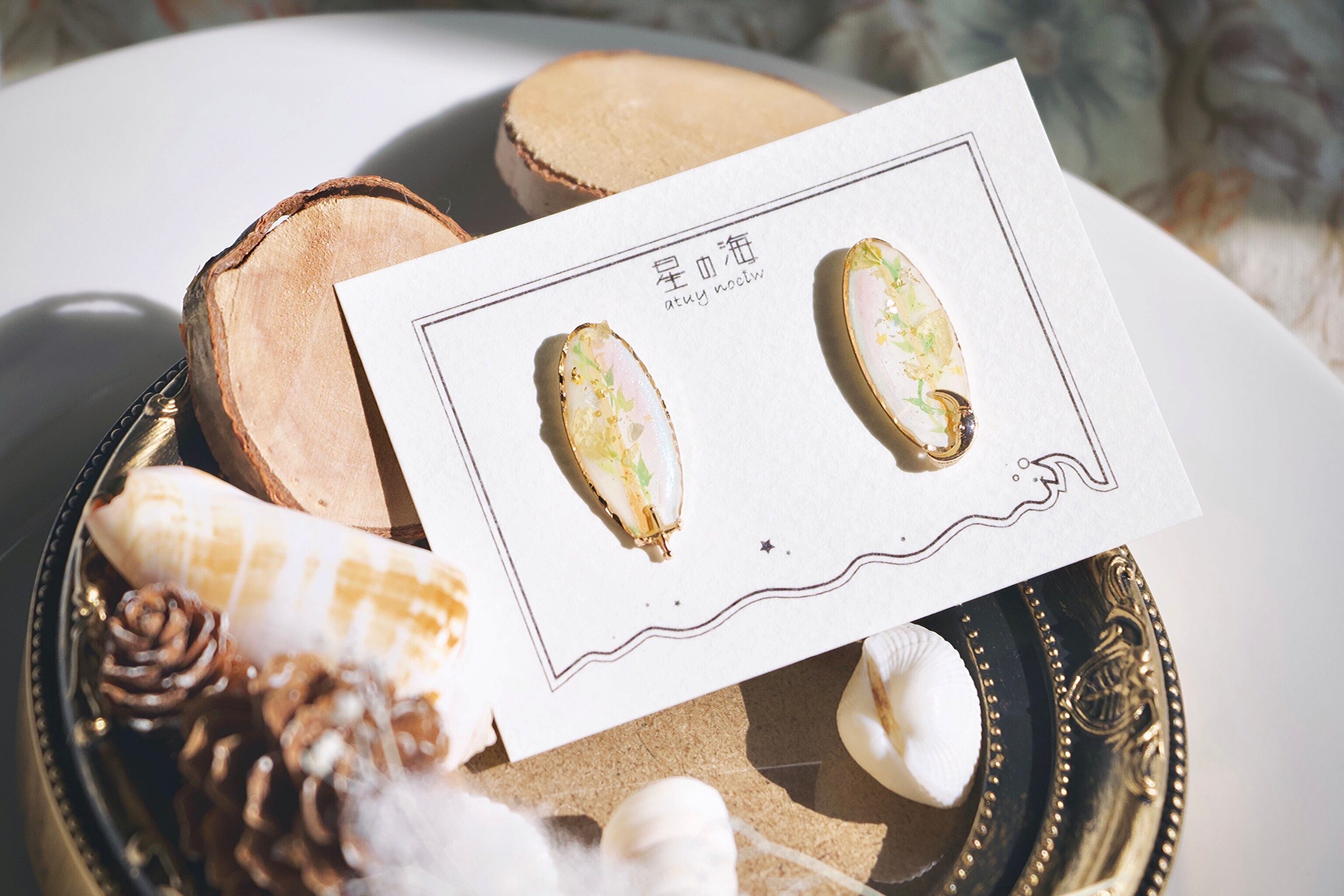 ヨーロッパの絵本のような、どこかタロットや宗教ちっくな手描きの太陽と月をあしらった柔らかい雰囲気のアクセサリーです。カジュアルコーデからエスニックファッションまで様々な楽しみ方をお届け。