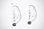 耳につけるパーツをつけていないため、台紙にはマスキングテープで留めている状態です。耳シートの左は平均的な女性の普通〜大きめの耳、右は小さめの耳のモデルとなっております。ご参照ください。