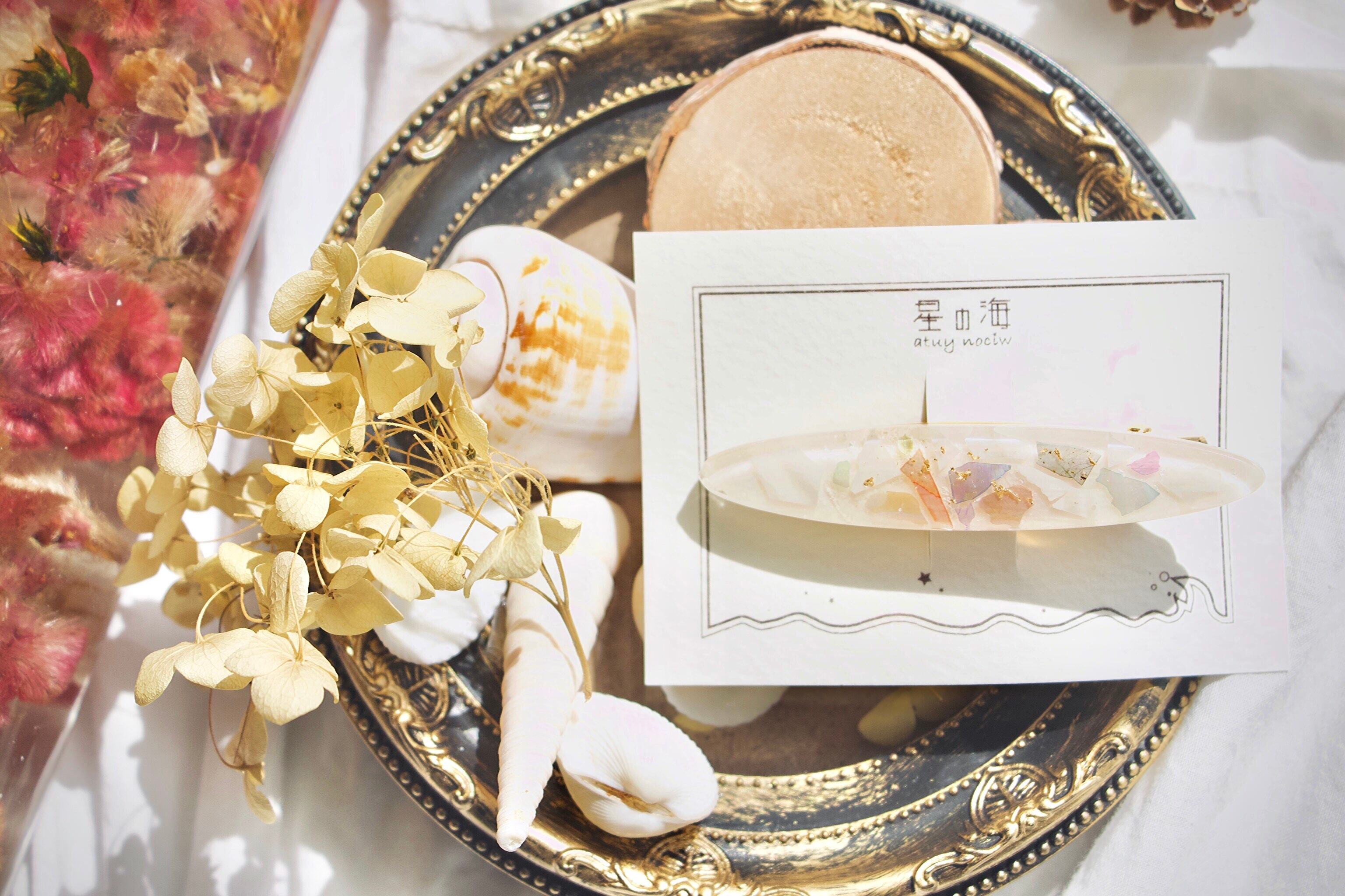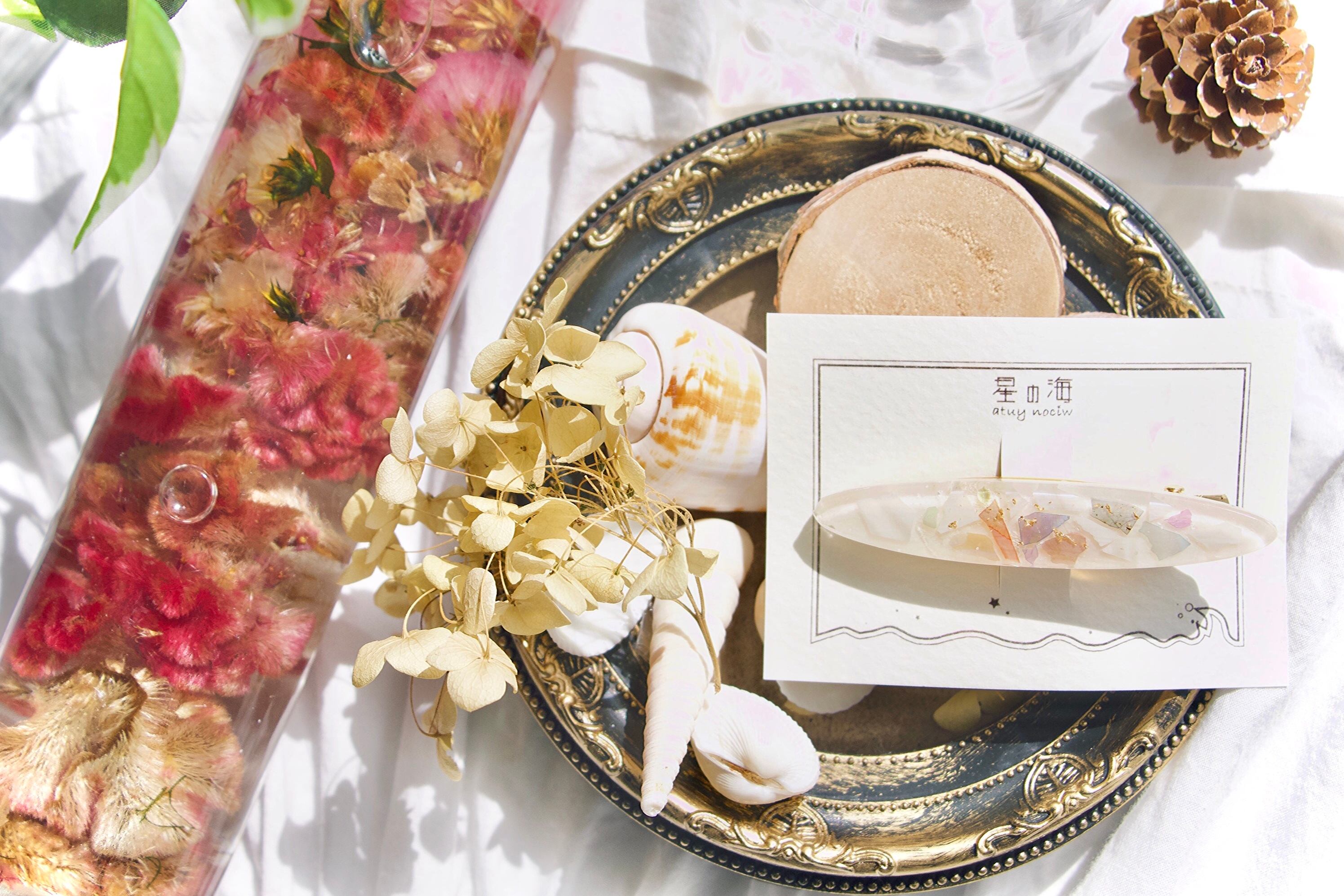 敷き詰めたシェルがまるでタイルや絵画のようで、まとまりがあり美しい雰囲気を髪の毛にもたらしてくれます♡