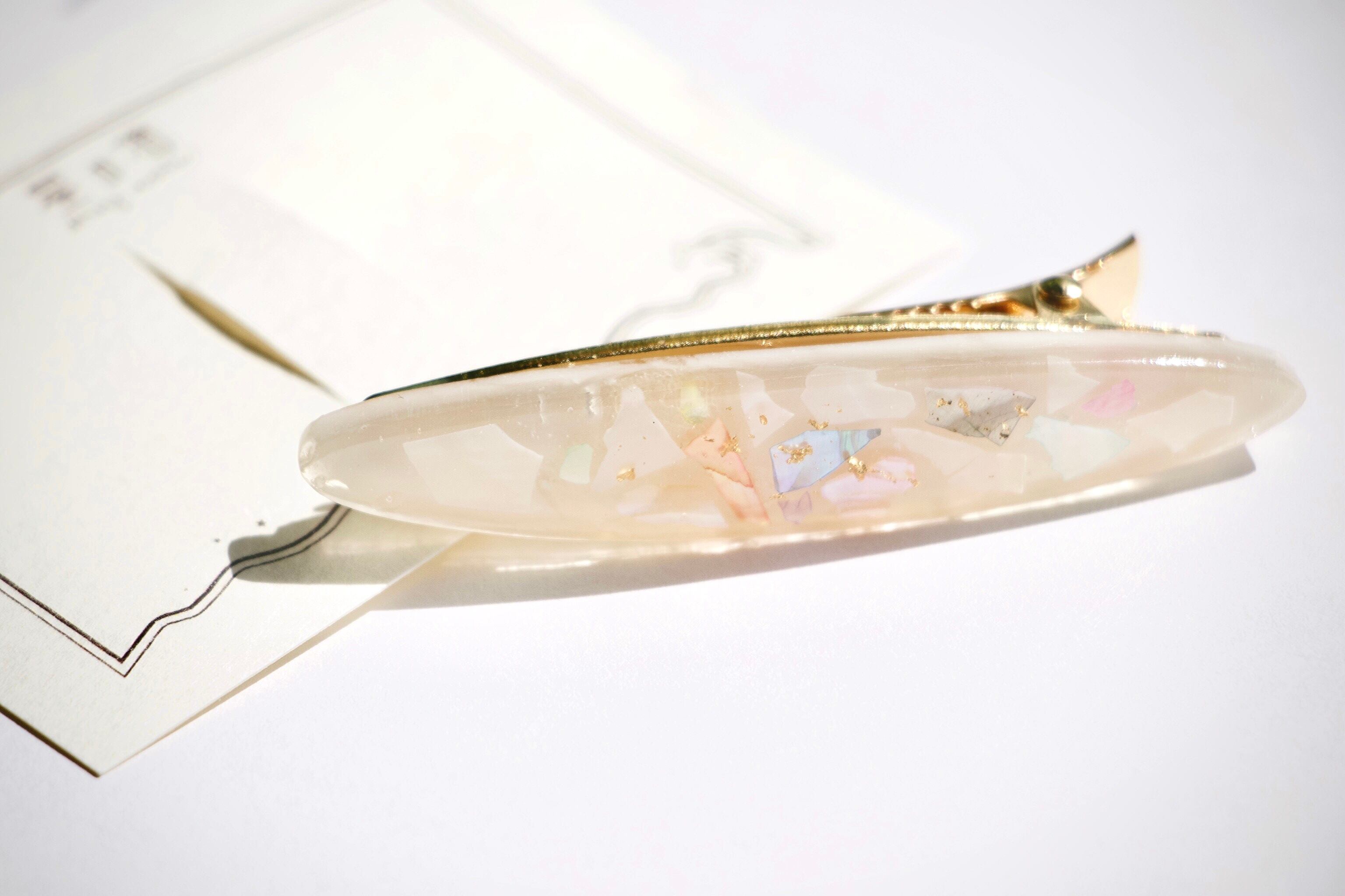 プレゼント ギフト 女性 彼女 フレークシェル キラキラ 色が変わる 偏光 虹色 オーバル ホワイトコーデ パステルカラー 春 アクセサリー ピアス かわいい 可愛い 新社会人 頑張れ きれいめファッション カラフル ハンドメイド クリップ ヘアクリップ ヘアアクセサリー オフィスアクセサリー 会社内 控えめ シンプル