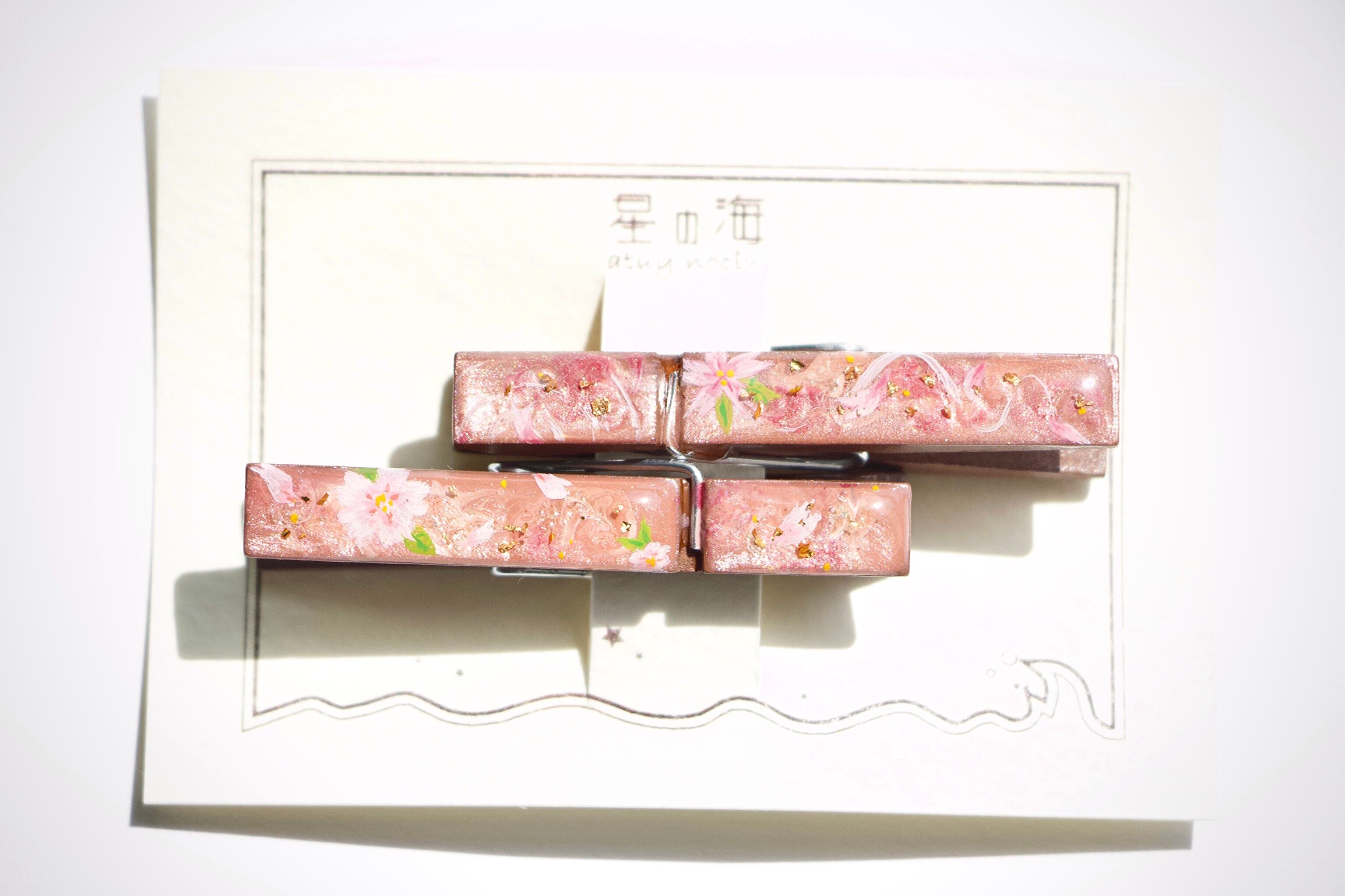 桜 アクセサリー パステルカラー ハンドメイド さくら kawaii キラキラ パール シェル 色が変わる 個性的 かわいい 可愛い プレゼント ギフト 春 女性 彼女 文房具 クリップ 手描き ネイル 和風 オフィスグッズ 仕事 気分を上げる アイテム
