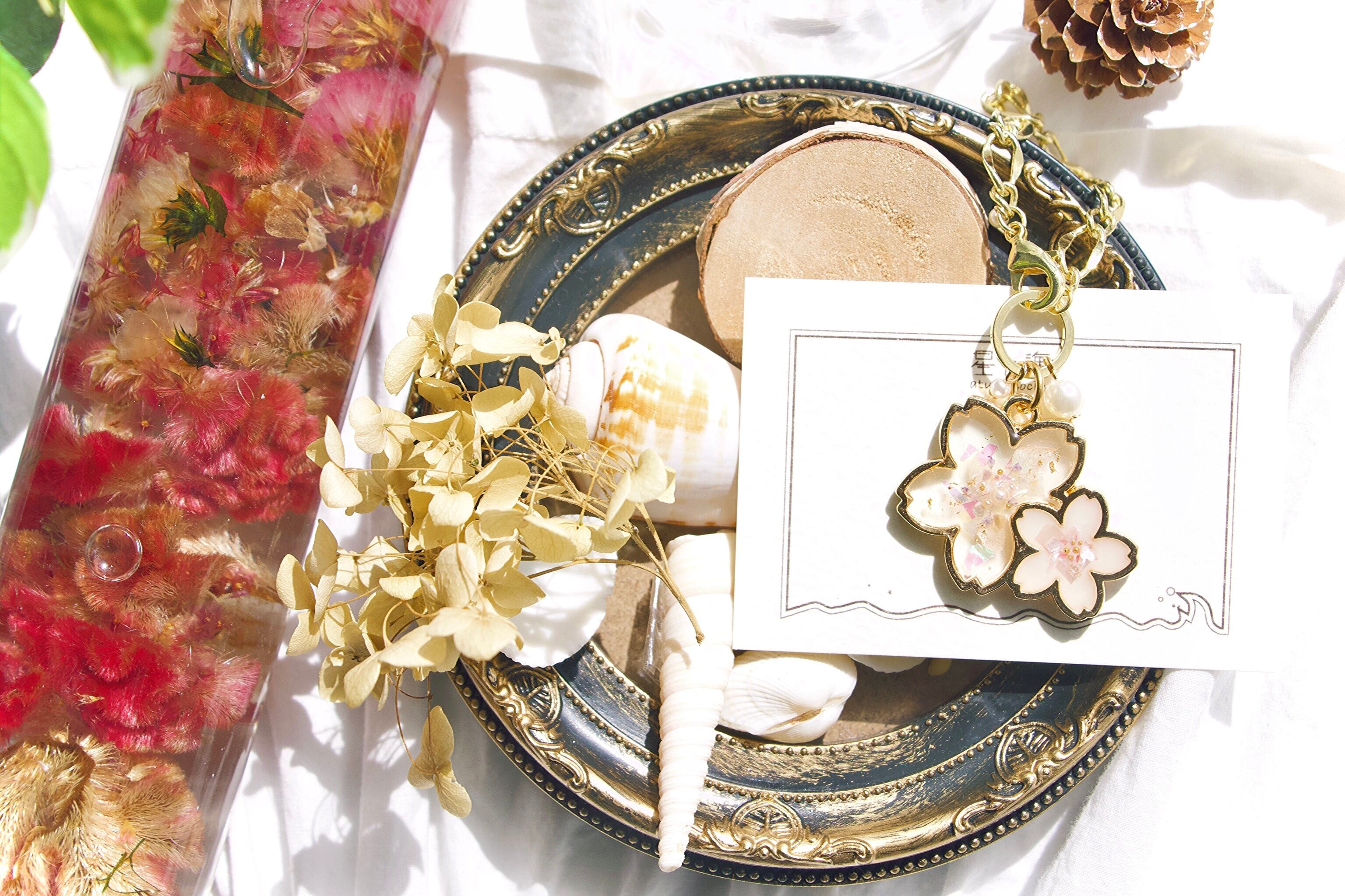 桜 アクセサリー パステルカラー ハンドメイド ドライフラワー 紫陽花 かすみ草 さくら kawaii キラキラ パール シェル 色が変わる 個性的 かわいい 可愛い プレゼント ギフト 春 女性 彼女 バッグチャーム マット カードキャプターさくら 春らしい