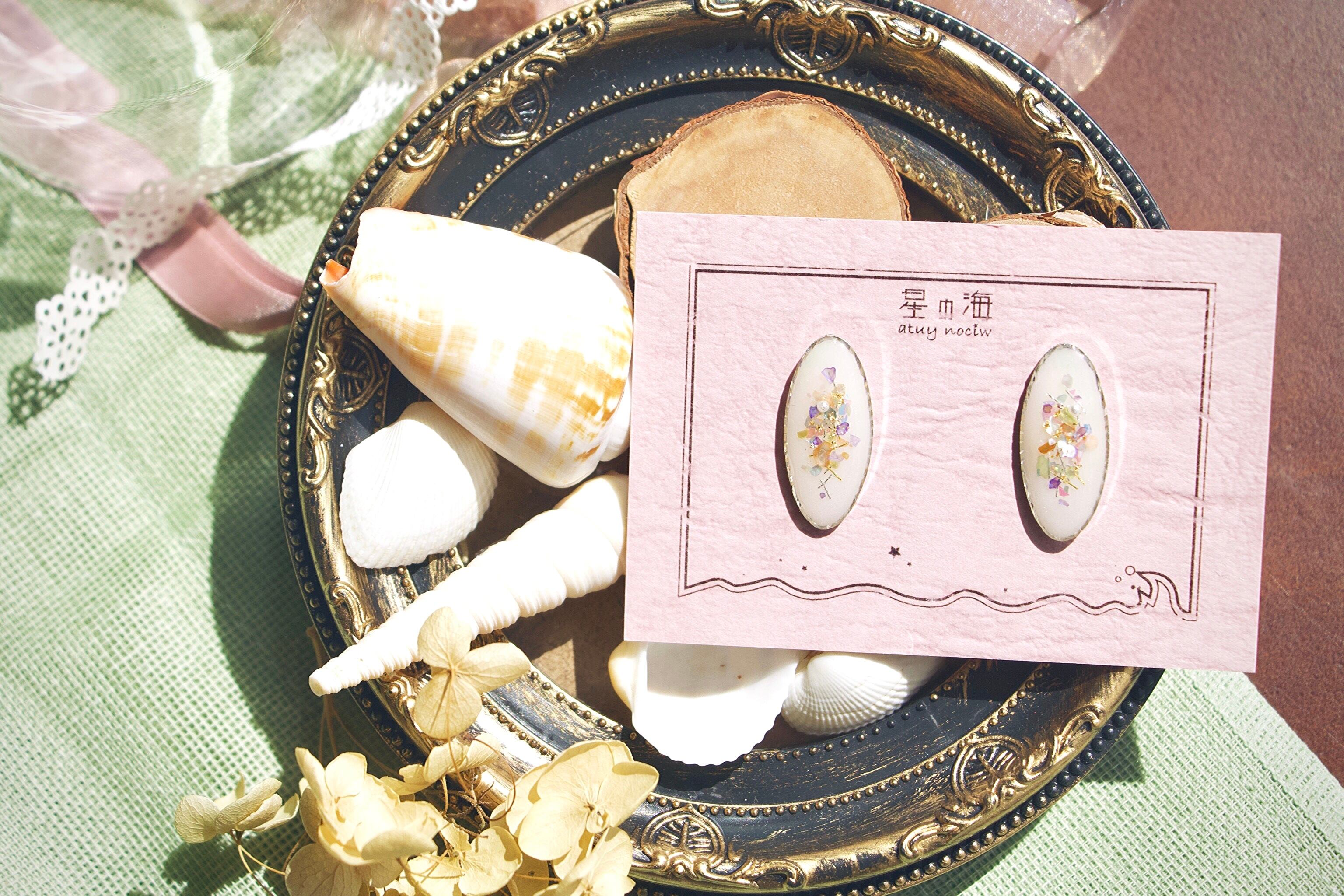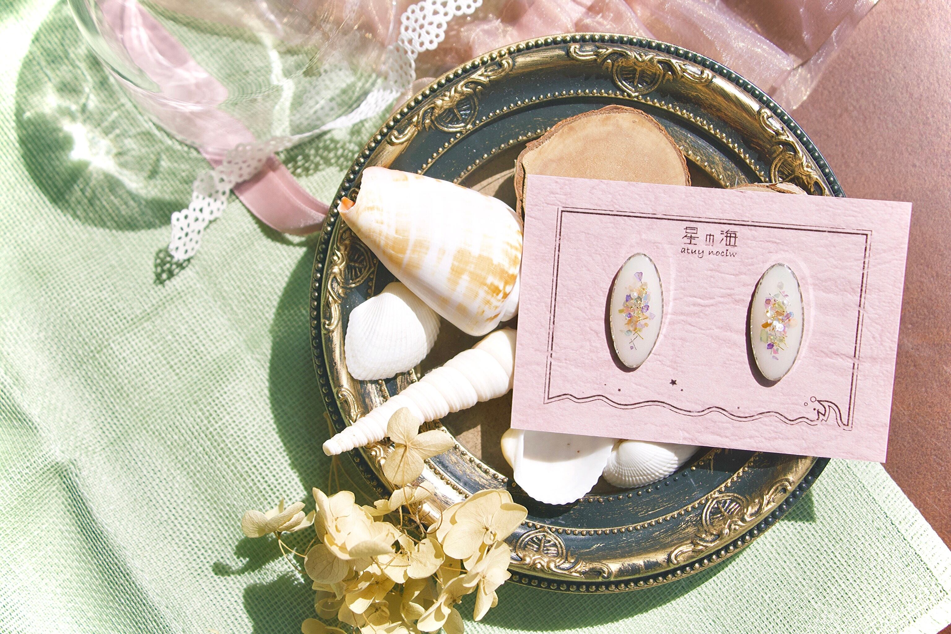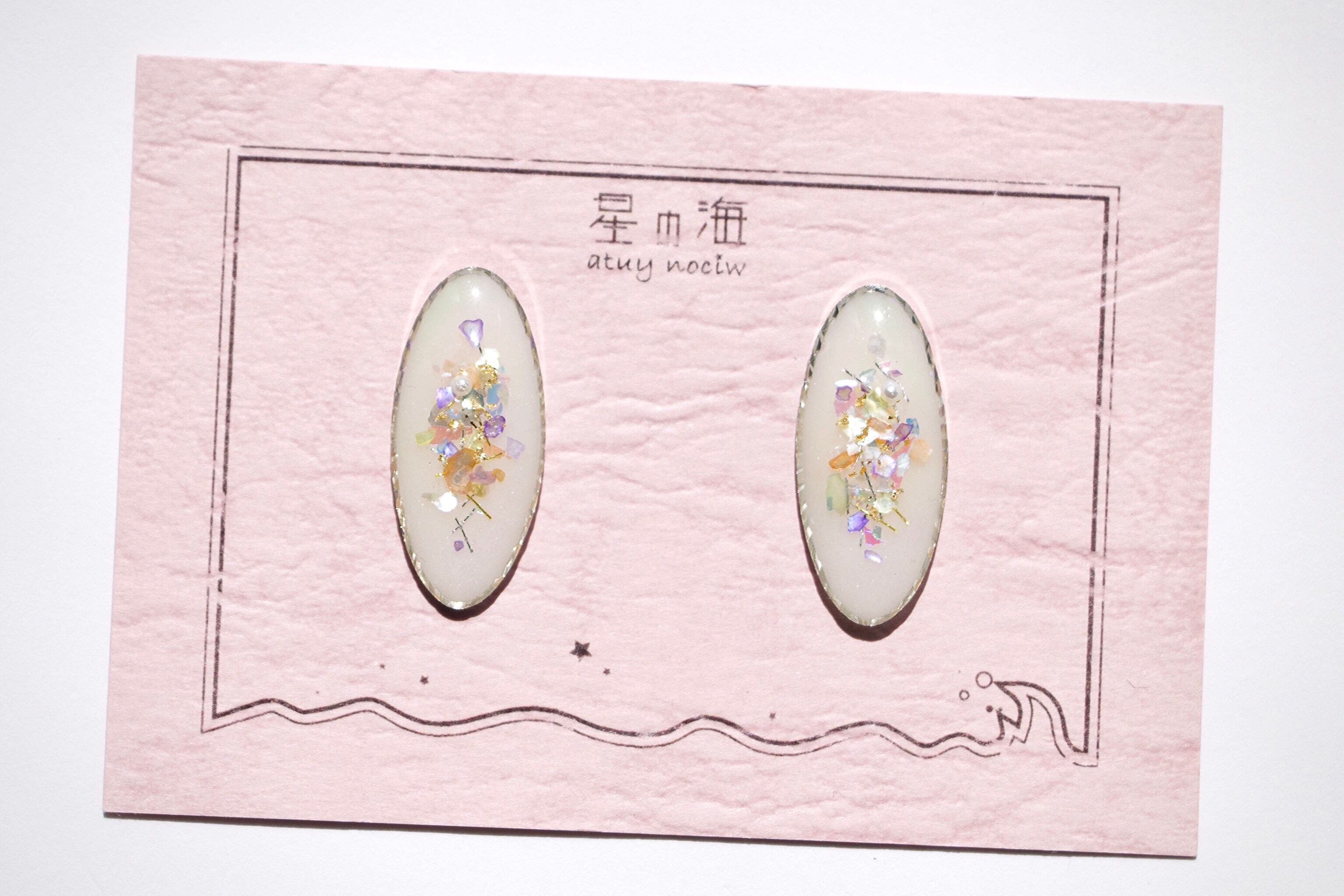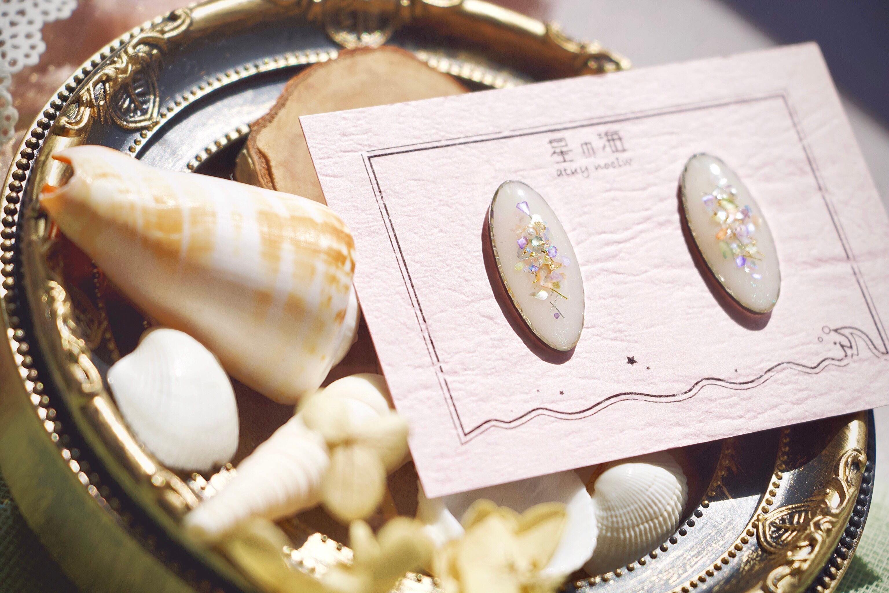 ハンドメイド ピアス イヤリング ノンホールピアス 人魚姫 童話 マーメイド プリンセス カラフル 青系 パール 色が変わる キラキラ シルバー フェミニン 大人っぽい 韓国風 シェル 紫 パステルカラー kawaii ときめく アクセサリー