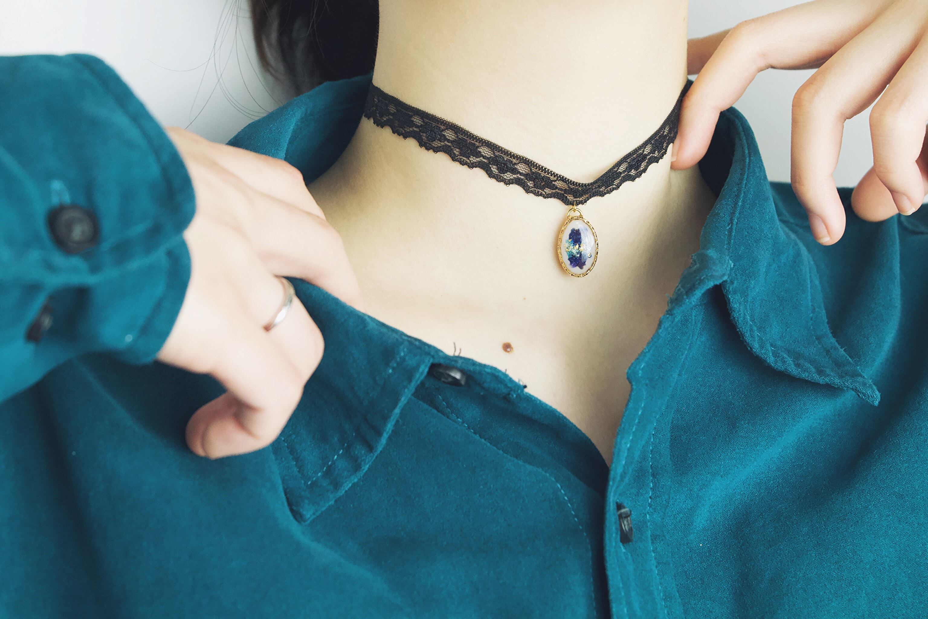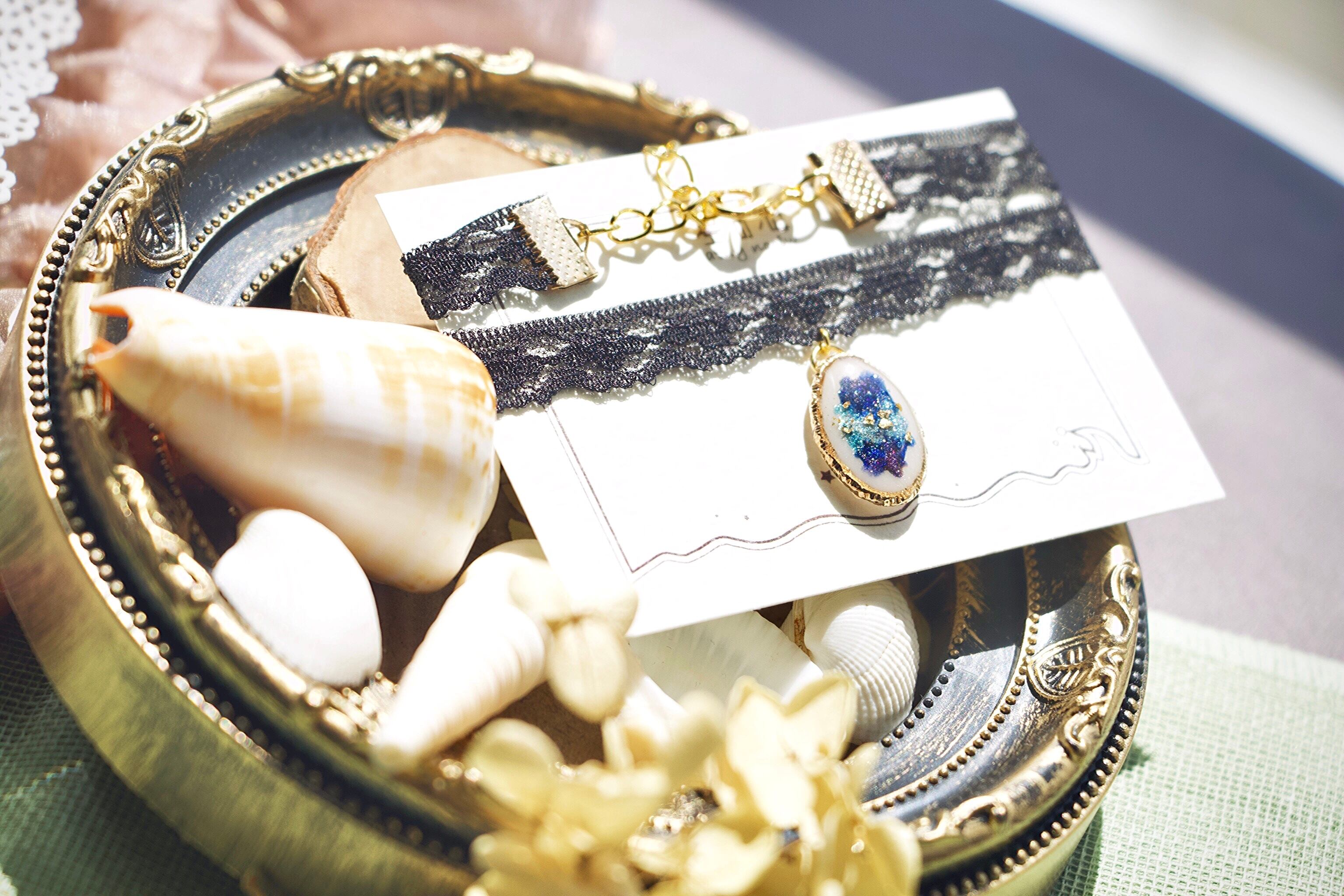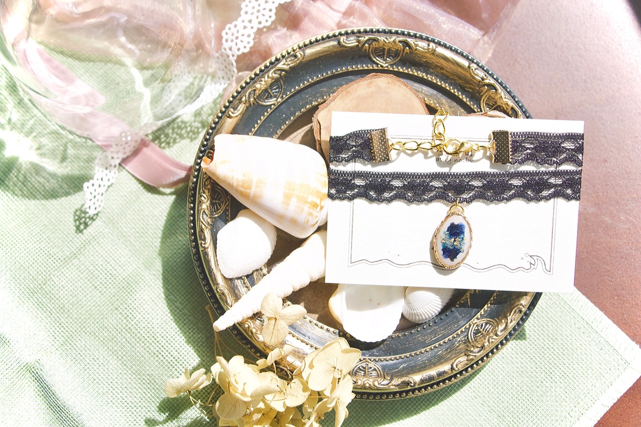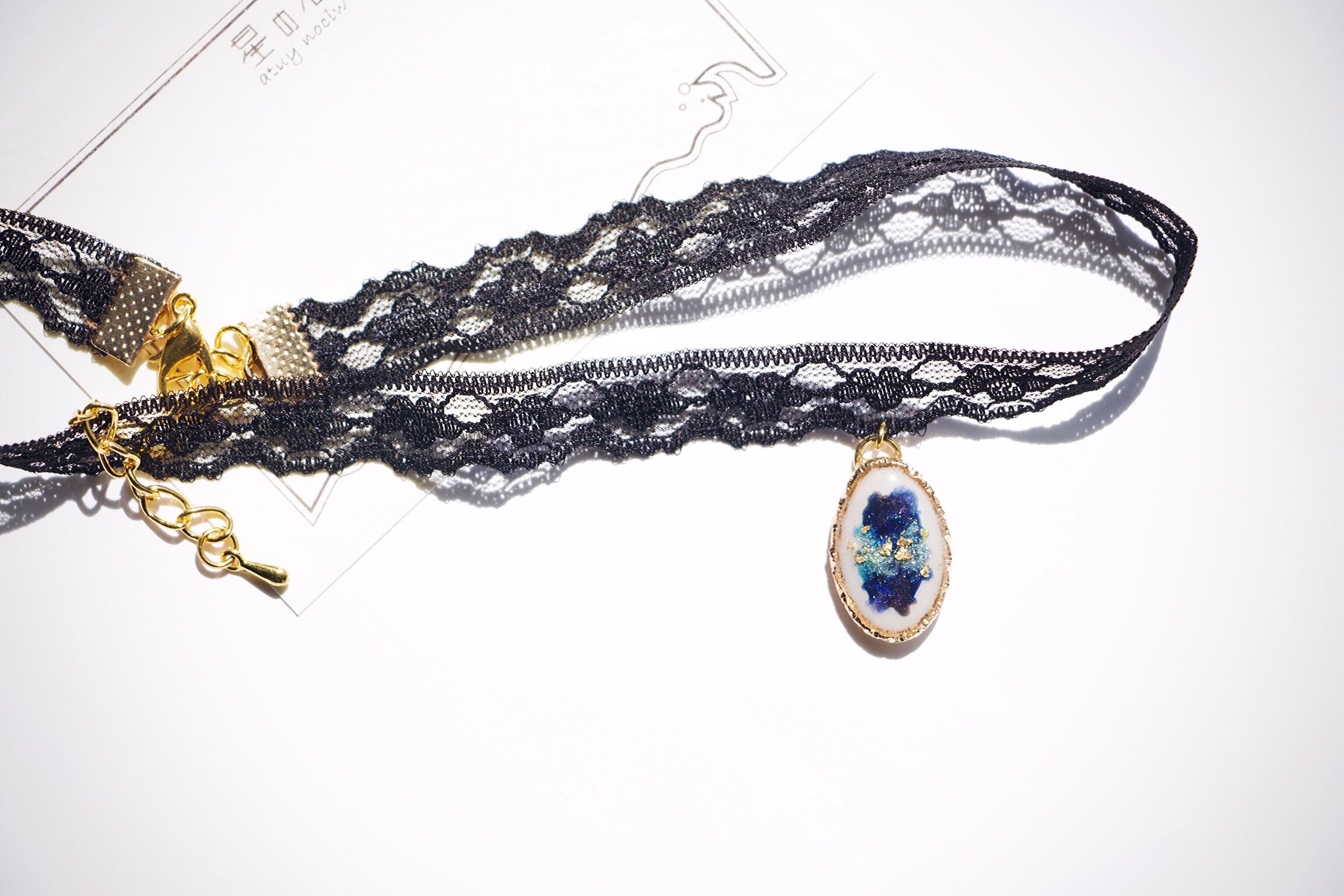 ハンドメイド チョーカー レース ネックレス 可愛い kawaii 宇宙 塗り きれいめ ブラック ファッション コーデ シンプル フェミニン 量産型 ゴスロリ ゴールド ピンク 地雷系