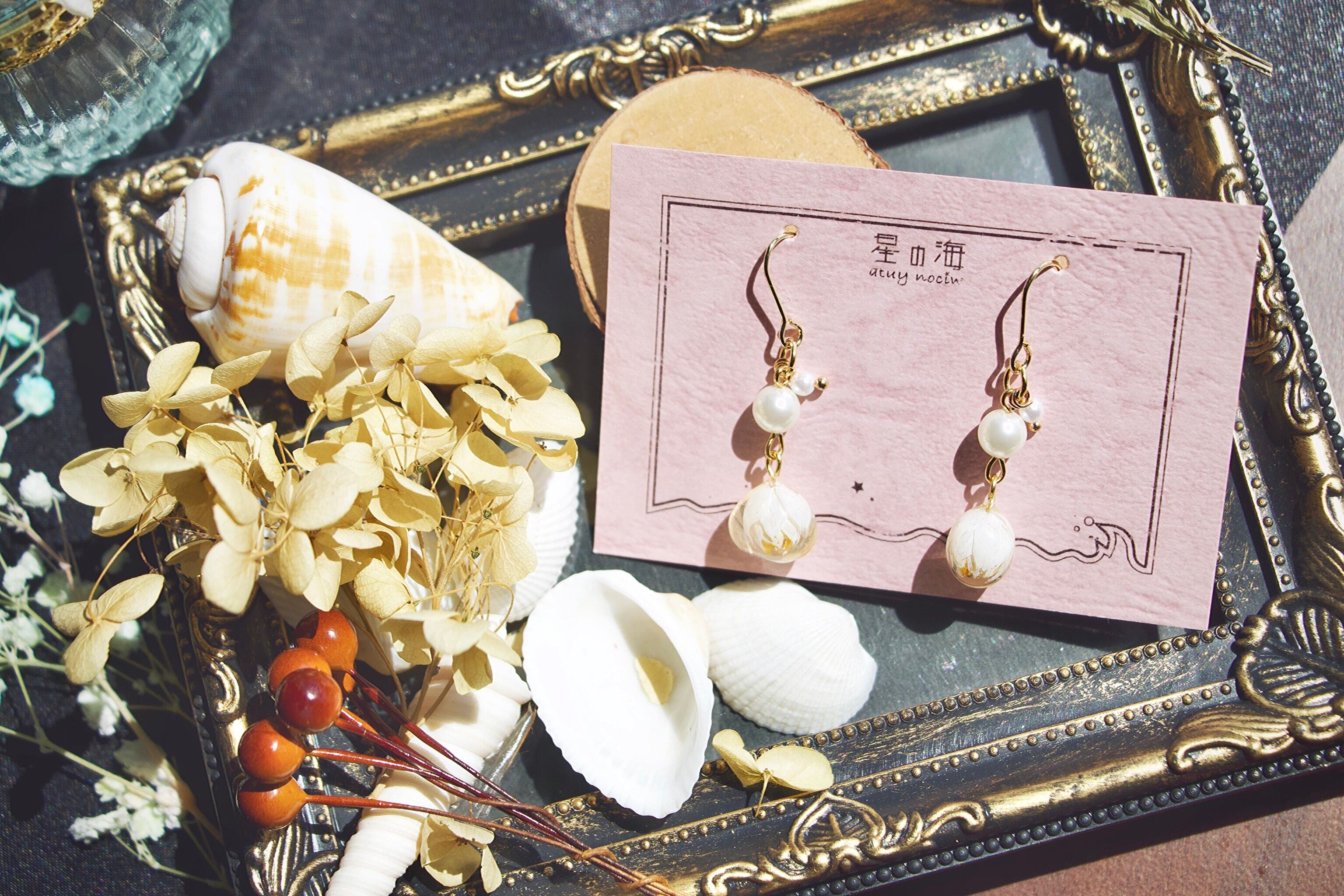 パールの露 特別価格 (手描き 立体 花 パール ピアス イヤリング)