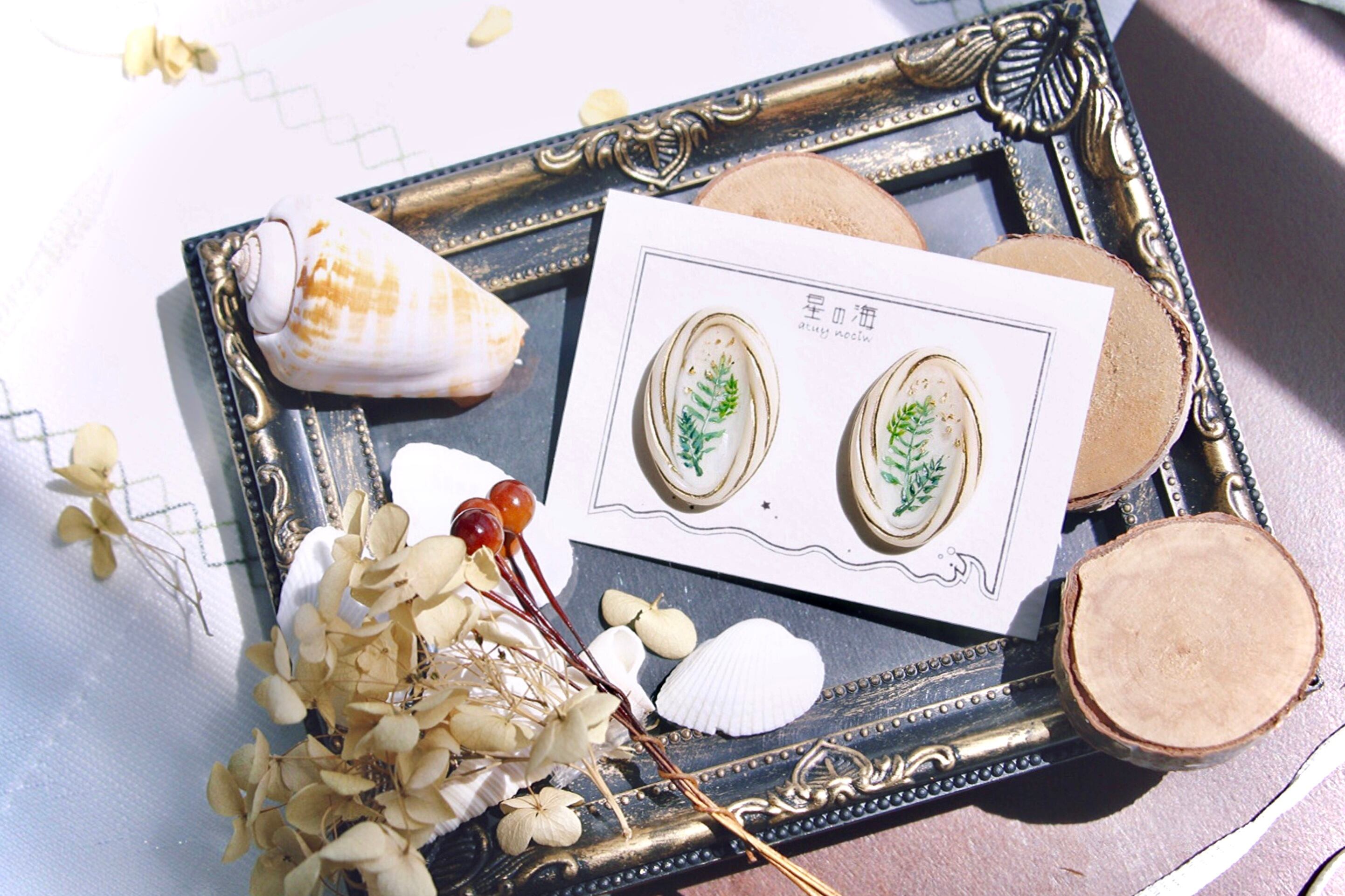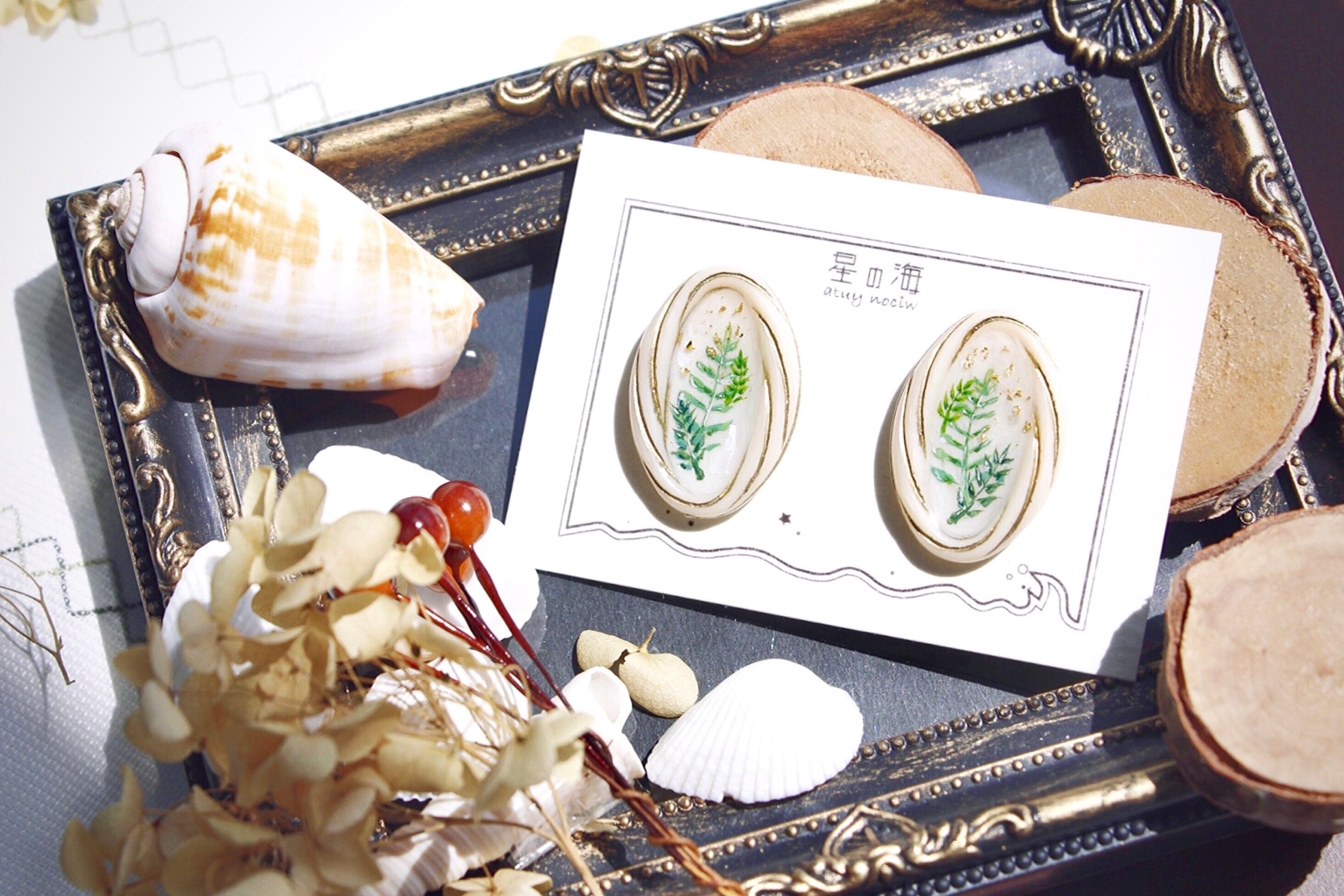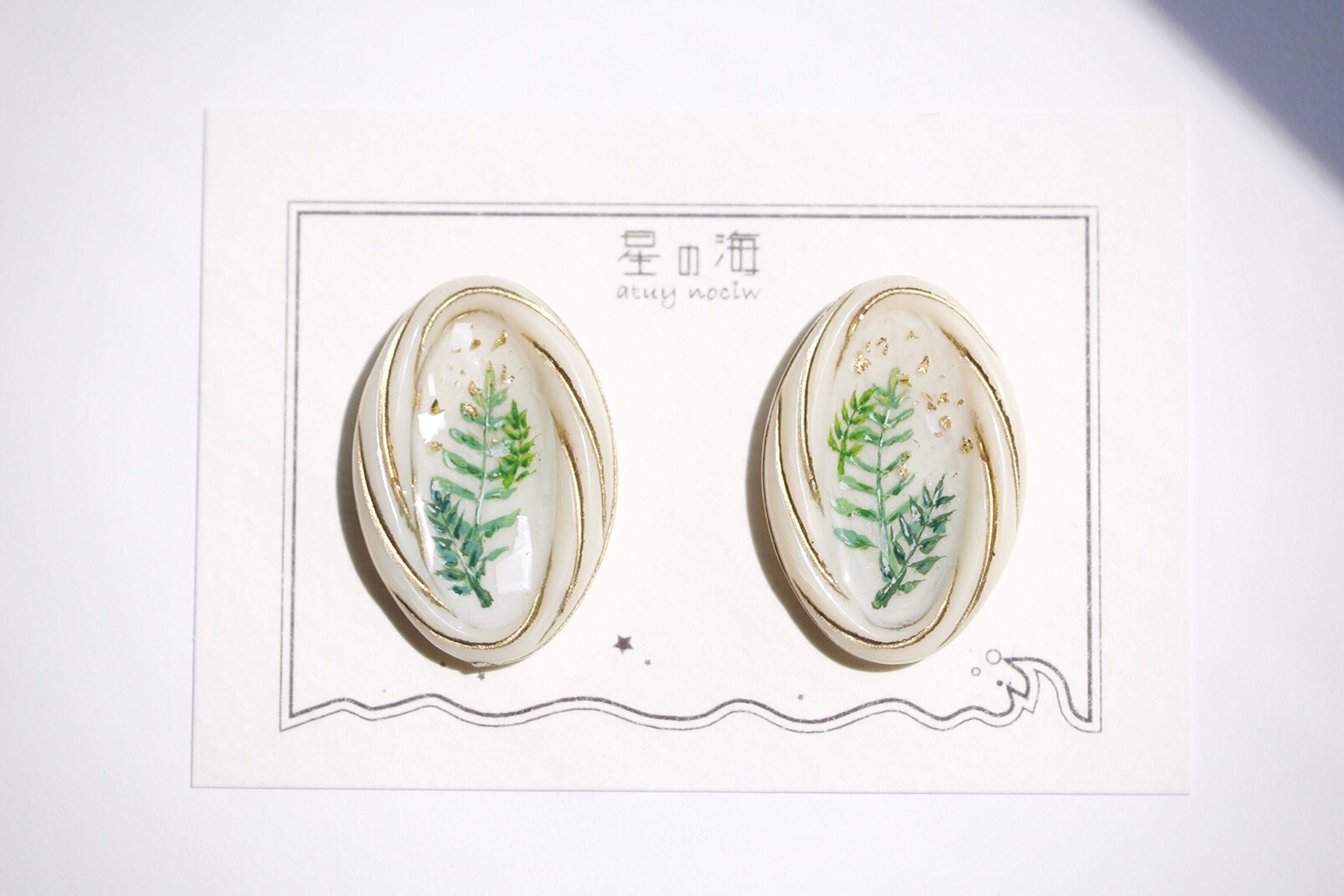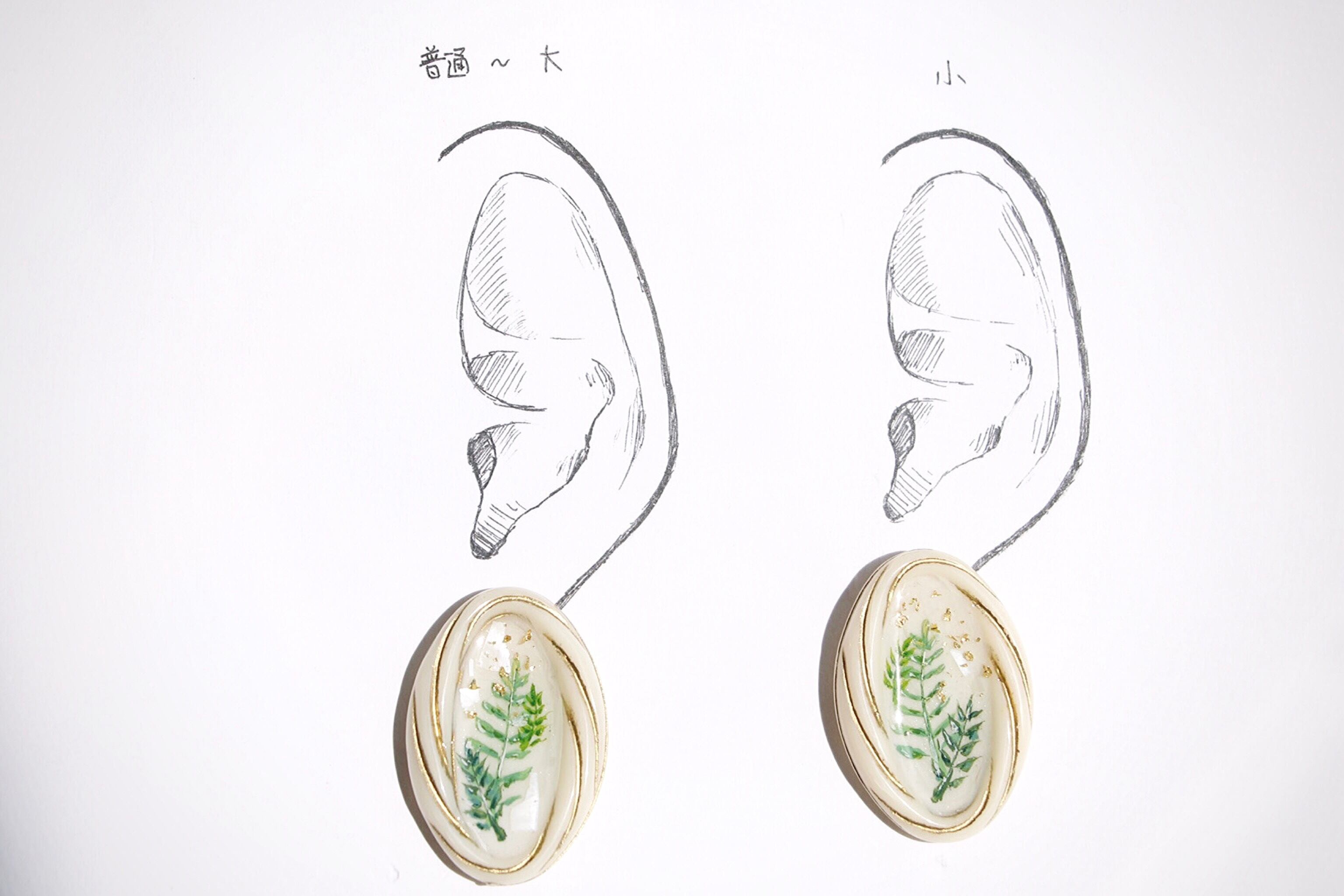 ハンドメイド アクセサリー プレゼント ギフト 彼女 かわいい 綺麗 手作り レジン ファッション コーデ オーバル クリア ピアス イヤリング ノンホールピアス 手描き 大人っぽい 綺麗 キラキラ シンプル 高み見え 植物 雨 クリーム色