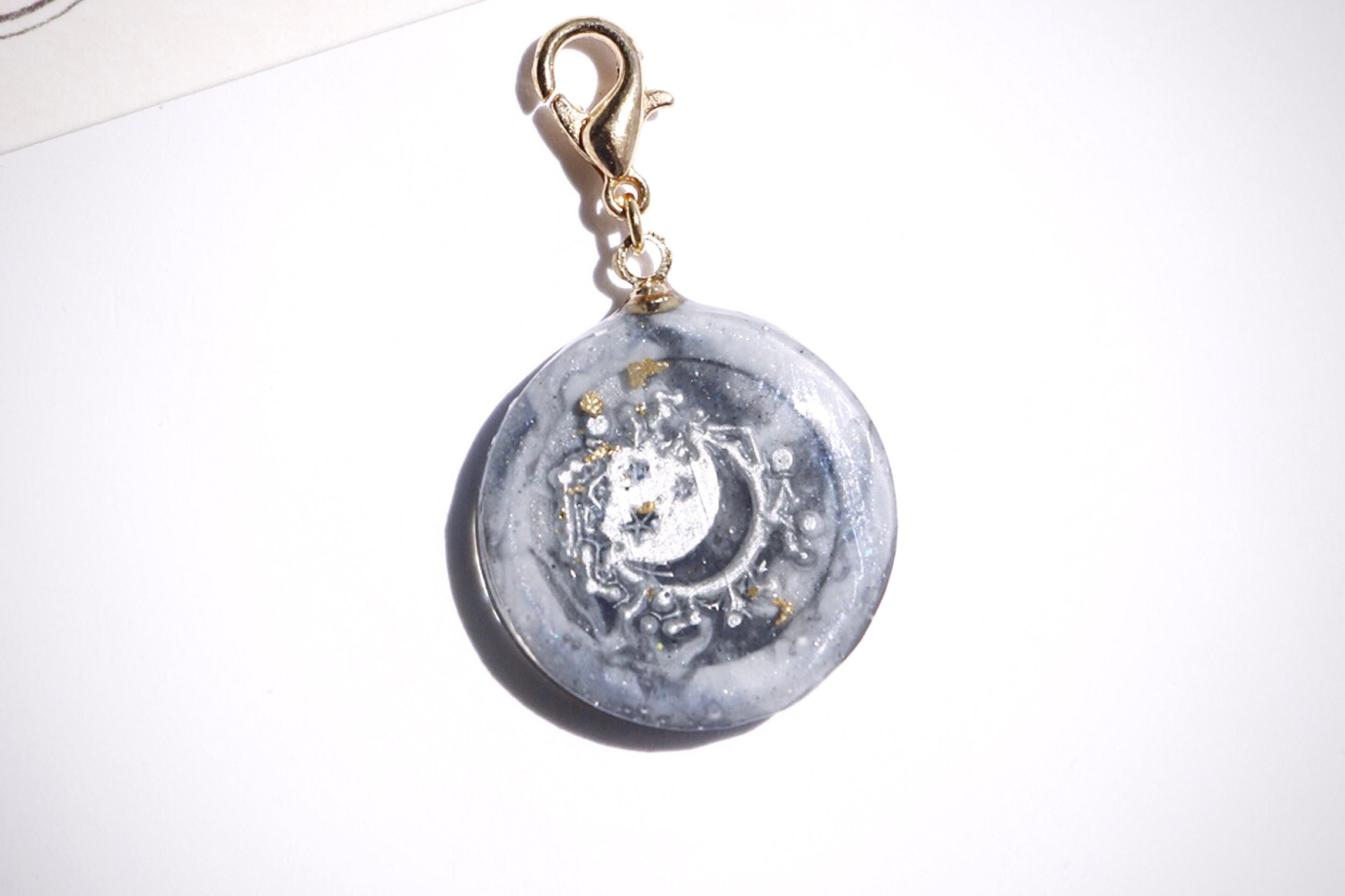 ハンドメイド アクセサリー チャーム シーリングスタンプ 封蝋 閉じ込め ストラップ 大理石柄 かわいい 大人っぽい シルバー マットゴールド ドライフラワー 紫陽花 本物 お子さん用 子供用 月 星座 キーホルダー シンプル