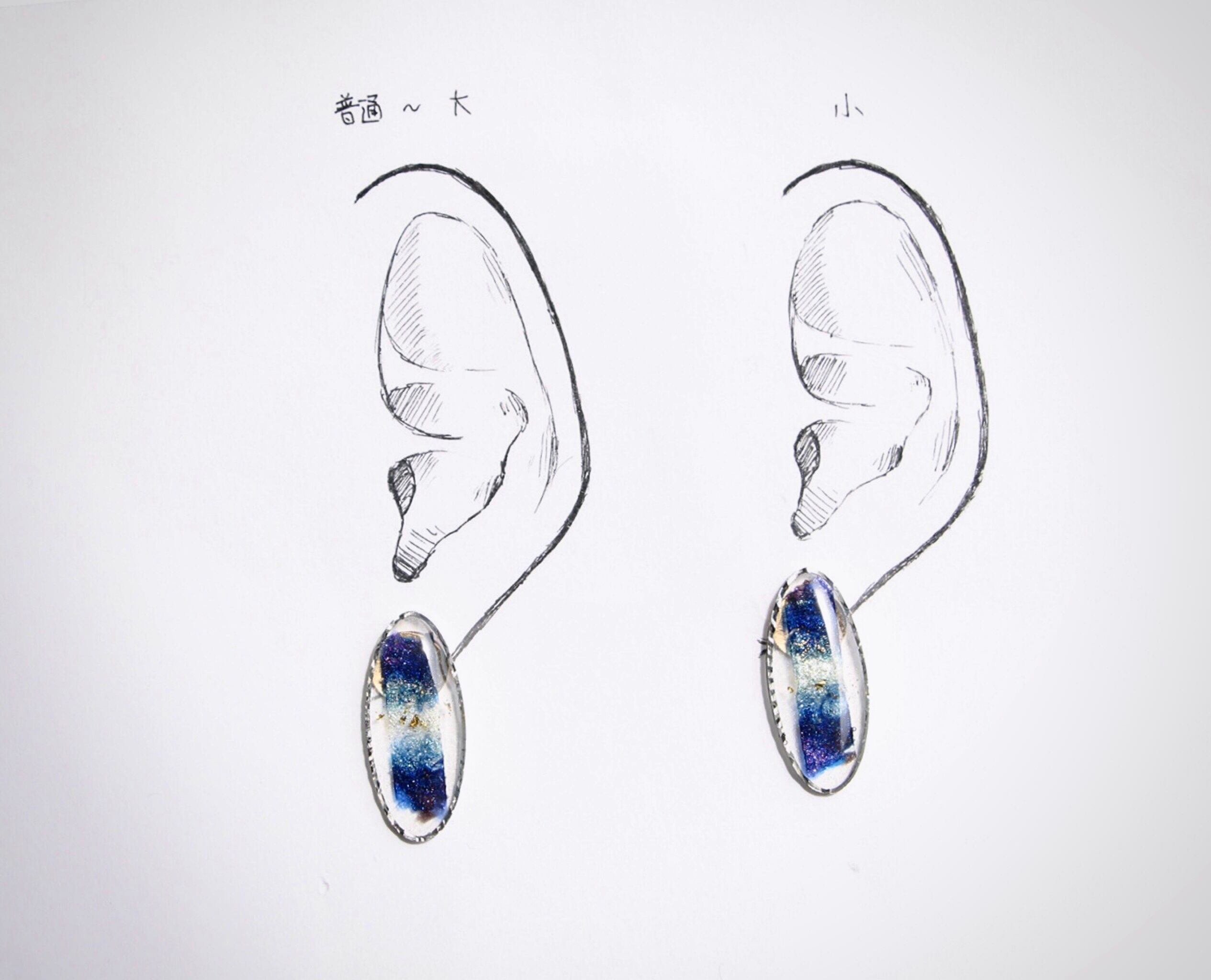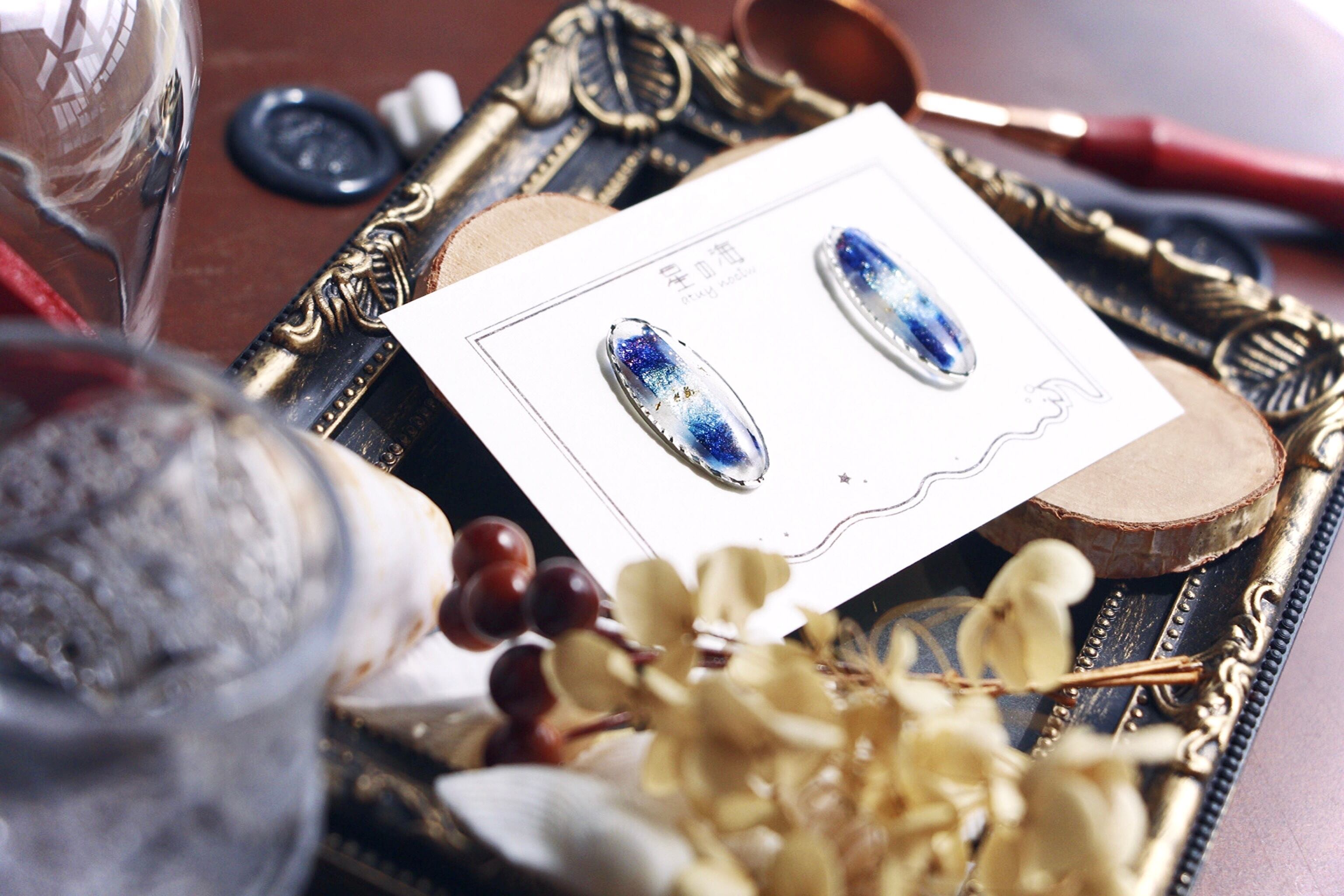 ハンドメイド イヤリング ピアス ノンホールピアス 宇宙柄 クリスタル 氷柱 パワーストーン シルバー 華奢 アクセサリー 韓国風 ファッション コーデ おそろい ニコイチ 宇宙塗り 綺麗 青系 ユニセックス 男女兼用 彼氏 彼女 恋人 友達 プレゼント ギフト