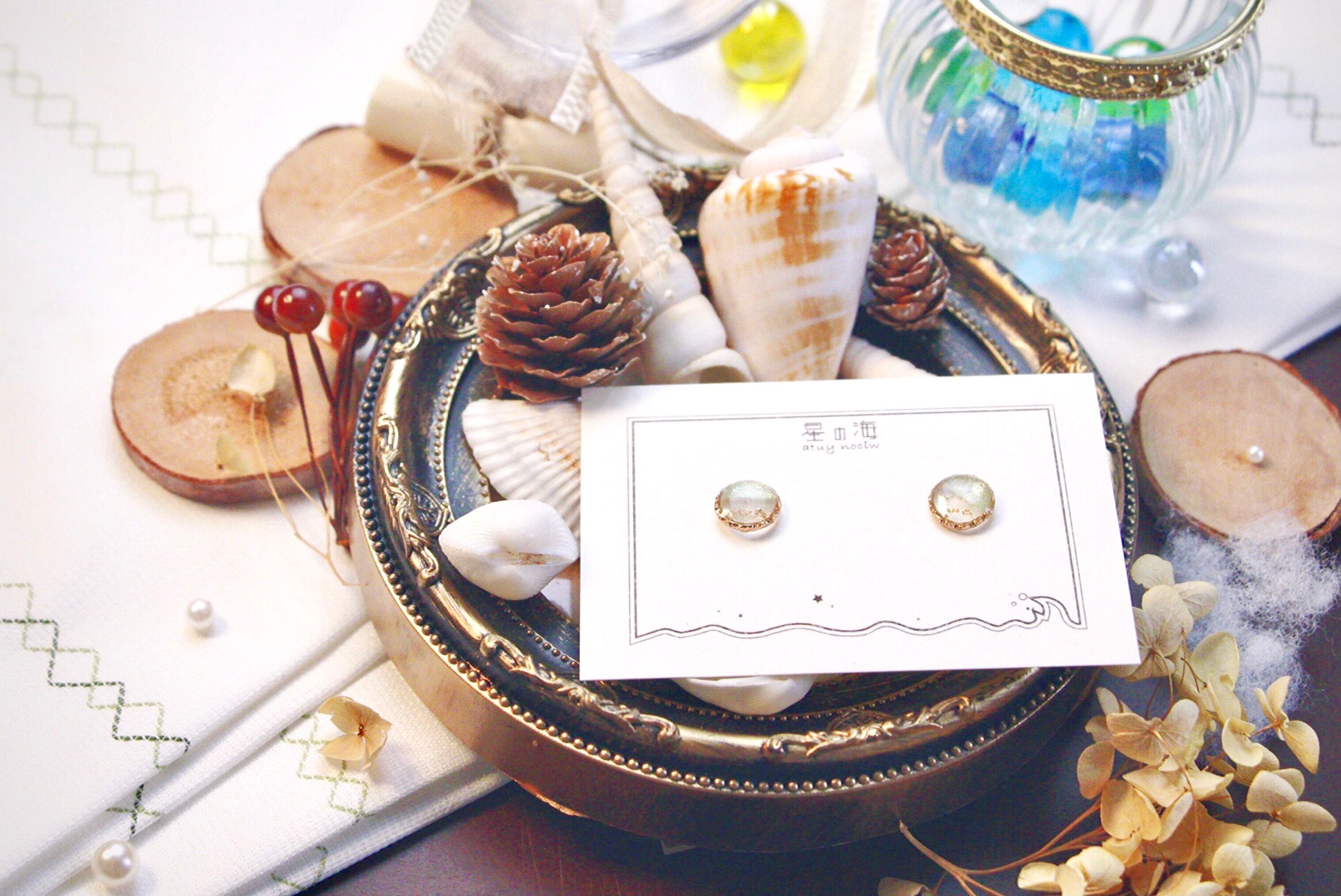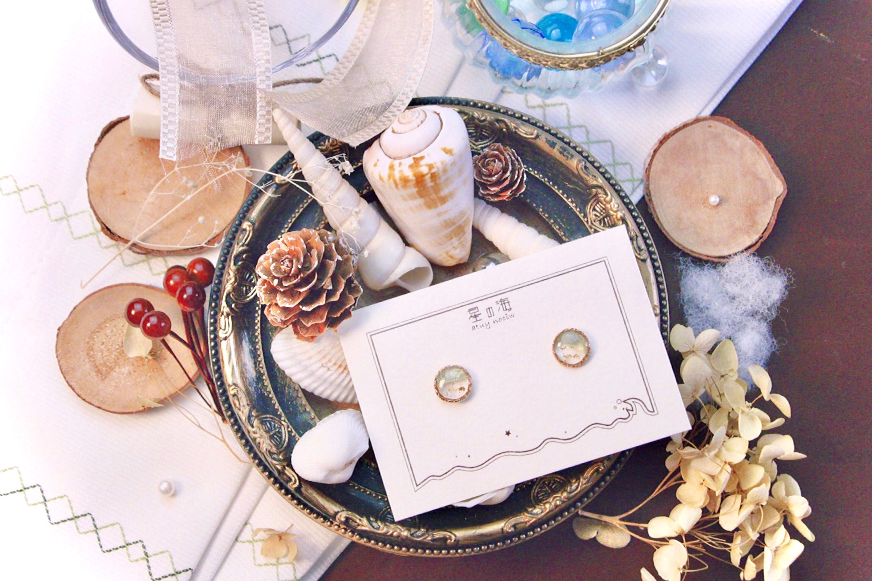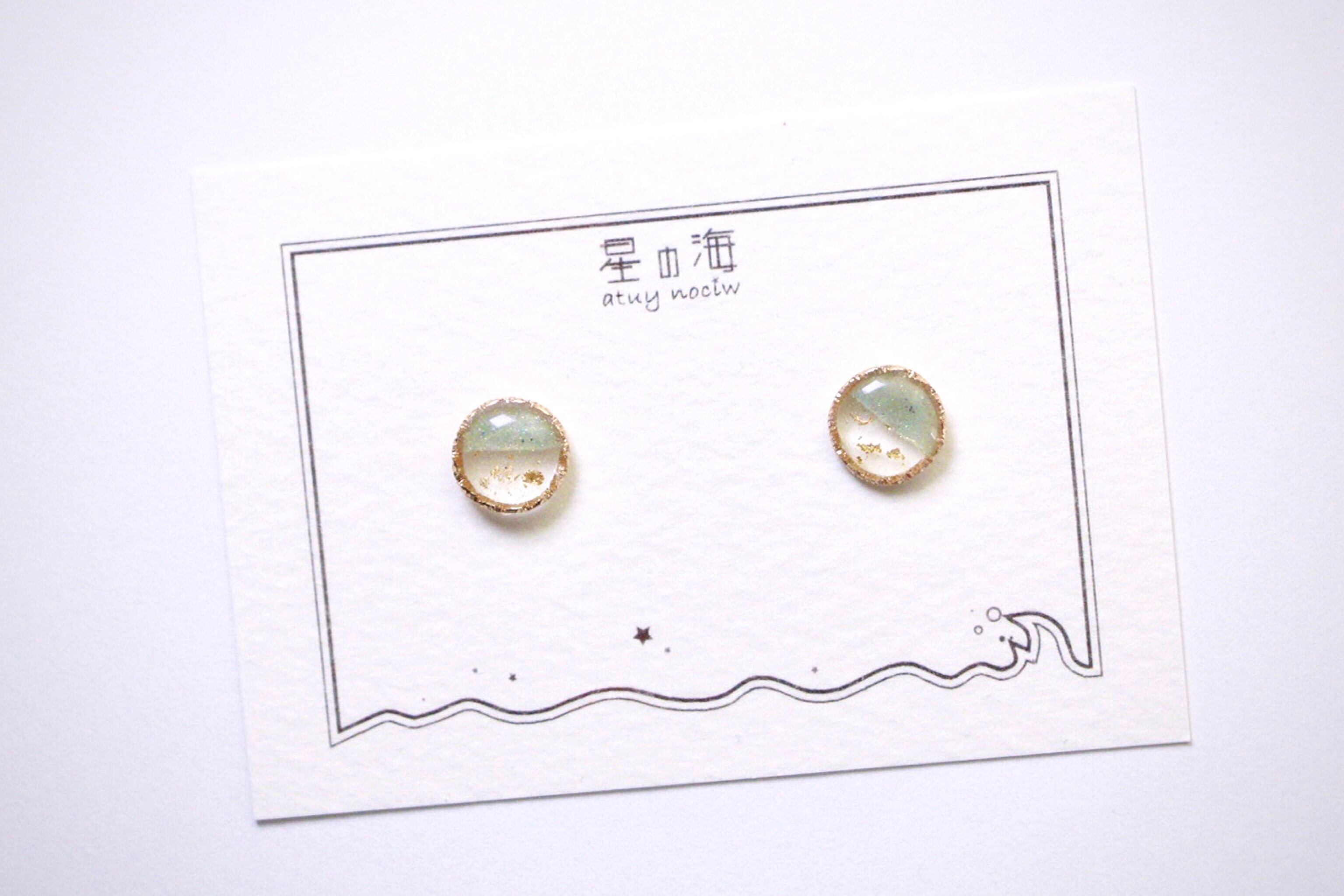 ハンドメイド アクセサリー プレゼント ギフト 彼女 女 かわいい 綺麗 手作り レジン ファッション コーデ 大人っぽい ゴールド シンプル フェミニン おでかけ フォーマル オフィス シャーベットカラー ミントグリーン 水色 パールラメ パール ピンクゴールド シアーシャツ パフスリーブ