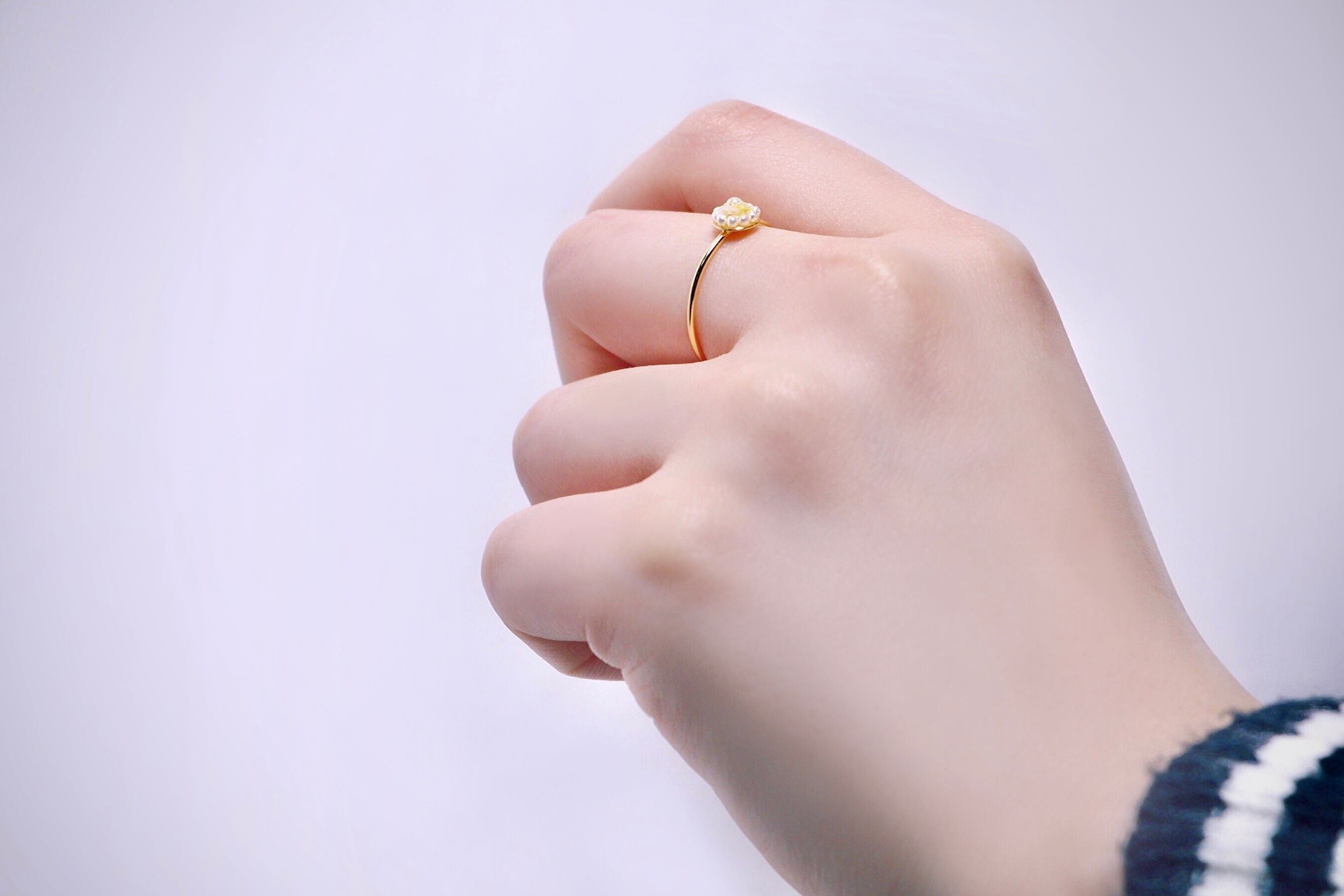全体的に控えめな輝きのため派手すぎず、着画のように一つのみで着けても可愛らしいですが、細めのリングなので重ね付けにもぴったりです♡ちょっぴり手指を華奢に見せてくれたりも?