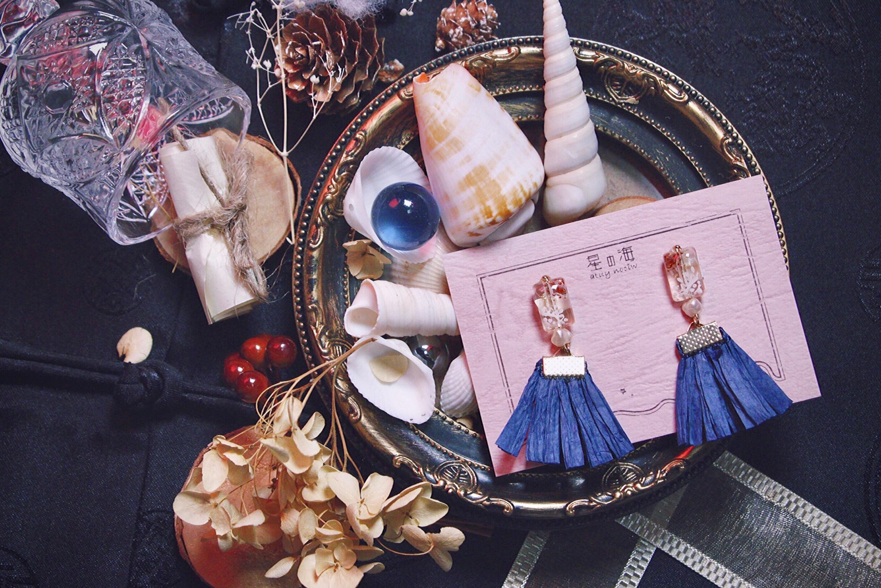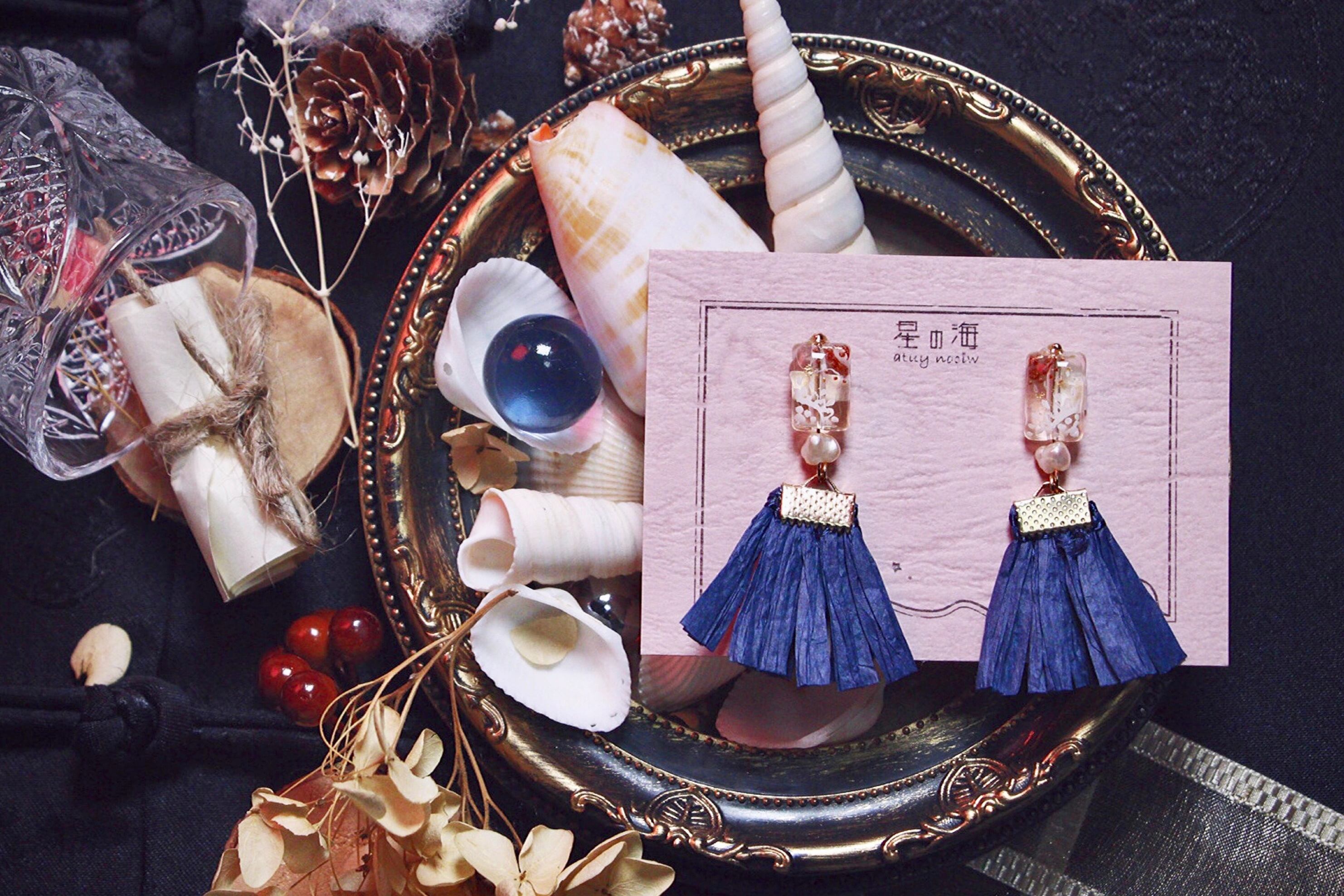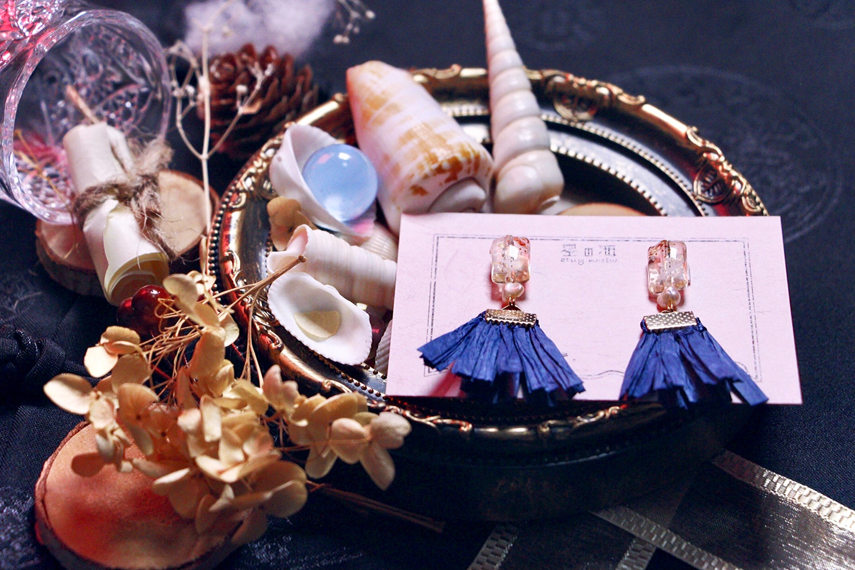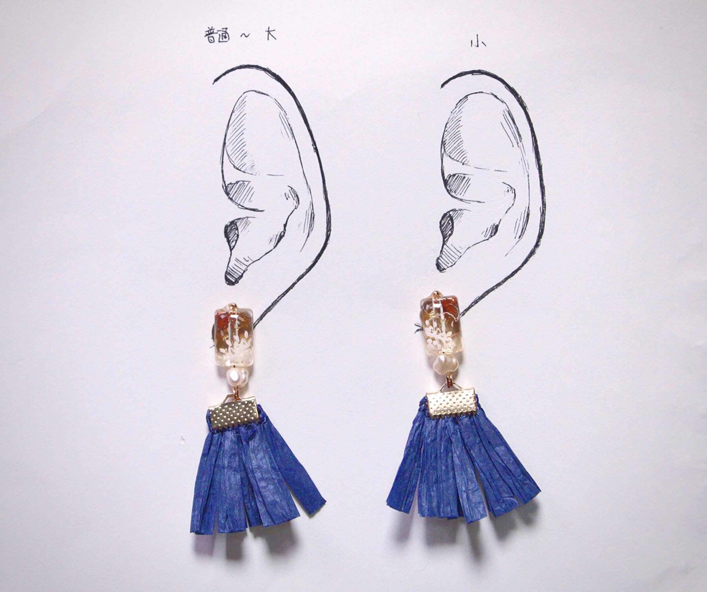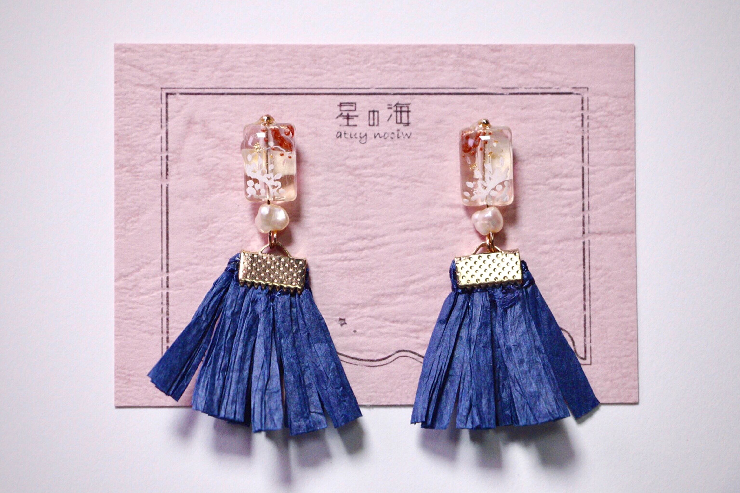 その下には小さな淡水パールと和紙のような質感のタッセルを垂らすことで存在感をプラス♪