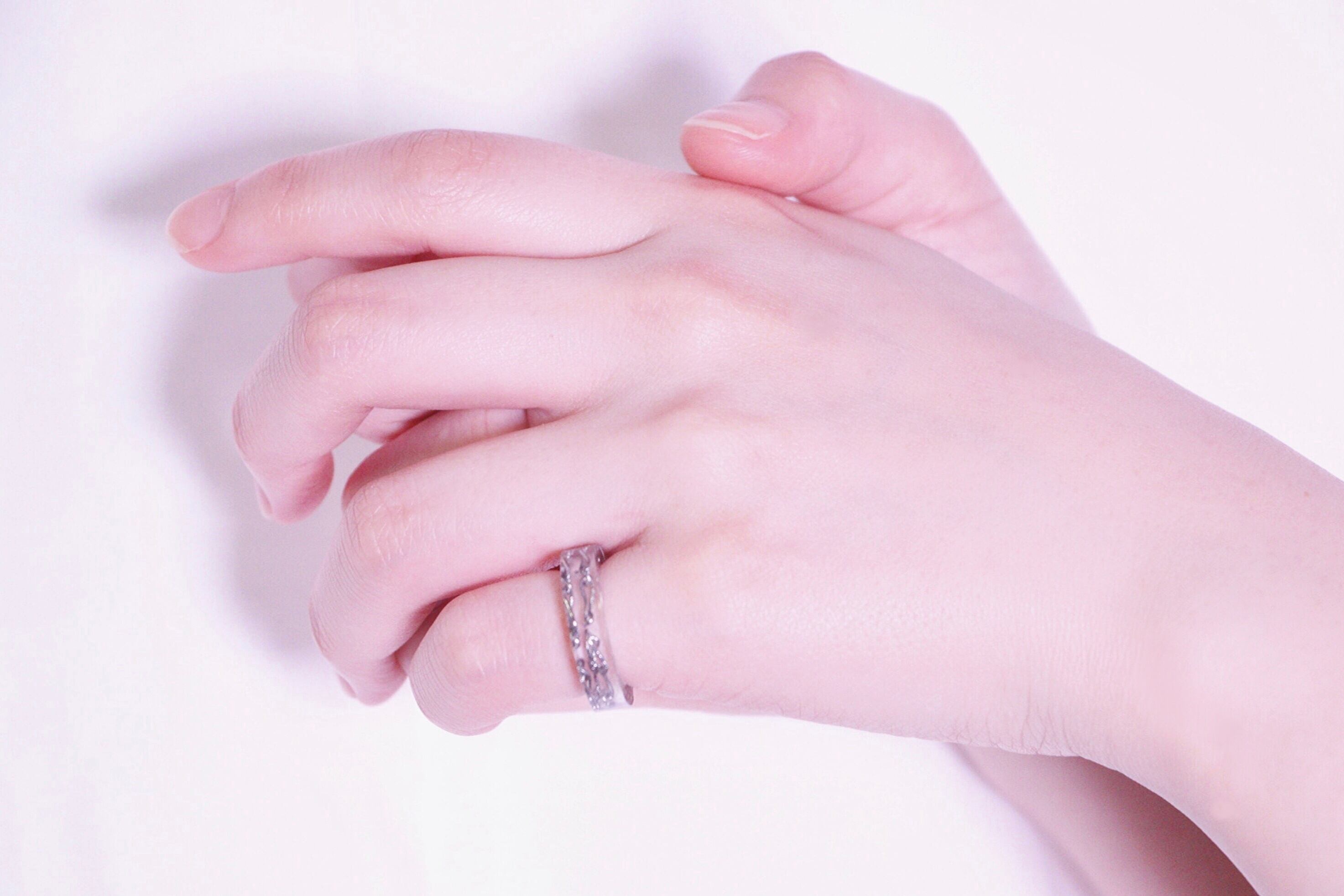 色付きの物やシンプルなリングとの重ね付けもおすすめで、かっこよくも可愛くもできるので、使い方は貴方次第!
