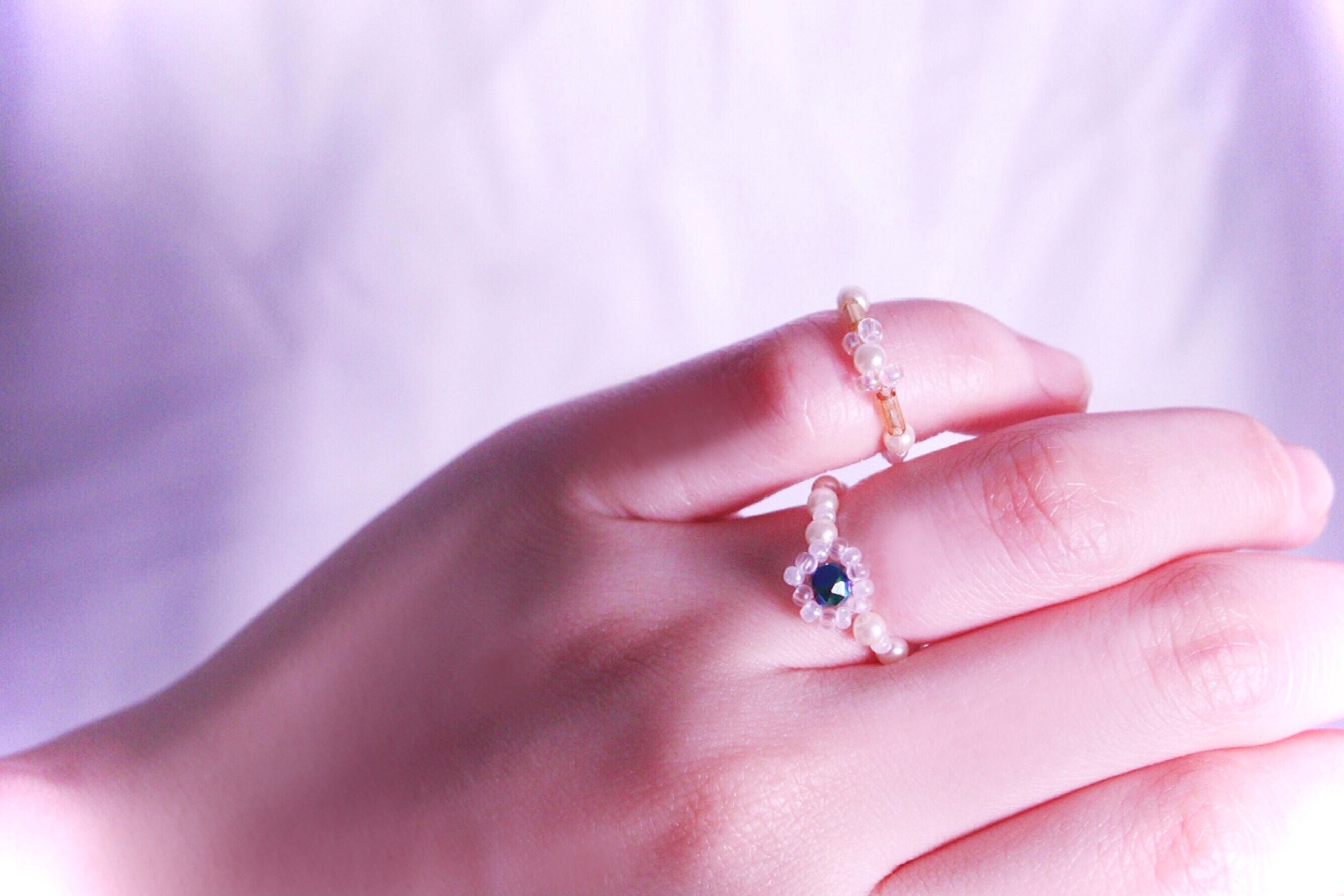 ハンドメイド アクセサリー リング 指輪 ビーズリング フラワーリング ビーズ 大人っぽい お花 韓国風 トレンド アイテム 差し色 ワンポイント ゴールド パール かわいい マット セット プレゼント ギフト レトロ コーデ ファッション ピンキーリング パールリング 青 オーロラ 色が変わる ホワイトコーデ 白 蝶 ちょうちょ バタフライ 偏光 レトロ クリア 女の子らしい